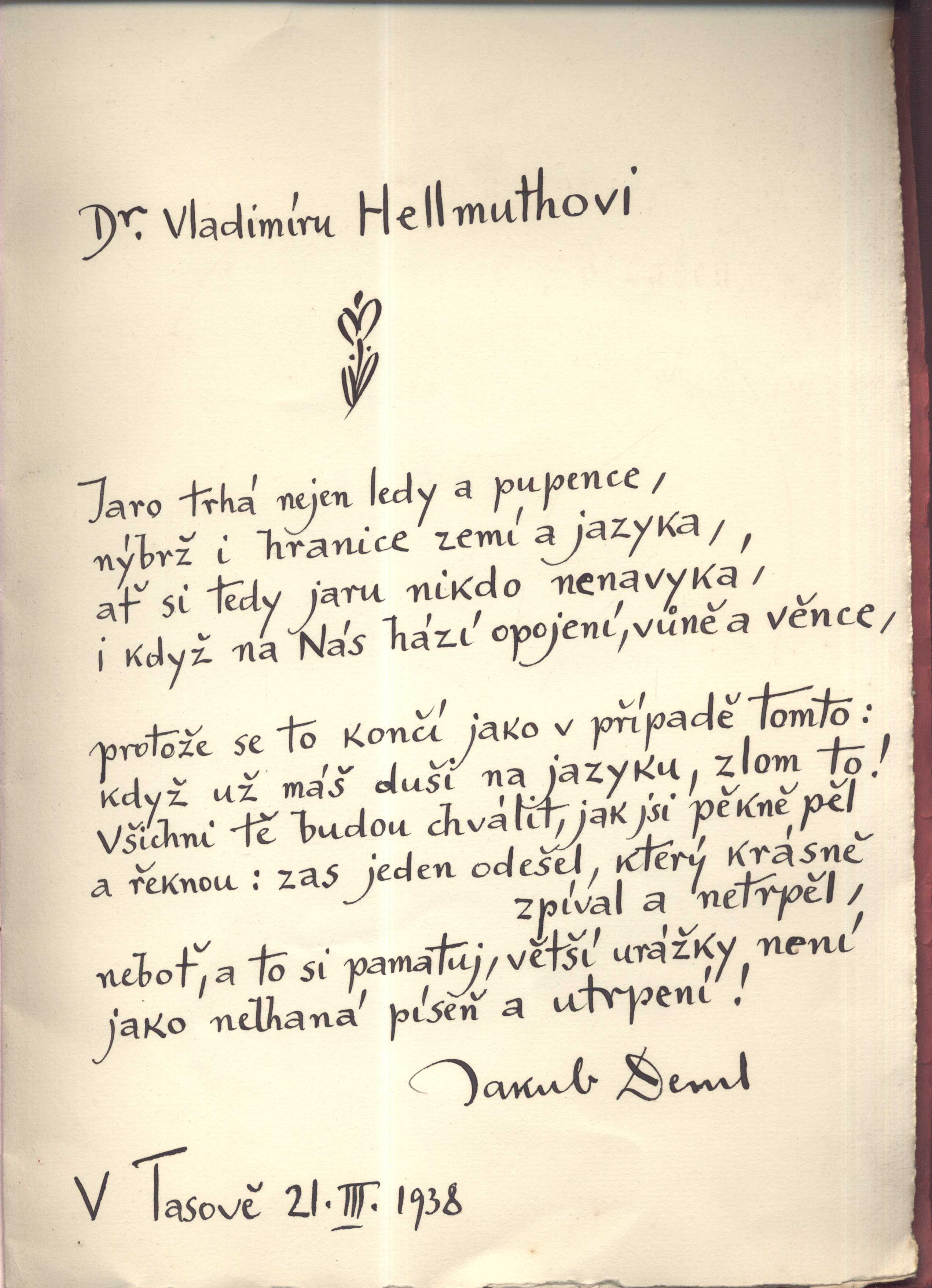 Názvové údaje Chléb v kamení / Josef Berka ; [úprava a obálka F. J. Müllera] Osobní jméno Berka, Josef, 1909-1987 (Autor) Další autoři Müller, František Jan, 1896-1967 (Autor obálky) (Knižní grafik) Korp. Novina (firma) (Tiskař) Nakladatel V Praze : Novina, 1939 Výrobce Novina) Rozsah 47 s. Klíčová slova česká literatura * česká poezie * česká katolická poezie * křesťanská poezie * selský stav * venkov * venkovský život * český venkov * příroda Počet ex. 1, z toho volných 1 Druh dok. monografie Signatura VHB 0259 Názvové údaje Pokorná země / Josef Berka ; [frontispice a obálka - dřevoryty Jos. Hodka] Osobní jméno Berka, Josef, 1909-1987 (Autor) Další autoři Hodek, Josef, 1888-1973 (Autor obálky) (Ilustrátor) Čermák, Otakar, 1876-1939 (Nakladatel, vydavatel) Korp. Knihtiskárna Ot. Čermáka (Tiskař) Nakladatel V Klatovech : Nákladem a tiskem Ot. Čermáka, 1937 Rozsah 40 s. : il. Klíčová slova česká literatura * příroda * česká poezie * křesťanská poezie * venkov * selský stav * venkovský život * česká katolická poezie * český venkov Počet ex. 1, z toho volných 1 Druh dok. monografie Signatura VHB 0258 Názvové údaje Biblické rhapsodie / Vilém Bitnar Osobní jméno Bitnar, Vilém, 1874-1948 (Autor) (Nakladatel, vydavatel) (Dedikátor) Další autoři Karásek ze Lvovic, Jiří, 1871-1951 (Dedikant) Lipanská, Marie (Dárce) Korp. Em. Stivín (tiskárna, nakladatelství) (Tiskař) Nakladatel V Praze : V. Bitnar, 1896 Výrobce (Tiskem Em. Stivína) Rozsah 56 s. Klíčová slova česká literatura * poezie * básně * katolická literatura * katolická poezie * česká katolická poezie * náboženské básně * stol. 19. Počet ex. 2, z toho volných 2 Druh dok. monografie Signatura C12c 1773, KaG LIX B2 62 Názvové údaje Snář a planetář : básně / Klement Bochořák ; [se sedmi původními litografiemi, v obálce a v grafické úpravě Eduarda Miléna] Osobní jméno Bochořák, Klement, 1910-1981 (Autor) Další autoři Milén, Eduard, 1891-1976 (Ilustrátor) (Knižní grafik) (Autor obálky) Grimm, Antonín, 1902-1981 (Dřívější majitel) (Dárce) Korp. Družstvo Moravského kola spisovatelů (nakladatelství) (Nakladatel, vydavatel) Akciová moravská knihtiskárna (Brno) (Tiskař) Nakladatel V Brně : Družstvo Moravského kola spisovatelů, 1944 Výrobce (Akciová moravská knihtiskárna) Rozsah 119 s. : il. Klíčová slova česká poezie * lyrické básně * stol. 20., léta 40. * česká katolická poezie * katolická poezie * katolická literatura Počet ex. 2, z toho volných 2 Druh dok. monografie Signatura C12c 1899, KaG LXI 73 Názvové údaje Žluč a víno / Klement Bochořák Osobní jméno Bochořák, Klement, 1910-1981 (Autor) Další autoři Melantrich (nakladatelství : 1910-1950) (Tiskař) (Nakladatel, vydavatel) Nakladatel Praha : Melantrich, 1938 Rozsah 49 s. ; 21 cm Klíčová slova česká literatura * poezie * katolická literatura * katolická poezie * česká katolická poezie * křesťanská poezie * křesťanská literatura * básně Počet ex. 2, z toho volných 2 Druh dok. monografie Signatura C12b 14959, VHB 0282 Názvové údaje Slaviček rájský / Jan Josef Božan ; K vyd. připr. Jan Malura a Pavel Kosek ; Přepis notací Michael Pospíšil ; Obálka David Mikeš Osobní jméno Božan, Jan Josef, 1644-1716 (Autor) Další autoři Malura, Jan, 1971- (Editor) Kosek, Pavel, 1972- (Editor) Malura, Jan, 1971- (Autor úvodu atd.) Pospíšil, Michael, 1962- (Autor úvodu atd.) Mikeš, David (Grafický technik) Nakladatel Ostrava : Ústav pro regionální studia Ostravské univerzity, 1999 Rozsah 445 s. : fot. + příl Klíčová slova barokní kancionál * duchovní písně * církevní písně * česká katolická poezie * stol. 18. Počet ex. 1, z toho volných 1 Druh dok. monografie Signatura C12b 3541 Názvové údaje Co Bůh? Člověk? / Bedřich Bridel ; [do tisku připravil Josef Vašica ; podle osnovy Antonína Lískovce] Osobní jméno Bridel, Bedřich, 1619-1680 (Autor) Další autoři Vašica, Josef, 1884-1968 (Editor) (Dedikátor) Braunerová, Zdenka, 1858-1934 (Dedikant) (Dřívější majitel) Durych, Bohuslav, 1896-1969 Holan, Vladimír, 1905-1980 (Dedikant) Lískovec, Antonín, 1894-1949 (Typograf) Korp. Lidové závody tiskařské a nakladatelské (Olomouc) (Tiskař) Nakladatel Přerov : B. Durych, 1934 Výrobce Lidové závody tiskařské a nakladatelské) Rozsah 64 s. ; 17 cm Klíčová slova česká literatura * barokní literatura * česká barokní literatura * barokní poezie * česká poezie * česká katolická poezie * náboženská literatura * náboženská lyrika Počet ex. 2, z toho volných 2 Druh dok. monografie Signatura Holan 2161, VHB 0195 Názvové údaje Rozjímání o nebi v noci na jitřní Božího narození / Bedřich Bridel ; [vybral a do tisku připravil Josef Vašica ; v úpravě Břetislava Štorma, jenž také nakreslil podobu P. Bedřicha Bridela] Osobní jméno Bridel, Bedřich, 1619-1680 (Autor) Další autoři Vašica, Josef, 1884-1968 (Editor) (Dedikátor) Štorm, Břetislav, 1907-1960 (Grafický technik) (Ilustrátor) Babler, Otto František, 1901-1984 (Nakladatel, vydavatel) Holan, Vladimír, 1905-1980 (Dedikant) Korp. Lidové závody tiskařské a nakladatelské (Olomouc) (Tiskař) Nakladatel V Olomouci : [O. F. Babler], 1931 Výrobce (Lidové závody tiskařské a nakladatelské) Rozsah 49 s. : il. ; 18 cm Klíčová slova česká literatura * česká poezie * česká katolická poezie * baroko * barokní lyrika * barokní literatura * barokní poezie Počet ex. 3, z toho volných 3 Druh dok. monografie Signatura Holan 2160, KaG XV C2 53, VMartínek 1336 Názvové údaje Ballade vom Tode eines unbekannten Soldaten / Jakub Deml ; [Zeichnungen von Jan Konůpek] Osobní jméno Deml, Jakub, 1878-1961 (Autor) (Dedikátor) Další autoři Konůpek, Jan, 1883-1950 (Ilustrátor) Junová, Marie Rosa, 1917-2001 (Nakladat
