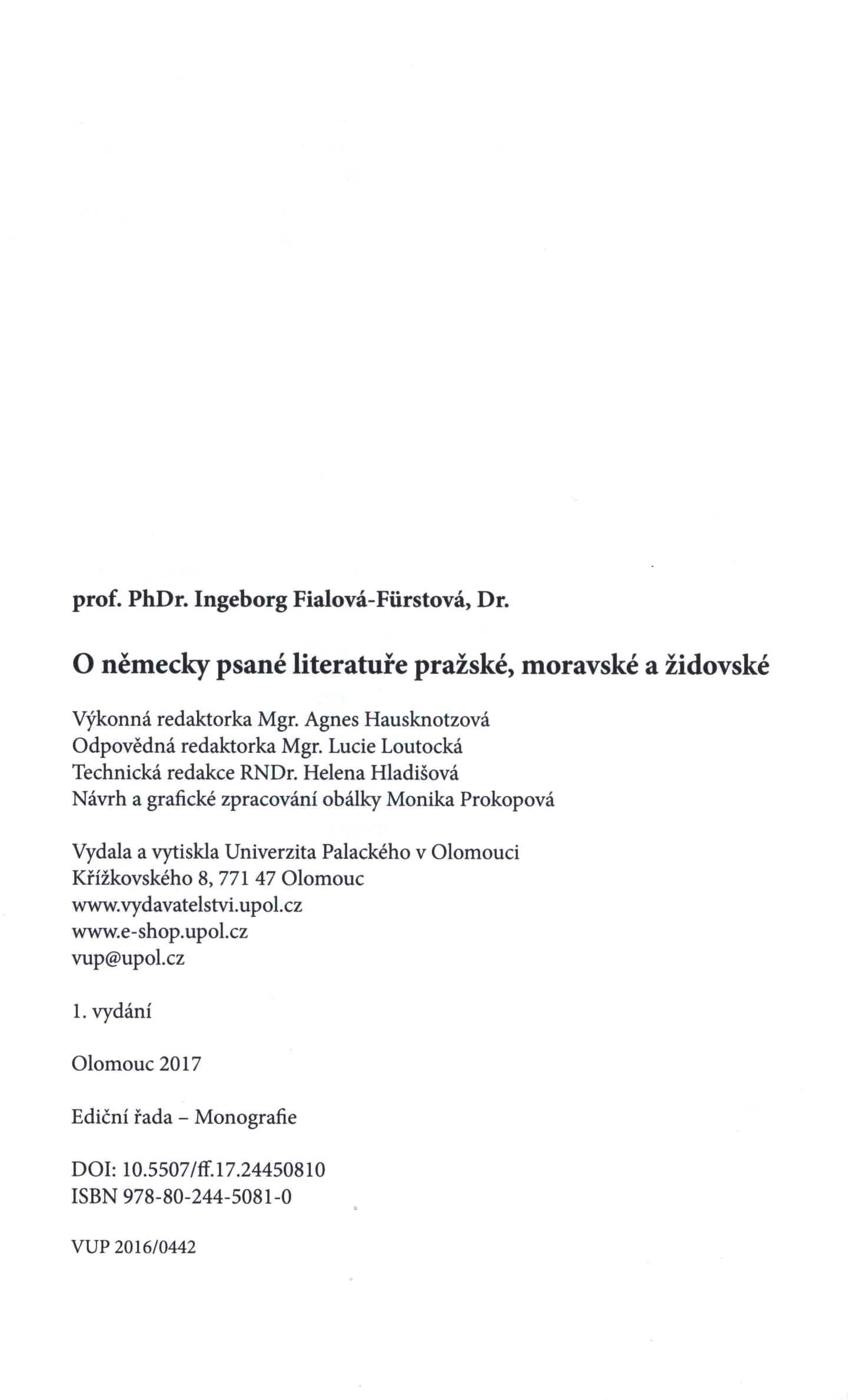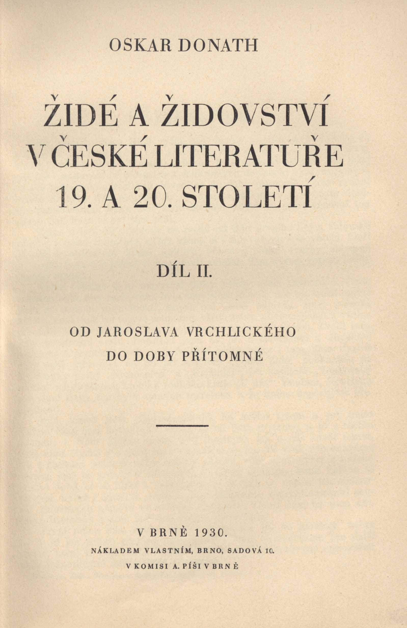 Názvové údaje Das Schass meines Grossvaters / S. J. Agnon ; [übersetzt von E. M.] Osobní jméno Agnon, Shmuel Yosef, 1888-1970 (Autor) Další autoři Soncino-Gesellschaft der Freunde des jüdischen Buches E. V. (Berlin (Německo)) (Nakladatel, vydavatel) Nakladatel [Berlin] : Soncino-Gesellschaft der Freunde des jüdischen Buches e. V., 1925 Rozsah [32] s. ; 15 x 11 cm Klíčová slova židovská literatura * židovská tematika * stol. 20., léta 20. * r. 1925 * židovské písemnictví * židovství * hebrejská literatura * próza * bibliofilský tisk * bibliofilská vydání * bibliofilie Počet ex. 1, z toho volných 1 Druh dok. monografie Signatura KaG III E 151 Názvové údaje Und das Krumme wird gerade : Geschichte eines Menschen mit Namen Menascheh Chajim [...] / das hat versaßt und hat es aufgeschrieben S. J. Agnon ; [aus dem Hebräischen von Max Strauß ; Druckleitung, Einbandzeichnung: E. R. Weiß] Osobní jméno Agnon, Shmuel Yosef, 1888-1970 (Autor) Další autoři Strauß, Max (Překladatel) Weiss, E. R. (Knižní grafik) (Výtvarník vazby) Korp. Jüdischer Verlag (Berlin, Německo) (Nakladatel, vydavatel) Spamerschen Buchdruckerei (tiskárna) (Tiskař) Nakladatel Berlin : Jüdischer Verlag, 1920 Výrobce Druck der Spamerschen Buchdruckerei) Rozsah 168 s. ; 12,5 x 18 cm ; 8° Klíčová slova próza * židovské písemnictví * židovství * židovská literatura * stol. 20., léta 20. * hebrejská literatura * židovská tematika * Židé * r. 1920 Počet ex. 1, z toho volných 1 Druh dok. monografie Signatura KaG XXII C2 37 Názvové údaje Domov a bezdomoví i jiné zprávy / Milan Balabán ; [k vydání připravil, ediční poznámku a medailon autora napsal Radim Kopáč ; obálku a grafickou úpravu navrhl Petr Krejzek, ReDesign] Osobní jméno Balabán, Milan, 1929-2019 (Autor) Další autoři Kopáč, Radim, 1976- (Editor) (Autor komentáře textu) Krejzek, Petr, 1965- (Knižní grafik) (Autor obálky) Nakladatel Praha : Pulchra, 2009 Rozsah 86 s. Klíčová slova česká literatura * eseje * židovství * Starý zákon Počet ex. 1, z toho volných 1 Druh dok. monografie Signatura C12b 11827 Názvové údaje Palestina od pravěku ke křesťanství. II, Kult a náboženství / Miloš Bič Osobní jméno Bič, Miloš, 1910-2004 (Autor) Nakladatel Praha : Husova československá evangelická fakulta bohoslovecká, 1949 : Výrobce tiskařské a nakladatelské podniky "Cíl" Rozsah 395 stran : černobílé ilustrace ; 21,5 cm Klíčová slova Palestina * pravěk * starověk * židovství * dějiny Židů * náboženství * Starý zákon * výklad biblických dějin Počet ex. 1, z toho volných 1 Druh dok. monografie Signatura K K VI 40 Názvové údaje Der heilige Weg : ein Wort an die Juden und an die Völker / Martin Buber Osobní jméno Buber, Martin, 1878-1965 (Autor) Další autoři Brandstetter, Oscar, činný 1880-1939 (Tiskař) Korp. Literarische Anstalt Rütten & Loening (Frankfurt nad Mohanem) (Nakladatel, vydavatel) Nakladatel Frankfurt a/M : Literarische Anstalt Rütten & Loening, 1919 Výrobce Oscar Brandstetter) Rozsah 90, [10] s. ; 19,5 x 12,5 cm ; 8° Klíčová slova německá literatura * židovská literatura * chasidismus * Židé * židovská kultura * židovská tradice * židovské tradice * židovství * stol. 20., léta 10. * r. 1919 Počet ex. 1, z toho volných 1 Druh dok. monografie Signatura KaG I D2 65 Názvové údaje Židé a židovství v české literatuře 19. a 20. století. 1, od K. H. Máchy do Jar. Vrchlického / napsal Oskar Donath Osobní jméno Donath, Oskar, 1882-1940 (Autor) (Nakladatel, vydavatel) Nakladatel Brno : Donath vl. n, 1923 Rozsah 162 s. Klíčová slova česká literatura * židovští spisovatelé * židovské náboženství * Bible * judaismus * židovství * stol. 19.-20. Počet ex. 4, z toho volných 4 Druh dok. monografie Signatura M 65 f 9/1, P 12 b 37, L 25 b 34, M 59 b 76 Názvové údaje Židé a židovství v české literatuře 19. a 20. století. Díl II., Od Jaroslava Vrchlického do doby přítomné / Oskar Donath Osobní jméno Donath, Oskar, 1882-1940 (Autor) (Nakladatel, vydavatel) Další autoři Polygrafia (nakladatelství a tiskárna, Brno) (Tiskař) Nakladatel V Brně : O. Donath, 1930 Výrobce (Polygrafia) Rozsah 282 s. ; 8° Klíčová slova česká literatura * židovští spisovatelé * židovské náboženství * Bible * judaismus * židovství * stol. 19.-20. Počet ex. 2, z toho volných 2 Druh dok. monografie Signatura M 65 f 9/2, VMartínek 1498/1
