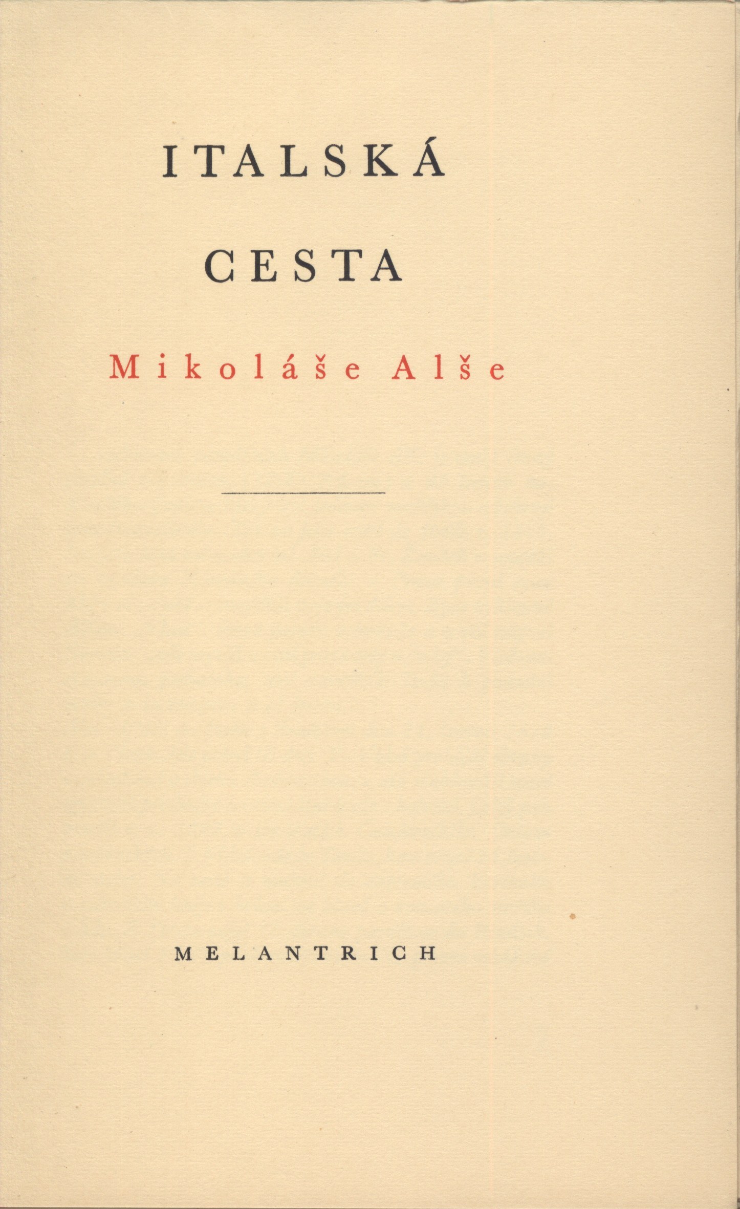 Názvové údaje Čechy a Italie v století XIV. : historické rozhledy / sepsal Karel Adámek Osobní jméno Adámek, Karel, 1840-1918 (Autor) Další autoři Grégr, Eduard, 1827-1907 (Tiskař) Korp. Matice lidu. Spolek pro vydávání laciných knih českých (Praha) (Nakladatel, vydavatel) Nakladatel V Praze : Nákladem Spolku pro vydávání laciných knih českých, 1875 Výrobce Edvard Grégr Rozsah 163 stran Klíčová slova česká literatura * naučná literatura * dějiny * dějiny Evropy * Itálie * Česko * stol. 14. * studie Počet ex. 1, z toho volných 1 Druh dok. monografie Signatura L XXI c 108 Názvové údaje Čtrnáctý věk : z dějin kulturních stykův Čech a Italie / píše Karel Adámek Osobní jméno Adámek, Karel, 1840-1918 (Autor) Další autoři Matice lidu. Spolek pro vydávání laciných knih českých (Praha) (Nakladatel, vydavatel) Dr. Ed. Grégr a syn (nakladatelství, tiskárna) (Tiskař) Nakladatel V Praze : Nákladem spolku pro vydávání laciných knih českých, 1878 Výrobce Tiskem dra. Ed. Grégra Rozsah 159 stran Klíčová slova kulturní dějiny * Česko * Itálie * kulturní vztahy * stol. 14. * studie Počet ex. 4, z toho volných 4 Druh dok. monografie Signatura P 81 H 67, M 10d 3, M 122f 15, M 200b 22 Názvové údaje Třídní boje v západní Evropě : Francie, Itálie, Velká Británie, Německá spolková republika / D. Albers, Goldschmidt, Oehlke ; z německého originálu Klassenkämpfe in Westeuropa přeložil Oldřich Matúšek a Jiří Loser Osobní jméno Albers, Detlev, 1943-2008 (Autor) Další autoři Goldschmidt, Werner, 1940- (Autor) Oehlke, Paul, (Autor) 1943- Matúšek, Oldřich, 1931- (Překladatel) Loser, Jiří (Překladatel) Korp. Nakladatelství Svoboda (Nakladatel, vydavatel) Rudé právo (tiskárna, Praha) (Tiskař) Nakladatel Praha : Svoboda, 1974 Výrobce Rudé právo Rozsah 517 stran Klíčová slova západní Evropa * Francie * Itálie * Velká Británie * Německá spolková republika * politická situace * dělníci * třídní boj Počet ex. 1, z toho volných 1 Druh dok. monografie Signatura M 91 g 25 Názvové údaje O malbě, O soše / Léon Battista Alberti ; z italštiny přeložil, poznámkami objasnil, studii o L.B. Abertim napsal, náčrty kreslil a obrázky sestavil F. Topinka ; v obálce R. Beneše Osobní jméno Alberti, Leon Battista, 1404-1472 (Autor) Další autoři Topinka, F. (Překladatel) (Autor úvodu atd.) (Autor komentáře textu) (Ilustrátor) Beneš, R. (Autor obálky) Korp. Vladimír Žikeš (nakladatelství a knihkupectví) (Nakladatel, vydavatel) Grafický závod J. Čížek (Pardubice) (Tiskař) Nakladatel V Praze : Nakladatelství Vladimíra Žikeše, 1947 Výrobce V Pardubicích : Grafický závod J. Čížek Rozsah 220 stran, 4 nečíslované listy obrazových příloh : ilustrace ; 16 cm Osobní hesla Alberti, Leon Battista, 1404-1472 - italský teoretik umění, estetik, architekt, spisovatel Klíčová slova italská literatura * překlady * studie * umění * malířství * sochařství * techniky * Alberti L. B. * Itálie * stol. 15. Počet ex. 2, z toho volných 2 Druh dok. monografie Signatura MUK 2078, JVladislav 741 Názvové údaje Italská cesta Mikoláše Alše : dva dopisy a jedenáct kreseb ze zápisníku M. Alše / předmluvu napsal Emanuel Svoboda Osobní jméno Aleš, Mikoláš, 1852-1913 (Autor) (Ilustrátor) Další autoři Svoboda, Emanuel, 1883-1967 (Autor úvodu atd.) Korp. Melantrich (nakladatelství) (Nakladatel, vydavatel) Nakladatel Praha : Melantrich, 1940 Rozsah 16 stran, 12 nečíslovaných stran obrazových příloh : ilustrace ; 21 cm Osobní hesla Aleš, Mikoláš, 1852-1913 - malíř, kreslíř a ilustrátor Geografické heslo Itálie - umělecký námět Klíčová slova čeští malíři * stol. 19.-20. * Itálie * pobyt * kresby * umělecké náměty * korespondence * stol. 19. * obrazové publikace Počet ex. 9, z toho volných 9 Druh dok. monografie Signatura Hora I 1022, P 48 c 59, Z A 3 e 26, P 131 c 43, Z A 5 a 105, Václavek 120, Sáňka 1229, Knytl 1780, P 138 c 43 Názvové údaje Italská cesta Mikoláše Alše : [dva dopisy a jedenáct kreseb ze zápisníku Mikoláše Alše / předmluvu napsal Emanuel Svoboda ; v úpravě Frant. Muziky] Osobní jméno Aleš, Mikoláš, 1852-1913 (Autor) (Ilustrátor) Další autoři Svoboda, Emanuel, 1883-1967 (Autor úvodu atd.) Muzika, František, 1900-1974 (Knižní grafik) Korp. Melantrich (nakladatelství) (Nakladatel, vydavatel) (Tiskař) Nakladatel Praha : Melantrich, [1940?] Rozsah 16 s., [12] s. obr. příl. : il., faksim. ; 21 cm Osobní hesla Aleš, Mikoláš, 1852-1913 - malíř, kreslíř a ilustrátor Klíčová slova česká literatura * novoroční tisk * r. 1940 * Itálie * dopisy * italské umění * cestování * kresby * faksimile * Aleš M. Počet ex. 4, z toho volných 4 Druh dok. monografie Signatura AVrbova 045, C12b 13166, Topič 0048, VHB 0231 Názvové údaje Alfabeto in sogno : dal carme figurato alla poesia concreta / a cura si Claudio Parmiggiani Záhlaví-akce Alfabeto in sogno dal carme figurato alla poesia conreta (2002 : Reggio Emilia) Další autoři Parmiggiani, Claudio, 1943- (Sestavovatel, kompilátor) Nakladatel Milano : Mazzotat, 2002 Rozsah 465 s. : il., faksim. Klíčová slova italští básníci * poezie * básníci * Itálie * antická poezie * vývoj poezie * moderní poezie * experimentální poezie * výstava * literární výstava * San Domenico (Itálie) * r. 2002 * italská poezie Počet ex. 1, z toho volných 1 Druh dok. monografie Signatura C12c 1520 Názvové údaje La Grèce, Rome et Dante / par J.-J. Ampère Osobní jméno Ampère, Jean-Jacques, 1800-1864 (Autor) Další autoři Braunerová, Zdenka, 1858-1934 (Autor podpisu) (Dřívější majitel) Korp. Didier et ce (nakladatelství) (Nakladatel, vydavatel) Imprimerie Bonaventure et Ducessois (tiskárna) (Tiskař) Nakladatel Paris : Didier et ce, 1859 Výrobce (Bonaventure et Ducessois) Rozs