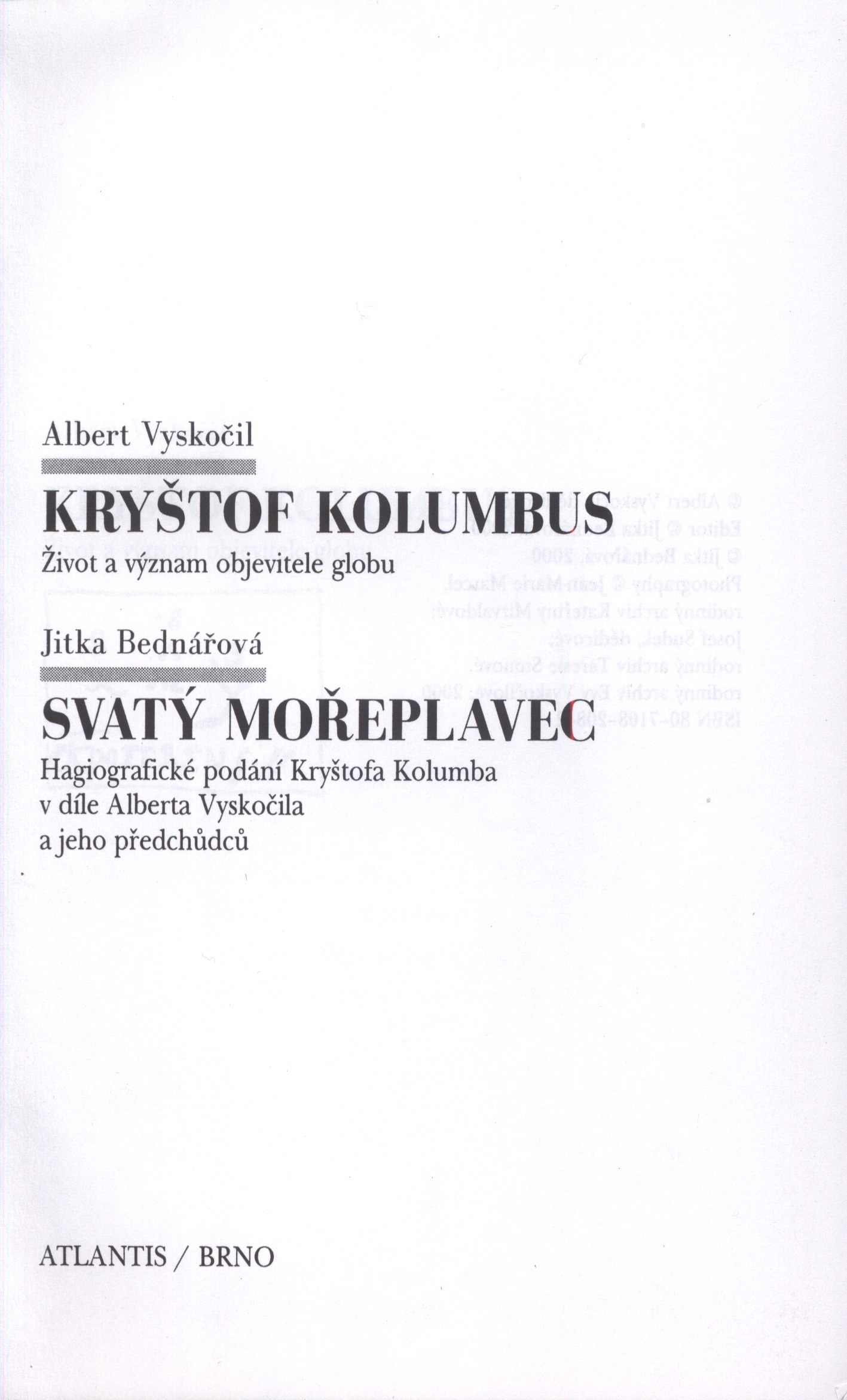 Názvové údaje Krištof Kolumbus nebo: Objevení Ameriky : historická povídka pro mládež a přátele její / podle E. z Ambachu ; volně přel. od Josefa Věnc. Vlasáka Osobní jméno Ambach, Eduard von, 1817-1897 (Autor) Další autoři Vlasák, Josef Věnceslav, 1802-1871 (Překladatel) Korp. Mikuláš a Knapp (tiskárna, knihkupectví a nakladatelství) (Nakladatel, vydavatel) Nakladatel V Praze : Nákladem kněhkupectví Mikuláš a Knapp, 1870 Rozsah 83, 1 s. : 1 il. příl. ; 8° Osobní hesla Kolumbus, Kryštof, 1451-1506 - italský mořeplavec, cestopisec Klíčová slova německá literatura * historická próza * stol. 15. Počet ex. 1, z toho volných 1 Druh dok. monografie Signatura L XIX e 31 Názvové údaje Život a cesty Krištofa Kolumba / z angličtiny Washingtona Irvinga přeložil J. Malý Osobní jméno Irving, Washington, 1783-1859 (Autor) Další autoři Malý, Jakub, 1811-1885 (Překladatel) Korp. Jaroslav Pospíšil (nakladatelství) (Nakladatel, vydavatel) Nakladatel V Praze : Tisk a náklad J. Pospíšila, 1853 Rozsah [12], 348 s. + 1 příl. ; 8° Osobní hesla Kolumbus, Kryštof, 1451-1506 - italský mořeplavec, cestopisec Klíčová slova americká literatura * americká próza * prózy * objevitelé * slavné osobnosti * objevné cesty Počet ex. 1, z toho volných 1 Druh dok. monografie Signatura L XIV d 39 Názvové údaje Život a cesty Krištofa Kolumba / z angličtiny Washingtona Irvinga přeložil J. Malý Osobní jméno Irving, Washington, 1783-1859 (Autor) Další autoři Malý, Jakub, 1811-1885 (Překladatel) Korp. Jaroslav Pospíšil (nakladatelství) (Nakladatel, vydavatel) Nakladatel V Praze : Tisk a náklad J. Pospíšila, 1853 Rozsah [12], 348, [4] s. ; 8° Osobní hesla Kolumbus, Kryštof, 1451-1506 - italský mořeplavec, cestopisec Klíčová slova americká literatura * americká próza * prózy * objevitelé * objevné cesty Počet ex. 1, z toho volných 1 Druh dok. monografie Signatura L XI c 22 Názvové údaje Kolumbův dopis o objevení Ameriky 1493 : [Epistola de Insulis in mari Indico nuper inventis] / [Cristoferi Colom] Osobní jméno Kolumbus, Kryštof, 1451-1506 (Autor) Další autoři Kliková, Marie (Nakladatel, vydavatel) (Editor) Nakladatel [V Praze] : Marie Kliková, MCMIV [=1904] Výrobce (tiskne se u J. Skaláka a spol.) Rozsah [16] listů : il. ; 4° (24,7 x 17 cm) Osobní hesla Kolumbus, Kryštof, 1451-1506 - italský mořeplavec, cestopisec Klíčová slova staré tisky * faksimile * překlady * překlady do češtiny * cestopisy * Kolumbus K. * objevení Ameriky * objevitelé * objevné cesty * objevné plavby * Amerika Počet ex. 1, z toho volných 1 Druh dok. monografie Signatura KaG V d 12 Názvové údaje Kolumbův lodní deník : dvě knihy velkých činů a velkého osudu : rekonstrukce a citace lodního deníku Kryštofa Kolumba z první oceánské plavby (1492-1493) a zprávy a listy Kolumba a jeho současníků o dalších třech cestách 1493-1496, 1498-1500 a 1502-1504 a o smutném konci objevitele, sebrané a vydané péčí Rinalda Caddea / s předmluvou Josefa Šusty ; z italštiny přeložil Jan Brechensbauer Osobní jméno Kolumbus, Kryštof, 1451-1506 (Autor) Další autoři Šusta, Josef, (Autor úvodu atd.) 1874-1945 Brechensbauer, Jan, 1888-1961 (Překladatel) Tittelbach, Vojtěch, 1900-1971 (Autor obálky) Caddeo, Rinaldo, 1881-1956 (Autor doslovu, tiráže atd.) Korp. Novina (firma) (Nakladatel, vydavatel) Nakladatel V Praze : Nakladatelství Novina, 1942 Výrobce Praha : Novina Rozsah 496 stran, 6 nečíslovaných stran obrazové přílohy, 2 nečíslované a 1 rozložený list map : ilustrace, portréty, mapy ; 22 cm Osobní hesla Kolumbus, Kryštof, 1451-1506 - italský mořeplavec, cestopisec Předmětová hesla mořeplavectví * dějiny mořeplavectví Klíčová slova španělská literatura * Kolumbus K. * deníky * lodní deník * mořeplavecké cesty * překlad * italština * český překlad * obrazové přílohy * r. 1942 Počet ex. 1, z toho volných 1 Druh dok. monografie Signatura VZinková 0250 Názvové údaje Krištof Kolumbus / Karel Mirvald ; [upravil Břetislav Štorm] Osobní jméno Mirvald, Karel, 1904- (Autor) Další autoři Štorm, Břetislav, 1907-1960 (Knižní grafik) Korp. Ladislav Kuncíř (nakladatelství a knihkupectví) (Nakladatel, vydavatel) Václav Horák (tiskárna) (Tiskař) Nakladatel V Praze : U Ladislava Kuncíře, 1937 Výrobce Knihtiskárna V. Horáka) Rozsah 83 s. Osobní hesla Kolumbus, Kryštof, 1451-1506 - italský mořeplavec, cestopisec Klíčová slova česká literatura * česká próza * Kolumbus K. Počet ex. 1, z toho volných 1 Druh dok. monografie Signatura VHB 0853 Názvové údaje Krisstof Kolumbus, čili, Odkrytj Ameriky : děgepisné wyprawowánj pro mládež i dospělé / sepsal P.J. Šulc Osobní jméno Šulc, Pavel J., 1828-1897 (Autor) Další autoři Spurný, Jan, -asi 1860 (Nakladatel, vydavatel) Nakladatel W Praze : Tiskem a nákladem Jana Spurného, 1851 Rozsah iv, 116 s. ; 18 cm Osobní hesla Kolumbus, Kryštof 1451-1506 Klíčová slova česká literatura * dějiny * historie * objevení Ameriky * objevitelé * Amerika * objevování světa Počet ex. 3, z toho volných 3 Druh dok. monografie Signatura L XVII f 32, L xxx, L X d 16 Názvové údaje Kryštof Kolumbus : život a význam objevitele globu / Albert Vyskočil. Svatý mořeplavec : hagiografické podání Kryštofa Kolumba v díle Alberta Vyskočila a jeho předchůdců / Jitka Bednářová Osobní jméno Vyskočil, Albert, 1890-1966 (Autor) Další autoři Bednářová, Jitka, 1972- (Autor) (Editor) (Redaktor, výkonný redaktor) Mysliveček, Boris, 1948- (Autor obálky) (Výtvarník vazby) (Knižní grafik) Ludva, Vladimír, 1973- (Sazeč) Novák, Josef, 1902-1987 (Ilustrátor) Korp. Atlantis - nakladatelské družstvo českých, moravských a slovenských autorů (Nakladatel, vydavatel) Centa (tiskárna) (Tiskař) (Tiskař obrazu) Nakladatel Brno : Atlantis, 