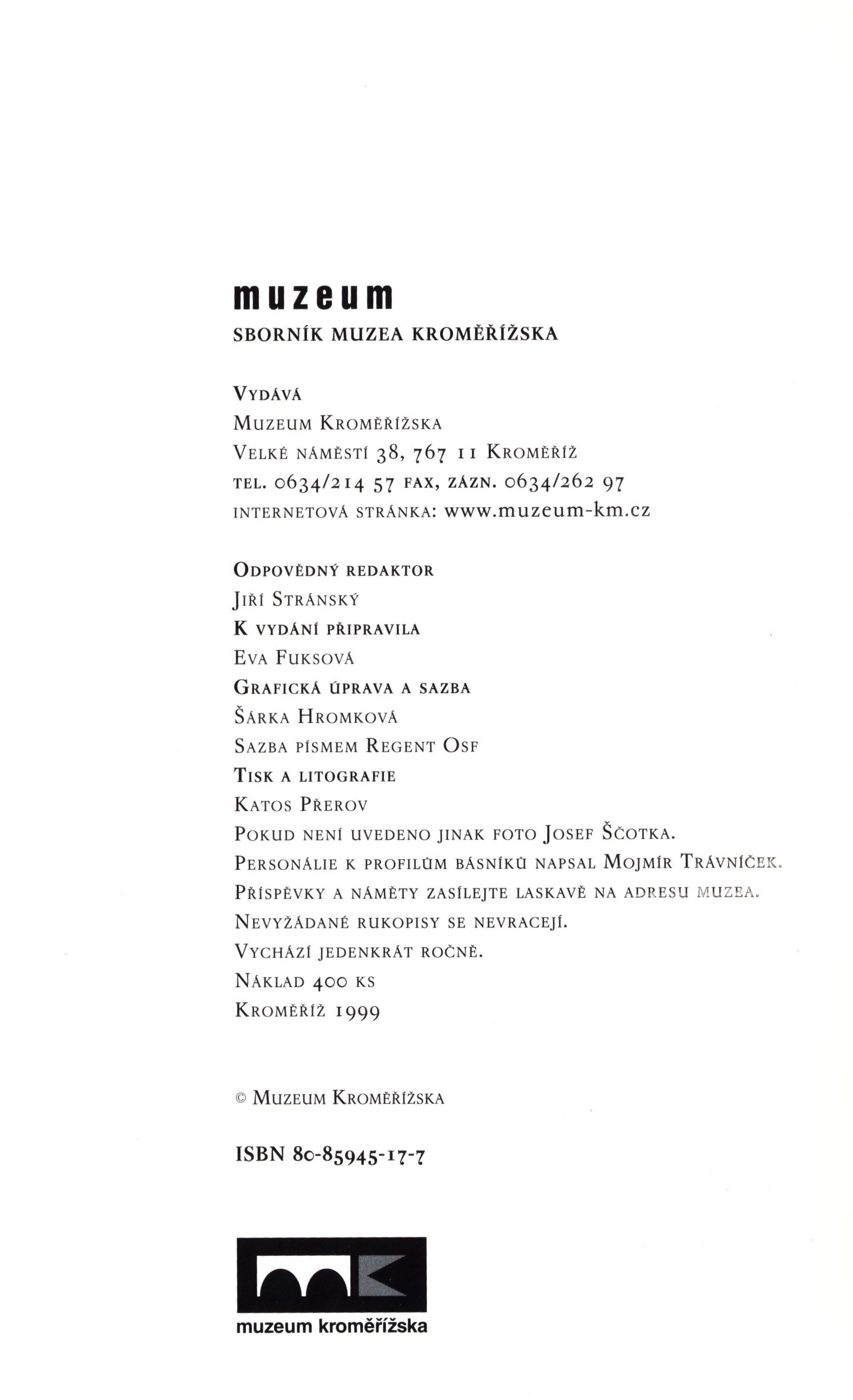 Názvové údaje Chřiby záhadné a mytické 2 / Michal Baščan ...[et al.] ; [foto Bořek Žižlavský, Pavel Bezděčka a archiv ; grafická úprava a sazba Vít Kučera] Osobní jméno Baščan, Michal, 1974-2009 (Autor) Další autoři Žižlavský, Bořek, 1962- (Fotograf) Kučera, Vít (Grafický technik) Nakladatel Buchlovice : Veligrad, 2013 Výrobce (Hudec) Rozsah 113 s. : il. Klíčová slova česká literatura * pověsti * moravské pověsti * záhady * sborníky * Morava * Kroměřížsko Počet ex. 1, z toho volných 1 Druh dok. monografie Signatura C12b 15063 Názvové údaje Vývoj regionálního tisku na Kroměřížsku / [Vojtěch Březina] Osobní jméno Březina, Vojtěch, 1929-2019 (Autor) Rozsah 1997, číslo 5, s. 107-113 Klíčová slova česká literatura * bibliografie * periodika * tiskoviny * noviny * regionální tvorba * Kroměříž * Kroměřížsko * studie * r. 1848-1996 Počet ex. 1, z toho volných 1 Druh dok. separáty Signatura PK 0039 Názvové údaje O životopisných románech / František Kožík ; [grafickou úpravu s použitím kreseb Zdeňka Mlčocha provedl Břetislav Dadák ; výběrovou bibliografii zpracoval a redigoval Oldřich Fiala] Osobní jméno Kožík, František, 1909-1997 (Autor) Další autoři Mlčoch, Zdeněk, 1921-1995 (Ilustrátor) Dadák, Břetislav, 1936-2014 (Grafický technik) Fiala, Oldřich, 1945- (Editor) Korp. Okresní knihovna (Kroměříž) Albatros. Klub dětských knihoven (Praha) Nakladatel Kroměříž : Městský národní výbor, 1979 Rozsah 38 s. Klíčová slova česká literatura * životopisné romány * Kroměřížsko * bibliografie * stol. 20. Počet ex. 1, z toho volných 1 Druh dok. monografie Signatura C12b 6232 Názvové údaje Výtvarné umění na Kroměřížsku a Zdounecku / Ludvík Páleníček ; [s ... obálkou Františka Vrobela] ; [knihtiskař Karel Kryl] Osobní jméno Páleníček, Ludvík, 1904-1991 (Autor) (Autor podpisu) Další autoři Vrobel, František, 1892-1953 (Autor obálky) Kryl, Karel, 1878-1943 (Tiskař) Korp. Osvětové sbory na Kroměřížsku a Zdounecku (Kroměříž) (Nakladatel, vydavatel) Nakladatel V Kroměříži : Nákaldem Osvětových sborů na Kroměřížsku a Zdounecku, 1940 Výrobce (Vytiskl Karel Kryl) Rozsah 107 s., [15] listů obr. příl. : il. Klíčová slova česká literatura * výtvarné umění * Kroměřížsko * město * Kroměříž * čeští výtvarníci * soupis * seznam * životopisy * přehledy Počet ex. 1, z toho volných 1 Druh dok. monografie Signatura KaG IA2 63 Názvové údaje Archivní ročenka 1998 / Státní okresní archiv Kroměříž ; [odpovědný redaktor Jarmila Bartošíková] Záhlaví-korpor. Státní okresní archiv Kroměříž (Nakladatel, vydavatel) Další autoři Bartošíková, Jarmila, 1954- (Editor) Nakladatel Kroměříž : Státní okresní archiv, 1998 Rozsah 116 s. : il., portréty, faksim., erby, tb. Klíčová slova Kroměřížsko * vlastivěda * historie kraje * osobnosti * r. 1998 * archivní ročenka Počet ex. 1, z toho volných 1 Druh dok. monografie Signatura C12b 14490 Názvové údaje Archivní ročenka 2002. VIII. ročník Záhlaví-korpor. Státní okresní archiv Kroměříž (Nakladatel, vydavatel) Nakladatel Brno : Moravský zemský archiv ; Kroměříž : Státní okresní archiv, 2002 Rozsah 130 s. : il., portréty, faksim. Klíčová slova Kroměřížsko * vlastivěda * historie kraje * osobnosti * archivní fondy * r. 2002 * archivní ročenka Počet ex. 1, z toho volných 1 Druh dok. monografie Signatura C12b 14492 Názvové údaje Květy sokolských vzpomínek z pohnutých dob / Miloš Živný ; [v typografické úpravě s osmi kresbami a obálkou Františka Vrobla] Osobní jméno Živný, Miloš, 1882-1940 (Autor) Další autoři Vrobel, František, 1892-1953 (Ilustrátor) (Autor obálky) (Typograf) Nakladatel V Kroměříži : Sokolská župa Hanácká, 1931 Výrobce (Čeněk Pechtor) Rozsah 88 s. ; 4° Klíčová slova Sokol * sokolstvo * Česko * Kroměřížsko * Kroměříž * tělovýchovné jednoty * historie * stol. 19.-20., léta 20. * 1. světová válka * vzpomínky Počet ex. 1, z toho volných 1 Druh dok. monografie Signatura C12d 1248 Názvové údaje Archivní ročenka 1999 : Státní okresní archiv Kroměříž Nakladatel Kroměříž : Státní okresní archiv, 1999 Rozsah 106 s. : il., portréty, faksim., mp. Klíčová slova archivní ročenka * Kroměřížsko * vlastivěda * historie kraje * osobnosti * r. 1999 Počet ex. 1, z toho volných 1 Druh dok. monografie Signatura C12b 14491 Názvové údaje Muzeum : sborník Muzea Kroměřížska / odpovědný redaktor Jiří Stránský ; k vydání připravila Eva Fuksová ; grafická úprava a sazba Šárka Hromková Další autoři Stránský, Jiří, (Redaktor, výkonný redaktor) 1931-2019 Fuksová, Eva (Editor) Hromková, Šárka, (Grafický technik) (Sazeč) 1968- Korp. Muzeum Kroměřížska (Kroměříž, Česko) (Nakladatel, vydavatel) Nakladatel Kroměříž : Muzeum Kroměřížska, 1999 Výrobce Přerov : KATOS Rozsah 112 stran : fotografie, ilustrace ; 23 cm Heslo korporace (zkrác. heslo korp.) : Muzeum Kroměřížska (Kroměříž, Česko) Klíčová slova muzea * Kroměřížsko * Kroměříž * sborník * vlastivěda Počet ex. 1, z toho volných 1 Druh dok. monografie Signatura Listopad 0088