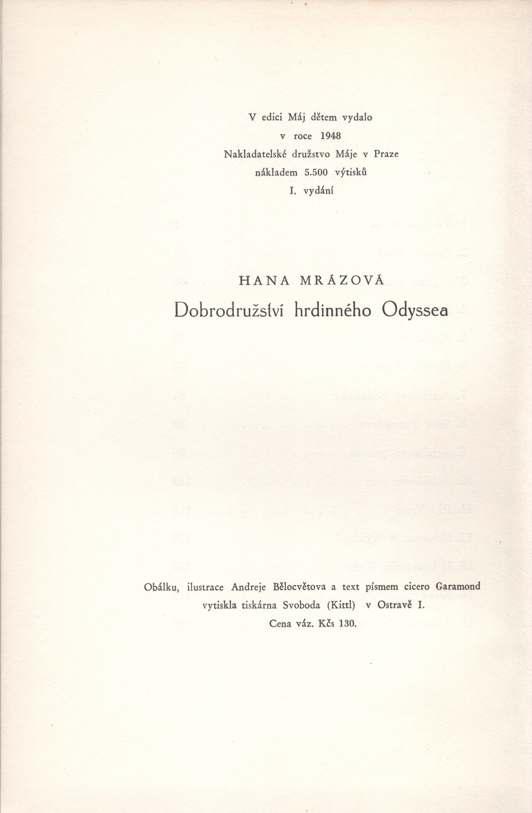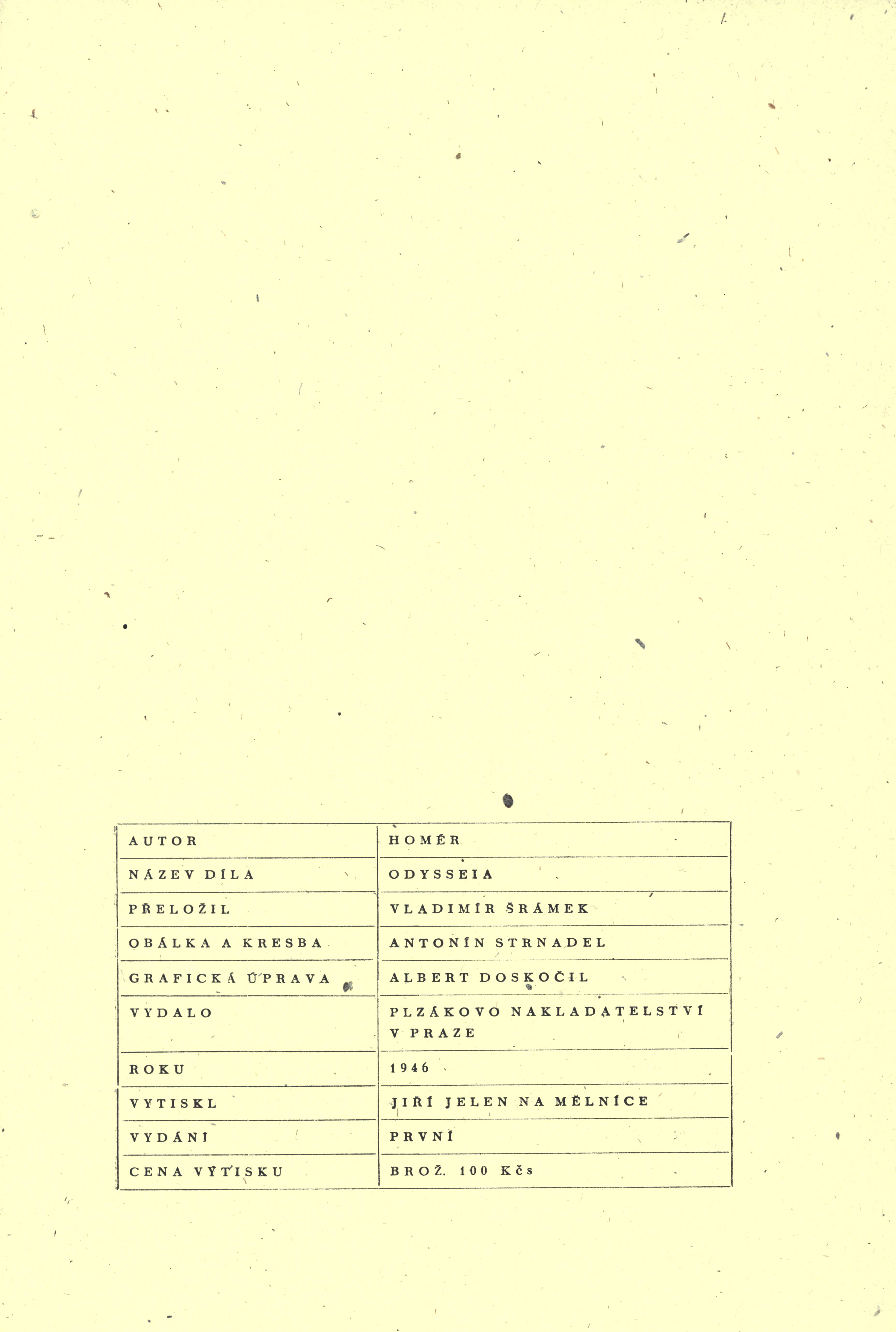 Názvové údaje Odysseia / Homér ; přeložil Otmar Vaňorný ; ilustroval Arnošt Paderlík ; [text redigovaný Ferdinandem Stiebitzem k vydání připravil Rudolf Mertlík ; doslov a poznámky napsal Ferdinand Stiebitz ; ilustroval, obálku, vazbu a grafickou úpravu navrhl Arnošt Paderlík] Autor Homéros, činný 8. století př. Kr. (Autor) Další autoři Vaňorný, Otmar, 1860-1947 (Překladatel) Stiebitz, Ferdinand, 1894-1961 (Editor) (Autor doslovu, tiráže atd.) (Autor úvodu atd.) Mertlík, Rudolf, 1913-1985 (Editor) Paderlík, Arnošt, 1919-1999 (Ilustrátor) (Autor obálky) (Výtvarník vazby) (Grafický technik) Nakladatel Praha : Odeon, 1967 Výrobce (PG 1) Rozsah 441 s. ; 8° Klíčová slova řecká literatura * antická literatura * překlad * řecká mytologie * epos * Odyssea Počet ex. 1, z toho volných 1 Druh dok. monografie Signatura EJulis 0782 Názvové údaje Odysseia / Homér ; přeložil Vladimír Šrámek Autor Homéros, činný 8. století př. Kr. (Autor) Další autoři Šrámek, Vladimír, 1893-1969 (Překladatel) Strnadel, Antonín, 1910-1975 (Autor obálky) (Ilustrátor) Zink, Karel, 1889-1975 (Dřívější majitel) (Autor podpisu) Korp. Plzákovo nakladatelství (Nakladatel, vydavatel) Nakladatel V Praze : Plzákovo nakladatelství, 1945 Rozsah 288 stran : ilustrace ; 24 cm Klíčová slova řecká mytologie * epická poezie * Homéros * antické báje * mýty * Odyssea * epos * antické Řecko * český překlad * Šrámek V. * ilustrace * Strnadel A. Počet ex. 1, z toho volných 1 Druh dok. monografie Signatura VZinková 0783 Názvové údaje Odysseia / Homér ; [přeložil Vladimír Šrámek ; obálka a kresba Antonín Strnadel ; grafická úprava Albert Doskočil] Autor Homéros, činný 8. století př. Kr. (Autor) Další autoři Šrámek, Vladimír, 1958- (Překladatel) Strnadel, Antonín, 1910-1975 (Autor obálky) (Ilustrátor) Doskočil, Albert (Grafický technik) Korp. Plzákovo nakladatelství (Nakladatel, vydavatel) Jiří Jelen (tiskárna) (Tiskař) Nakladatel V Praze : Plzákovo nakladatelství, 1945 Výrobce Jiří Jelen) Rozsah 297 s. : il. ; 24 cm Klíčová slova řecká literatura * antická literatura * překlad * řecká mytologie * antická mytologie * epos * Odyssea Počet ex. 1, z toho volných 1 Druh dok. monografie Signatura EJulis 0378 Názvové údaje Odysseia / Homér ; [z řeckého originálu pro dnešního člověka přetlumočil Vladimír Šrámek ; překlad prohlédl a doslov napsal Ferdinan Stiebitz ; osm barevných příloh nakreslil Antonín Procházka ; typografická úprava, obálka a vazba jsou provedeny podle návrhů Oldřicha Menharta] Autor Homéros, činný 8. století př. Kr. (Autor) Další autoři Šrámek, Vladimír, 1893-1969 (Překladatel) Stiebitz, Ferdinand, 1894-1961 (Editor) (Autor doslovu, tiráže atd.) Procházka, Antonín, 1882-1945 (Ilustrátor) Menhart, Oldřich, 1897-1962 (Typograf) (Autor obálky) (Výtvarník vazby) Korp. Evropský literární klub (nakladatelství) (Nakladatel, vydavatel) Průmyslová tiskárna v Praze (Tiskař) Česká grafická Unie (tiskárna a nakladatelství) (Tiskař obrazu) Nakladatel Praha : Evropský literární klub, 1940 Výrobce (Průmyslová tiskárna) Rozsah 302 s., [8] bar. příl. : il. ; 28 cm Klíčová slova řecká mytologie * epická poezie * antické báje * mýty * Odyssea * epos * antické Řecko * překlad * ilustrované knihy Počet ex. 3, z toho volných 3 Druh dok. monografie Signatura C12d 59, C12c 3498, ELK 0299 Názvové údaje Příhody Odysseovy / Homéros ; přeložil Otmar Vaňorný Autor Homéros, činný 8. století př. Kr. (Autor) Další autoři Vaňorný, Otmar, 1860-1947 (Překladatel) (Autor úvodu atd.) Korp. Jan Laichter (nakladatelství) (Nakladatel, vydavatel) E. Leschinger (knihtiskař, nakladatel) (Tiskař) Tělocvičná jednota Sokol (Nusle, Česko) (Dřívější majitel) Nakladatel V Praze : Jan Laichter, 1922 Výrobce (Tiskem Ed. Leschingra) Rozsah 112 s. Klíčová slova řecká literatura * antická literatura * antické eposy * epos * eposy * Odyssea Počet ex. 1, z toho volných 1 Druh dok. monografie Signatura KaG XXVIII D 48 Názvové údaje Příhody Odysseovy / Homéros ; z Odysseie přeložil Otmar Vaňorný Autor Homéros, činný 8. století př. Kr. (Autor) Další autoři Vaňorný, Otmar, 1860-1947 (Překladatel) (Autor úvodu atd.) Korp. Jan Laichter (nakladatelství) (Nakladatel, vydavatel) Edvard Leschinger (firma) (Tiskař) Nakladatel V Praze : J. Laichter, 1904 Výrobce (Tiskl Edvard Leschinger) Rozsah iv, 127 s. Klíčová slova řecká literatura * antická literatura * překlad * antické eposy * eposy * Odyssea * r. 1904 Počet ex. 1, z toho volných 1 Druh dok. monografie Signatura AVrbova 417 Názvové údaje The hero and the goddess : the Odyssey as mystery and initiation / Jean Houston Osobní jméno Houston, Jean, 1937- (Autor) Nakladatel New York : Ballantine Books, 1992 Rozsah xvi, 424 stran ; 20 cm Klíčová slova americká literatura * Odyssea * řecká mytologie * hrdinové bájí Počet ex. 1, z toho volných 1 Druh dok. monografie Signatura BVolkova 1225 Názvové údaje Homers Odyssee / Nacherzählt von Jaroslav Hulák ; Illustr. von Jiří Běhounek ; Ins Deutsche [z čes.] übertragen von Wolf B. Oerter ; Graph. Gestaltung von Ivan Urbánek Osobní jméno Hulák, Jaroslav, 1920-1999 (Autor) Další autoři Homéros, činný 8. století př. Kr. (Autor) Běhounek, Jiří, 1929-2005 (Ilustrátor) Oerter, Wolf B., 1947- (Překladatel) Urbánek, Ivan, 1933-1994 (Grafický technik) Nakladatel München : Lentz Verlag, 1988 Výrobce Svoboda) Rozsah 248 s. : il Klíčová slova česká literatura * Odyssea * epos * převyprávění * knihy pro děti Počet ex. 1, z toho volných 1 Druh dok. monografie Signatura NK/88 0018 Názvové údaje Dobrodružství hrdinného Odyssea / Hana Mrázová ; [obálku, ilustrace Andreje Bělocvětova ...] Osobní jméno Mrázová, Hana (Autor) Dalš