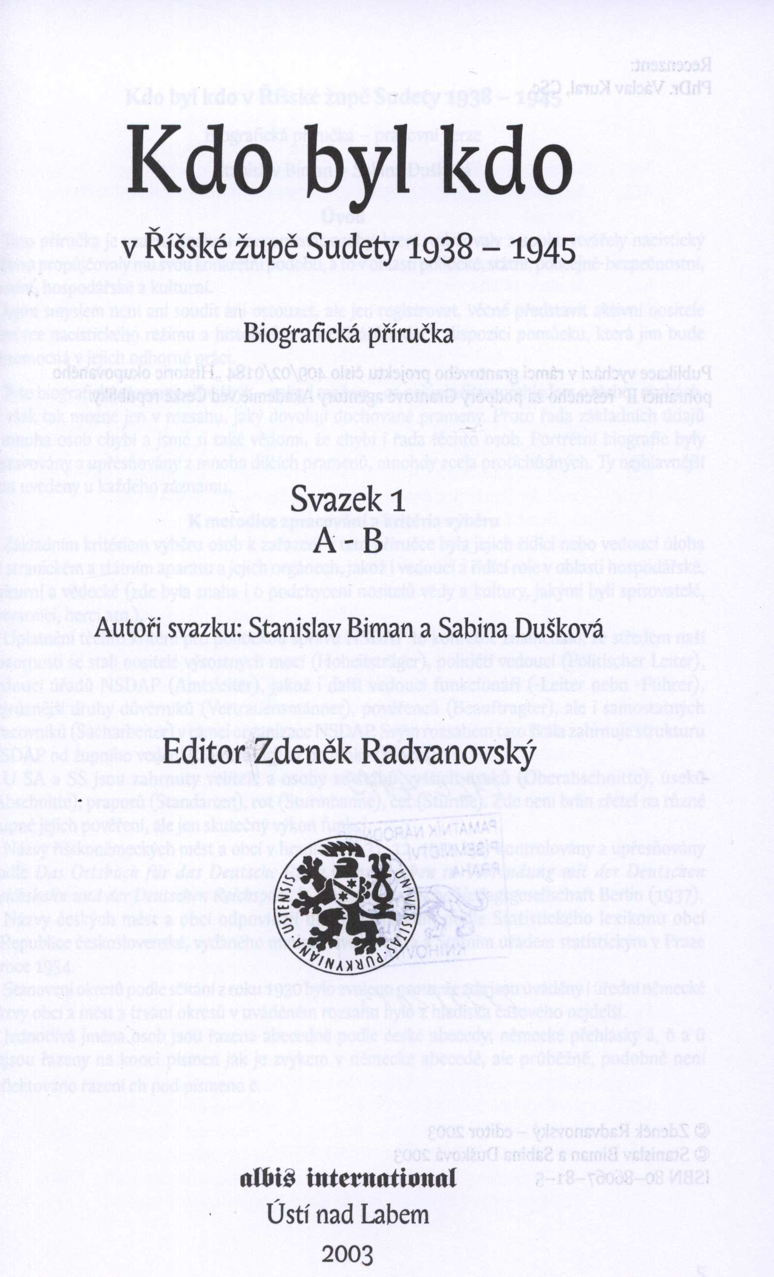 Názvové údaje Berlin or Prague? : the Germans of Czechoslovakia at the cross-roads / by Gustav Beuer Osobní jméno Bauer, Gustav, 1893-1947 Nakladatel London : Lofox, [1944] Rozsah 80 s. Klíčová slova Sudety * česko-německá otázka * politické ideologie * česko-německé pohraničí * česko-německé soužití * studie Počet ex. 1, z toho volných 1 Druh dok. monografie Signatura Teige 052 Názvové údaje Sudeten Deutsche wohin? : Probleme des Sudetendeutschen Anti-Hitler-Kampfes / Gustav Beuer Osobní jméno Bauer, Gustav, 1893-1947 (Autor) Nakladatel [S. l. : s. n., 1943] Výrobce Lofox) Rozsah 42 s. Klíčová slova nacismus * Sudety * česko-německá otázka * česko-německé pohraničí * česko-německé vztahy * studie Počet ex. 1, z toho volných 1 Druh dok. monografie Signatura Teige 065 Názvové údaje Kdo byl kdo v Říšské župě Sudety 1938-1945 : biografická příručka. Svazek 1, A - B / autoři svazku Stanislav Biman a Sabina Dušková ; editor Zdeněk Radvanovský ; [obálka a technická redakce Jiří Vomáčka] Osobní jméno Biman, Stanislav, 1938- (Autor) Další autoři Dušková, Sabina (Jiná role) Radvanovský, Zdeněk, 1953- (Editor) Nakladatel Ústí nad Labem : Albis international, 2003 Výrobce Tiskem Josefa Hlávka) Rozsah 306 s. ; 23 cm Geografické heslo Sudety (Česko) Klíčová slova nacismus * osobnosti * politické osobnosti * slovníky * stručné biografie * příručka Počet ex. 1, z toho volných 1 Druh dok. monografie Signatura C12c 4113 Názvové údaje Die alten Steinkreuze in Böhmen und im Sudetengau : mit 62 Lichtbildern und 2 Karten / Walter von Dreyhausen Osobní jméno Dreyhausen, Walter von, 1913-1990 (Autor) Nakladatel Reichenberg ; Leipzig : Sudetendeutscher Verlag Franz Kraus, 1940 Výrobce Deutsche Druckerei) Rozsah 163 s. : 62 il., 2 mapy, tab Klíčová slova Čechy * Sudety * architektura * sochařství * sochy * monografie Počet ex. 1, z toho volných 1 Druh dok. monografie Signatura M 42 a 9 Názvové údaje Cis et Trans Montes : Příspěvky z Krušnohoří k vlastivědě a porozumění / Karlheinz Filipp Osobní jméno Filipp, Karlheinz, 1941- (Autor) Nakladatel Ústí nad Labem : vl.n., 1998 Rozsah 70 s. Klíčová slova německá literatura * česko-německé vztahy * Sudety * Češi * Němci * soužití * Krušnohoří * stol. 19.-20. Počet ex. 1, z toho volných 1 Druh dok. monografie Signatura C12b 2887 Názvové údaje Sudetendeutsches Ortsnamen-Buch : Der Bezirk Falkenau / Rudolf Fischer ; Erich Gierach, Ernst Schwarz. 4. Heft, Die Ortsnamen des Bezirkes Falkenau Osobní jméno Fischer, Rudolf, 1910-1971 (Autor) Další autoři Gierach, Erich, 1881-1943 (Editor) Schwarz, Ernst, 1895-1983 (Editor) Korp. Anstalt für Sudetendeutsche Heimatforschung der Deutschen Wisseschaftlichen Gesellschaft in Reichenberg (Liberec) (Nakladatel, vydavatel) Sudetendeutscher Verlag Franz Kraus, Reichenberg (Liberec) (Nakladatel, vydavatel) Unifikovaný název Sudetendeutsches Ortsnamenbuch Nakladatel Reichenberg : Anstalt für Sudetendeutsche Heimatforschung der Deutschen Wisseschaftlichen Gesellschaft in Reichenberg, 1938 Rozsah 75 s. + barevná mapa 1 : 75 000 Klíčová slova místopis * Sudety * Sokolov * Sokolovsko * sokolovský okres Počet ex. 1, z toho volných 1 Druh dok. monografie Signatura M 149b2/IV