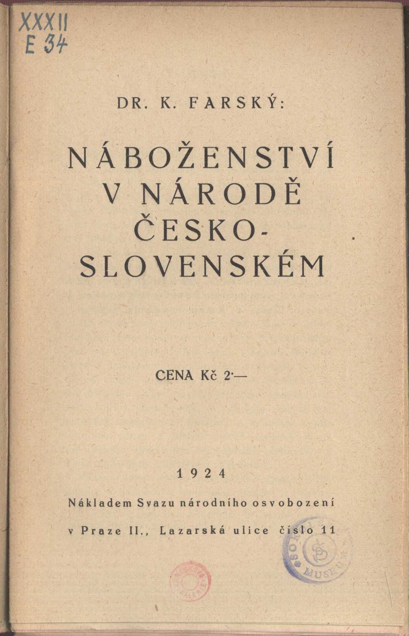 Názvové údaje Bogomilstvoto v istorijata na slavjanskite narodi i vlijanieto mu v Zapadna Evropa / Dimităr Angelov Osobní jméno Angelov, Dimităr Simeonov, (Autor) 1917-1996 Nakladatel Sofija : Bălgarska akad. na naukite, 1963 Rozsah Strany 167-178 Klíčová slova slovanské národy * slovanské země * náboženství * dějiny náboženství Počet ex. 1, z toho volných 1 Druh dok. monografie Signatura M 170 b 115 Názvové údaje Církev a stát / František Bednář Osobní jméno Bednář, František, 1884-1963 (Autor) Další autoři Melantrich (nakladatelství) (Nakladatel, vydavatel) Nakladatel V Praze : Melantrich, 1934 Rozsah 236 s. Klíčová slova náboženství * světové dějiny * stát a církev * boj o moc * dějiny náboženství * dějiny křesťanství * studie Počet ex. 1, z toho volných 1 Druh dok. monografie Signatura MEL 2281 Názvové údaje Buddha / Egon Bondy Osobní jméno Bondy, Egon, 1930-2007 (Autor) Nakladatel Praha : DharmaGaia, 2006 Rozsah 255 s. : il. Osobní hesla Buddha, asi 563-asi 483 př. Kr. - zakladatel Buddhismu Klíčová slova buddhismus * učení * indická filozofie * náboženství * dějiny náboženství * Indie * monografie Počet ex. 1, z toho volných 1 Druh dok. monografie Signatura C12b 9868 Názvové údaje Bábel a bible / prvá přednáška Bedřicha Delitzsche : s 50 vyobrazeními ; autorisovaný překlad ... od Ant. Kloudy Osobní jméno Delitzsch, Friedrich, 1850-1922 (Autor) Další autoři Pak, J. (Tiskař) Klouda, Antonín, 1871-1961 (Překladatel) Korp. Tiskové a vydavatelské družstvo Samostatnosti (zapsané společenstvo s ručením obmezeným v Praze) (Nakladatel, vydavatel) Nakladatel V Praze : Nákladem Tiskového a vydavatelského družstva Samostatnosti, 1903 Výrobce (Tiskem J. Paka) Rozsah 63 s. : il. Klíčová slova pojednání * Bible * dějiny náboženství * Babylon Druh dok. monografie Názvové údaje Studie z dějin náboženství / Ambrogio Donini ; [z italského originálu ... přeložil Jaroslav Čihák] Osobní jméno Donini, Ambrogio, 1903-1991 (Autor) Další autoři Čihák, Jaroslav, 1918-1984 (Překladatel) Korp. Státní nakladatelství politické literatury (Nakladatel, vydavatel) Rudé právo (tiskárna, Praha) (Tiskař) Nakladatel Praha : SNPL, 1961 Výrobce (Rudé právo) Rozsah 267 s.. [8] s. obr. příl. ; 8° Klíčová slova dějiny náboženství * filozofie náboženství * studie Počet ex. 1, z toho volných 1 Druh dok. monografie Signatura V I b 13 Názvové údaje Dějiny konfliktů mezi náboženstvím a vědou / John William Draper ; z angličtiny přeložil dle XXI. vydání S. Mokrý Osobní jméno Draper, John William, 1811-1882 (Autor) Další autoři Mokrý, S., 1869-1927 (Překladatel) Korp. Karel Stan. Sokol (nakladatelství a vydavatelství) (Nakladatel, vydavatel) Nakladatel V Praze : K. Stan. Sokol, [1892] Výrobce (Ed. Beaufort) Rozsah 446-[XIII] s. ; 8° Klíčová slova teologie * náboženství * dějiny náboženství * víra * věda * vědecké poznatky Počet ex. 2, z toho volných 2 Druh dok. monografie Signatura Kratochvíl 296, M 11 g 39 Názvové údaje Myšlenkový vývoj evropského lidstva : přednášky, jež v české universitní extensi konal Frant. Drtina Osobní jméno Drtina, František, 1861-1925 (Autor) Další autoři Jan Laichter (nakladatelství) (Nakladatel, vydavatel) Nakladatel Praha : J. Laichter, 1902 Rozsah 391 s. Osobní hesla Drtina, František, 1861-1925 - politik a filozof Klíčová slova dějiny filozofie * dějiny náboženství * přednášky Počet ex. 1, z toho volných 1 Druh dok. monografie Signatura M 9 f 19 Názvové údaje Dějiny náboženského myšlení / Mircea Eliade ; přeložili z francouzštiny Kateřina Dejmalová, Filip Karfík, Milan Lyčka, Jiří Našinec, Barbora Patočková ; obálku navrhl Zdeněk Ziegler. [Díl] I=01, Od doby kamenné po eleusinská mystéria Osobní jméno Eliade, Mircea, 1907-1986 Další autoři Dejmalová, Kateřina, 1949- (Překladatel) Karfík, Filip, 1963- (Překladatel) Lyčka, Milan (Překladatel) Našinec, Jiří, 1950- (Překladatel) Patočková, Barbora (Překladatel) Ziegler, Zdeněk, 1932-2023 (Grafický technik) Nakladatel Praha : OIKOYMENH, 1995 Rozsah 429 s. Klíčová slova filozofie náboženství * dějiny náboženství * francouzská literatura * církevní dějiny * doba kamenná-eleusinská mystéria Počet ex. 1, z toho volných 1 Druh dok. monografie Signatura M 222 b 32 Názvové údaje Náboženství v národě československém / K. Farský Osobní jméno Farský, Karel, 1880-1927 (Autor) Další autoři Svaz národního osvobození (nakladatelství) (Nakladatel, vydavatel) Legiografie (tiskárna) (Tiskař) Sokolské museum (Dřívější majitel) Nakladatel V Praze : Nákladem Svazu národního osvobození, 1924 Výrobce (Legiografie) Rozsah 31 s. Klíčová slova česká literatura * dějiny náboženství * náboženství * křesťanství Počet ex. 1, z toho volných 1 Druh dok. monografie Signatura KaG XXXII E 34