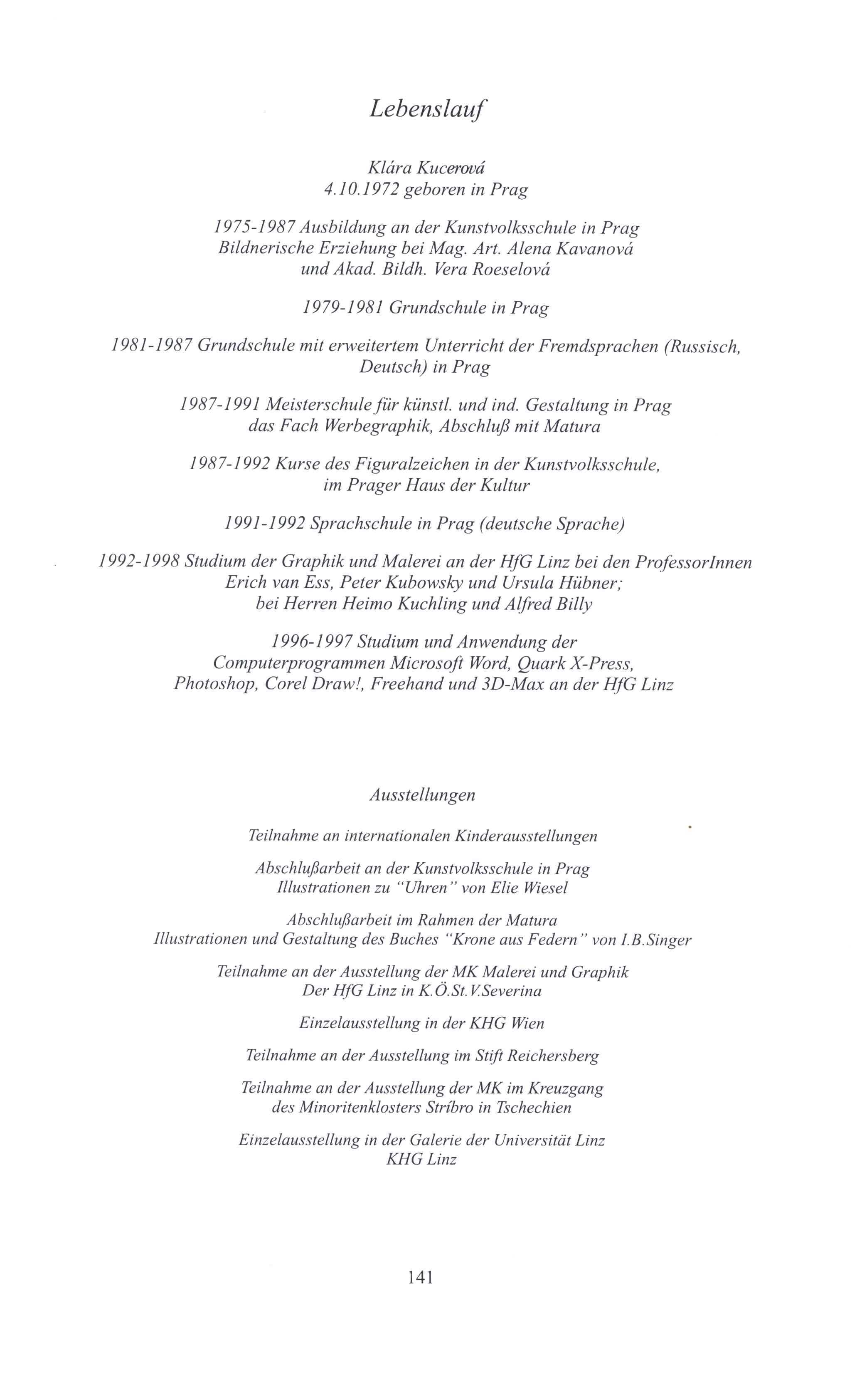 Názvové údaje Česká vizuální poezie 60. let : magisterská práce / Kenichi Abe Osobní jméno Abe, Kenichi, 1972- (Autor) Nakladatel Tokyo : Tokyo University of Foreign Studies, 1999 Rozsah 90 s., [17] s. obr. příl. Klíčová slova česká literatura * česká poezie * vizuální poezie * stol. 20., léta 60. * diplomová práce Počet ex. 1, z toho volných 1 Druh dok. monografie Signatura H&G 0037 Názvové údaje Postmodernistické postupy v prózách Ladislava Fukse : diplomová práce / vypracovala Božena Bacílková ; vedoucí práce Helena Kupcová ; Pedagogická fakulta Univerzity Karlovy, Katedra české literatury Osobní jméno Bacílková, Božena (Autor) Další autoři Kupcová, Helena, 1940- (Vedoucí diplomové práce nebo disertace) Korp. Univerzita Karlova. Pedagogická fakulta (Praha (Česko) Nakladatel Praha, 1994 Rozsah 164 s. Osobní hesla Fuks, Ladislav, 1923-1994 - prozaik Klíčová slova čeští spisovatelé * česká literatura * postmodernismus * interpretace literárního díla * diplomová práce Počet ex. 1, z toho volných 1 Druh dok. monografie Signatura Fuks 0109 Názvové údaje Portrét spisovatelky Evy Kantůrkové / vypracovala: Vladimíra Bušinová ; vedoucí diplomové práce: F. Šalé Osobní jméno Bušinová, Vladimíra, 1968- (Autor diplomové práce nebo disertace) Další autoři Šalé, František, 1951- (Vedoucí diplomové práce nebo disertace) Nakladatel Brno : Masarykova univerzita, Pedagogická fakulta, Ústav literatury pro mládež, 1992 Rozsah 73 stran ; 30 cm Klíčová slova česká literatura * diplomová práce * české spisovatelky * Kantůrková E. * Česko * stol. 20. Počet ex. 1, z toho volných 1 Druh dok. diplomové/disertační práce Signatura Kantůrková 0260 Názvové údaje Sám sobě návštěva / [texty napsal] Václav Koubek ; [ilustroval a graficky upravil Petr Šmalec] Osobní jméno Koubek, Václav, 1955- (Autor) Další autoři Šmalec, Petr, 1974- (Ilustrátor) Korp. Vysoká škola uměleckoprůmyslová (Praha) Nakladatel Praha : VŠUP, 2000 Rozsah 42 s. : il. Klíčová slova česká poezie ilustrace diplomová práce Počet ex. 1, z toho volných 1 Druh dok. diplomové/disertační práce Signatura C12b 5991 Názvové údaje Knihovna astronoma Antonína Strnada, její historický a kulturní význam : diplomová práce / Michaela Kouklová ; vedoucí práce Karel Šindelář ; Filozofická fakulta Univerzity Karlovy, Katedra vědeckých informací a knihovnictví Osobní jméno Kouklová, Michaela (Autor) Další autoři Šindelář, Karel, PhDr., 19-- (Vedoucí diplomové práce nebo disertace) Korp. Univerzita Karlova. Filozofická fakulta. Katedra vědeckých informací a knihovnictví (Praha, Česko) Nakladatel Praha, 1985 Filozofická fakulta Univerzity Karlovy Rozsah 114 l. Osobní hesla Strnad, Antonín, 1746-1799 - královský astronom, univerzitní profesor Klíčová slova astronomie * české osobnosti * Strnad A. * stol. 18. * soukromé knihovny * diplomová práce Počet ex. 1, z toho volných 1 Druh dok. ***nezařazeno*** Signatura D 0002 Názvové údaje Illustrationen zum Buch Meine Freudinnen im Haus der Trauer von Eva Kanturková : Dokumentation der Diplomarbeit aus der Studienrichtung Malerei und Graphik / Klára Kucerová Osobní jméno Kucerová, Klára, 1972- (Autor diplomové práce nebo disertace) (Ilustrátor) Další autoři Kantůrková, Eva, 1930- (Bibliografický předchůdce) Nakladatel Linz : Klára Kucerová, 1998 Rozsah 141 stran : ilustrace ; 30 cm Klíčová slova diplomová práce * Kucerová K. * vysoká škola * umělecké školy * malířství * grafika * ilustrace * kniha * Kantůrková E. * Rakousko * r. 1998 Počet ex. 1, z toho volných 0 Druh dok. diplomové/disertační práce Signatura Kantůrková 0389 Názvové údaje "Radostně přijímám, co se koná pro mou záchranu" - křesťanství a existencialismus v díle Eugena Lišky = "I accept gladly, what is being done for my salvation" - Christianism and existencialism in work of Eugen Liška / Eugen Liška jr. ; vedoucí práce Josef Vojvodík Osobní jméno Liška, Eugen, (Autor diplomové práce nebo disertace) 1981- Další autoři Vojvodík, Josef, 1964- (Vedoucí diplomové práce nebo disertace) Korp. Univerzita Karlova. Ústav české literatury a literární vědy Nakladatel Praha 2007 Rozsah 98 s. Osobní hesla Liška, Eugen, 1920-1997 - dramatik, prozaik * Böll, Heinrich, 1917-1985 - německý spisovatel Klíčová slova čeští prozaici * čeští dramatici * katoličtí spisovatelé * existencialismus * křesťanství * filozofie * život a dílo * němečtí spisovatelé * katolická literatura * interpretace literárního díla * stol. 20., 2. pol. * diplomová práce Počet ex. 1, z toho volných 1 Druh dok. diplomové/disertační práce Signatura D 0025 Názvové údaje Atmosféra typografie / [Text, design a typografia] Daniel Markovič Osobní jméno Markovič, Daniel (Autor) Nakladatel Praha : Vysoká škola umeleckopriemyselná v Prahe, 1999 Rozsah 55 s. Klíčová slova slovenská literatura * studie * typografie * vývoj typografie * diplomová práce Počet ex. 1, z toho volných 1 Druh dok. monografie Signatura C12a 2175 Názvové údaje Muž v lahvi / Gustav Meyrink ; ilustr., graf. úpr. a vazbu navrhla jako svou dipl. práci Petra Jelenová ; přel. Karel Weinfurter ; knihu vytiskl Marcel Štochl ml. [a svázal] František Šiml Osobní jméno Meyrink, Gustav, 1868-1932 (Autor) Další autoři Jelenová, Petra, 1974- (Ilustrátor) Weinfurter, Karel, 1867-1942 (Překladatel) Jelenová, Petra, 1974- (Grafický technik) Štochl, Marcel ml. (Tiskař) Šiml, František, 1937-2014 (Dotazovatel, interviewující) Jelenová, Petra, 1974- (Autor podpisu) Nakladatel [Praha] : VŠUP, 1991 Rozsah 15 s. : il Osobní hesla Meyrink, Gustav, 1868-1932 - německý spisovatel, dramatik, překladatel, fejetonista, satirik, esoterik * Jelenová, Petra, 1974- Klíčová slova německ