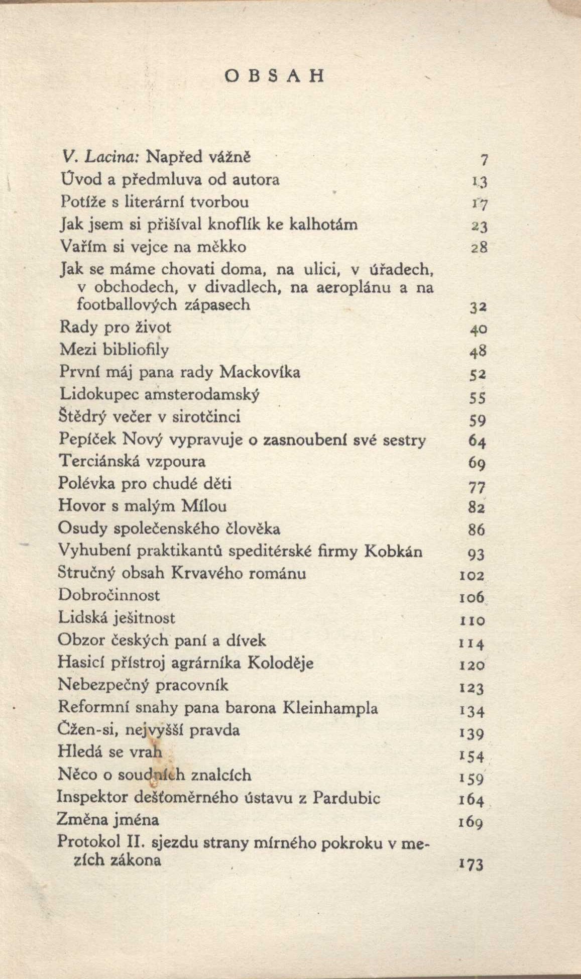 Názvové údaje Šťastný pokrytec : rozmarná povídka pro znavené lidi / Max Beerbohn ; s předmluvou X. Marcela Boulestina ; povídku z angličtiny a předmluvu z francouštiny přeložil Ervín Taussig Osobní jméno Beerbohm, Max, 1872-1956 (Autor) Další autoři Boulestin, X. Marcel (Xavier Marcel) 1878-1943 (Autor úvodu atd.) Taussig, Ervín, 1887-1914 (Překladatel) Korp. Rolnická tiskárna (tiskárna) (Tiskař) Nakladatel V Praze : Frant. Adámek, 1910 Výrobce Rolnická tiskárna) Rozsah 62 s. Klíčová slova anglická literatura * anglická próza * humorná próza * povídka Počet ex. 1, z toho volných 1 Druh dok. monografie Signatura C12a 4862 Názvové údaje Nejnovější český Galanthomme, čili, Krásochovník / Václav Čeněk Bendl, Jaroslav Hašek ; uspořádal a doslovem opatřil Karel Cvejn Osobní jméno Bendl Stránický, Václav Čeněk, 1832-1870 (Autor) Další autoři Hašek, Jaroslav, 1883-1923 (Autor) Cvejn, Karel, 1911-1986 (Sestavovatel, kompilátor) (Autor doslovu, tiráže atd.) Born, Adolf, 1930-2016 (Ilustrátor) Mlčoch, Zdeněk, 1921-1995 (Autor obálky) (Knižní grafik) Korp. Památník národního písemnictví (muzeum literatury) (Nakladatel, vydavatel) Spolek českých bibliofilů v Praze (Nakladatel, vydavatel) Jihočeské tiskárny (firma) (Tiskař) (Tiskař obrazu) Nakladatel Praha : Památník národního písemnictví pro Spolek českých bibliofilů, 1985 Výrobce Tábor : Jihočeské tiskárny, n. p. provoz 5 Rozsah 29 stran : ilustrace ; 25 cm Klíčová slova česká próza * čeští spisovatelé * humorná próza * satirická próza * pravidla chování * stol. 19.-20. * ilustrace * Born A. Počet ex. 3, z toho volných 3 Druh dok. monografie Signatura C12c 2202, C12c 4672, R&AHamanovi 1496 Názvové údaje The Humourist : a companion for the Christmas fireside / by W. H. Harrison ; embellished by eighty drawings, designed and executed by W. H. Brooke Osobní jméno Harrison, W. H. (William Henry) asi 1795-1878 (Autor) Další autoři Brooke, William Henry, 1772-1860 (Ilustrátor) Ackermann, Rudolph, 1764-1834 (Nakladatel, vydavatel) Moyes, James, -1838 (Tiskař) Nakladatel London : R. Ackermann, 1832 Výrobce (J. Moyes) Rozsah xii, 288 s. : il. Klíčová slova britská literatura * humor * humoristická literatura * humoristická próza * humorná próza * humorné povídky * humorné prózy Počet ex. 1, z toho volných 1 Druh dok. monografie Signatura KaG XXI C 54 Názvové údaje Paměti úctyhodné rodiny a jiné příběhy / Jaroslav Hašek ; ilustroval Jos. Lada Osobní jméno Hašek, Jaroslav, 1883-1923 (Autor) Další autoři Lada, Josef, 1887-1957 (Ilustrátor) Korp. Adolf Synek (nakladatelství) (Nakladatel, vydavatel) Nakladatel v Praze : Nákladem Adolfa Synka, 1925 Rozsah 255 s. : il. Klíčová slova česká literatura * povídky * humorná próza * humorné povídky * příběhy Počet ex. 1, z toho volných 1 Druh dok. monografie Signatura Hoffmeister 0056 Názvové údaje Škola humoru / Jaroslav Hašek Osobní jméno Hašek, Jaroslav, 1883-1923 (Autor) Další autoři Hůla, Břetislav, 1894-1964 (Sestavovatel, kompilátor) Muzika, František, 1900-1974 (Knižní grafik) Lacina, Václav, 1906-1993 (Autor úvodu atd.) Korp. Nakladatelství Svoboda (Nakladatel, vydavatel) (Tiskař) Nakladatel V Praze : Nakladatelství Svoboda, 1949 Rozsah 177 stran ; 18 cm Klíčová slova česká literatura * česká próza * Hašek J. * humorná próza * humoristická próza * humorné povídky Počet ex. 2, z toho volných 2 Druh dok. monografie Signatura VHB 0470, VZinková 0689 Názvové údaje Divoké povídky / Jiří Haussmann ; [s obálkou V.H. Brunnera] Osobní jméno Haussmann, Jiří, 1898-1923 (Autor) Další autoři Brunner, Vratislav Hugo, 1886-1928 (Autor obálky) Nakladatel Praha : Stanislav Minařík, 1922 Výrobce (Edvard Leschinger) Rozsah 87 s. Klíčová slova česká próza * humorná próza * povídky Počet ex. 1, z toho volných 0 Druh dok. monografie Signatura C12a 3819 Názvové údaje Otec Kondelík a ženich Vejvara : drobné příběhy ze života spořádané pražské rodiny / Ignát Herrmann Osobní jméno Herrmann, Ignát, 1854-1935 (Autor) Další autoři F. Topič (nakladatelství) (Nakladatel, vydavatel) Unie (tiskárna) (Tiskař) Nakladatel V Praze : F. Topič, 1927 Výrobce (Tiskem Unie) Rozsah 421 s. Klíčová slova česká literatura * česká próza * český román * humorný román * humoristický román * humorná próza * humoristická próza Počet ex. 1, z toho volných 1 Druh dok. monografie Signatura VHB 0497 Odkazy (1) - Monografie Názvové údaje Vrabec v hrsti : veselá kniha o kumštech a pakumštech s obrazy starých i nových malířů / Cassius ; [v úpravě grafika A. Chvály ; s obálkou O. Blažíčka jun.] Osobní jméno Kolman Cassius, Jaroslav, 1883-1951 (Autor) Další autoři Chvála, Alois, 1885-1973 (Knižní grafik) Blažíček, Oldřich, 1887-1953 (Autor obálky) Korp. Jednota umělců výtvarných (Nakladatel, vydavatel) Stiebling a Havelka (tiskárna) (Tiskař) Nakladatel V Praze : Vydala Jednota umělců výtvarných, 1934 Výrobce (Stiebling a Havelka) Rozsah 106 s. : il. Klíčová slova česká poezie * básně * citáty * humorná próza * čeští malíři * karikatury umělců * kreslený humor Počet ex. 2, z toho volných 2 Druh dok. monografie Signatura Hoffmeister 0010, Hoffmeister 0123