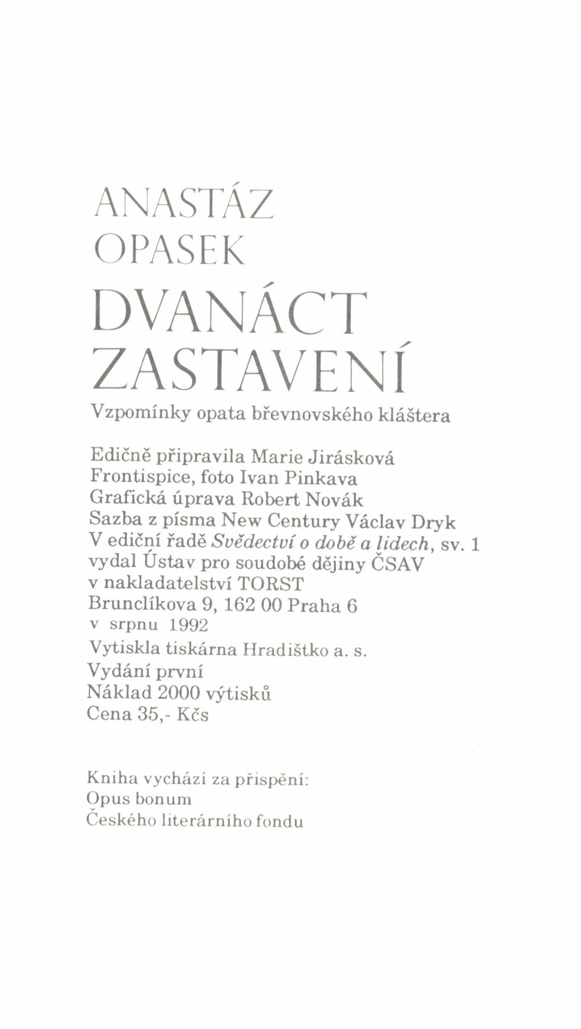Názvové údaje Máchova katolicita : příspěvek k řešení otázky Máchova baroku ... s třemi přílohami / Vilém Bitnar Osobní jméno Bitnar, Vilém, 1874-1948 (Autor) (Dedikátor) Další autoři Thon, Jan, 1886-1973 (Dedikant) Janský, Karel, 1890-1959 (Dedikant) Korp. Družina literární a umělecká (spolek) (Nakladatel, vydavatel) Lidové závody tiskařské a nakladatelské (Olomouc) (Tiskař) Nakladatel V Olomouci : Družina literární a umělecká, 1936 Výrobce Lidové závody tiskařské a nakladatelské Rozsah 43 stran, 2 nečíslované obrazové přílohy Osobní hesla Mácha, Karel Hynek, 1810-1836 - básník, beletrista, dramatik Klíčová slova katolictví * názory Počet ex. 3, z toho volných 3 Druh dok. monografie Signatura L 25 b 61, Thon 2301, M 3 f 12 Názvové údaje Boží zjevení, bible a lidský rozum / F.M. Dobiáš Osobní jméno Dobiáš, František Mrázek, 1907-1972 (Autor) Další autoři Valenta, Jaroslav, 1911-1942. Bible časnost a věčnost (Autor) Patočka, Jan, 1907-1977 (Dedikant) Korp. Oldřich Lejsek (Praha, Česko) (Tiskař) Nakladatel Praha : Vydavatelské oddělení KSML (YMCA), 1940 Výrobce Knihtiskárna O. Lejsek Rozsah 22 stran ; 23 cm Klíčová slova Bůh * boží existence * zjevení * Bible * náboženská víra * katolictví * protestantismus * pojednání Počet ex. 1, z toho volných 1 Druh dok. monografie Signatura Patočka 0340 Názvové údaje Naděje katolictví v zemích českých / Jaroslav Durych ; Naděje katolictví na konci tisíciletí / Václav Durych ; obálku navrhl a typograficky upravil František Štorm Osobní jméno Durych, Jaroslav, 1886-1962 (Autor) Další autoři Durych, Václav, 1930-2011 (Autor) Štorm, František, 1966- (Grafický technik) Nakladatel Brno : Vetus Via, 1996 Rozsah 147 s. Klíčová slova česká literatura * próza * studie * náboženství * stát * české země * katolictví * politika * stol. 20., 2. pol. Počet ex. 1, z toho volných 1 Druh dok. monografie Signatura C12a 513 Názvové údaje Katolický Kancyonál, k wzdělánj a roznjcenj skutečné, weřegné y domácný křestianské pobožnosti : obsahugicý rozličné pjsně rannj a wečernj na každý den ... k weřegným službám Božjm / složené ... od Kněze Tomásse Fryčage Osobní jméno Fryčaj, Tomáš, 1759-1839 (Autor) Další autoři Trassler, Josef Jiří, 1759-1816 (Nakladatel, vydavatel) Nakladatel W Brně : wytisstěná, v Jozefa Giřjho Traslera, knihtlačitele, a knihkupce, 1805 Rozsah [32], 479 s. ; 8° Klíčová slova teologie * náboženství * katolictví * katolická církev * kancionály Počet ex. 1, z toho volných 1 Druh dok. monografie Signatura L XII d 20 Názvové údaje Nebe a země kljč, čili, Wšesrozumitelnj začátkowé učenj o nebi a zemi / od Antonjna Wogtěcha Hnogka, litoměřického biskupského přjsežnjho notáře, děkana k wěnného města Mělnjka Osobní jméno Hnojek, Antonín Vojtěch, 1799-1866 (Autor) (Nakladatel, vydavatel) Další autoři Špinková, Anna, zemř. 1869 (Tiskař) Nakladatel W Praze : Hnojek A. V., 1843 Výrobce (Tiskem Anny owdowělé Špinkowé) Rozsah 156 s. ; 8° Klíčová slova česká literatura * naučná literatura * katolictví Počet ex. 1, z toho volných 1 Druh dok. monografie Signatura L XIX e 32 Názvové údaje Proč gsem Katoljkem? : slowo k sprostému katoljku, gakby z wjry swé počet dáti měl / od Jana Waleriana Jirsjka Osobní jméno Jirsík, Jan Valerian, 1798-1883 (Autor) Další autoři Tiskárna arcibiskupská (Tiskař) Dědictví Svatojanské (spolek) (Nakladatel, vydavatel) Nakladatel W Praze : Dědictwj Swatojanské, 1835 Výrobce (W knjžecj arcibiskupské knihtiskárně, řjzenjm Wáclawa Špinky) Rozsah 30 s. ; 17 cm Klíčová slova česká literatura * teologie * náboženství * katolictví * křesťanství * úvahy Počet ex. 1, z toho volných 1 Druh dok. monografie Signatura L I b 18 Názvové údaje Katolicismus a současný svět / Josef Karola Osobní jméno Karola, Josef E. (Autor) Další autoři Kalcovský, Antonín, 1929- (Autor obálky) Korp. Nakladatelství Svoboda (Nakladatel, vydavatel) Rudé právo (tiskárna, Praha) (Tiskař) Nakladatel Praha : Svoboda, 1982 Výrobce Rudé právo) Rozsah 202 s. ; 20 cm Klíčová slova náboženství * náboženská víra * náboženské vyznání * katolická víra * katolictví * katolíci * současný svět * studie Počet ex. 1, z toho volných 1 Druh dok. monografie Signatura F I 296 Názvové údaje Pjseň ke mssi swaté : z časopisu pro katolické duchowenstwo, II. swazku 1828 zwlásstě wyňatá / od Aloisia Klara ; přeloženo od Josefa K. Chmelenského Osobní jméno Klar, Aloys, 1763-1833 (Autor) Další autoři Chmelenský, Josef Krasoslav, 1800-1839 (Překladatel) Medau, Karel Vilém, 1791-1866 (Tiskař) Nakladatel W Praze : [s.n.], 1828 Výrobce Wytisstěno u Karla Wiljma Medaua) Rozsah 10 s. Klíčová slova česká literatura * písně * duchovní písně * katolictví Počet ex. 1, z toho volných 1 Druh dok. monografie Signatura L XVI b 84 Názvové údaje Dvanáct zastavení : Vzpomínky opata břevnovského kláštera / Anastáz Opasek ; k vydání pripravila Marie Jirásková ; Frontispice, foto Ivan Pinkava ; grafická úprava Robert Novák Osobní jméno Opasek, Anastáz, 1913-1999 (Autor) Další autoři Jirásková, Marie, 1938- (Editor) Pinkava, Ivan, 1961- (Fotograf) Novák, Robert V., 1962- (Grafický technik) Korp. Ústav pro soudobé dějiny AV ČR (vědecký ústav) (Nakladatel, vydavatel) Nakladatelství Torst (Nakladatel, vydavatel) Nakladatel Praha : Torst, 1992 Rozsah 322 stran : fotografie ; 20 cm Osobní hesla Opasek, Anastáz, 1913-1999 - katolický kněz, opat, básník, redaktor Klíčová slova česká literatura * próza * memoáry * břevnovská komunita * broumovská komunita * benediktinský řád * katolictví Počet ex. 2, z toho volných 2 Druh dok. monografie Signatura M 215 e 32, JVladislav 773