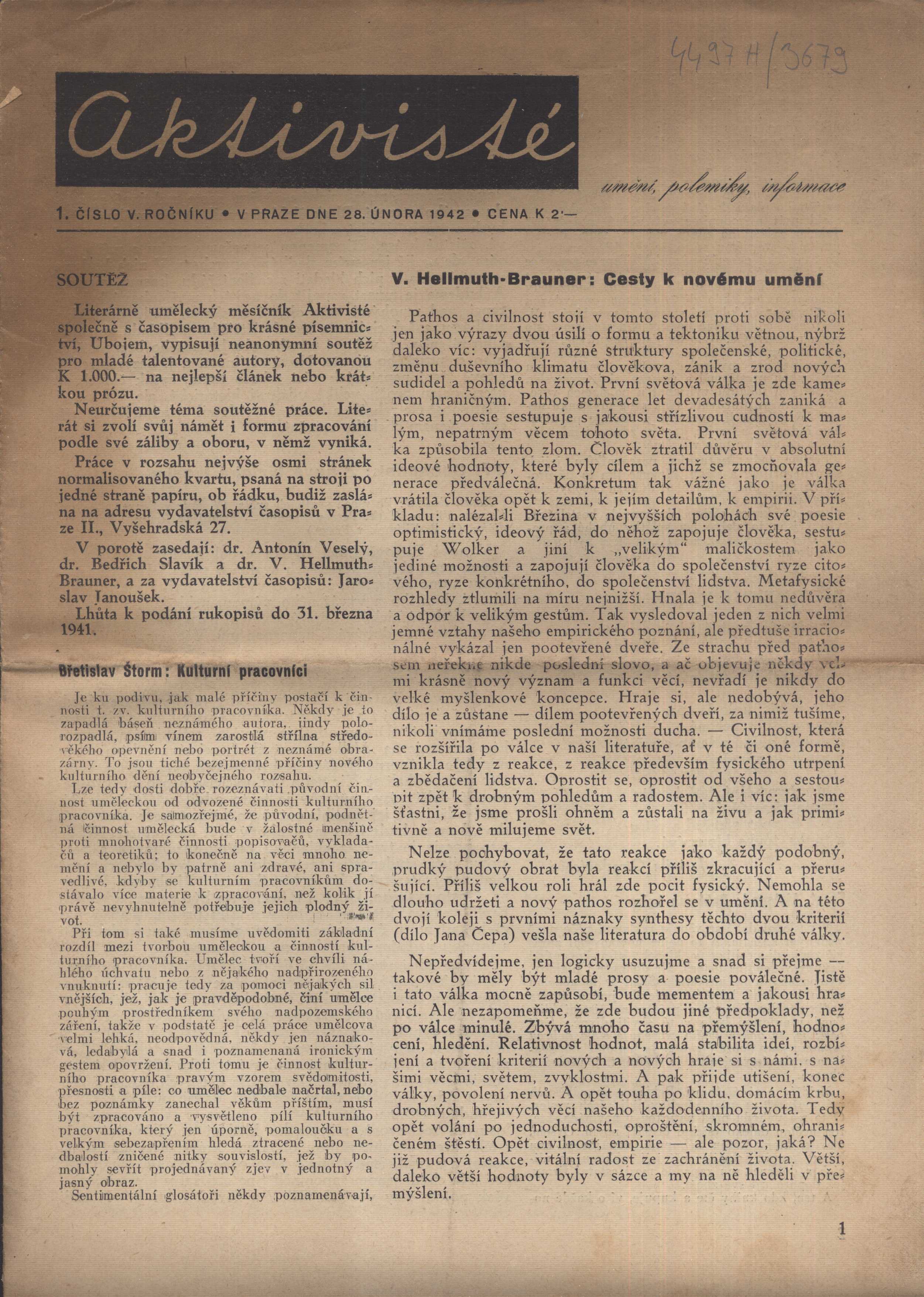 Názvové údaje The writer in the world : Nimrod awards 24 / Sherry Fairchok ... [et al.] Osobní jméno Fairchok, Sherry, 1962- (Autor) Nakladatel Tulsa : University of Tulsa, 2002 Rozsah 195 s. Klíčová slova světová literatura * světová próza * světová poezie * literární časopis Počet ex. 1, z toho volných 1 Druh dok. monografie Signatura BVolkova 0404 Názvové údaje Nicht nur Kafkas Freundin Milena Jesenskás Lebenslauf : eine Literaturstudie / Olga Klauber Osobní jméno Klauber, Olga (Autor) Nakladatel Uppsala : Uppsala universitet, 1992 Rozsah 94 s. Osobní hesla Jesenská, Milena, 1896-1944 - novinářka, redaktorka, publicistka, překladatelka Klíčová slova švédská literatura * literární časopis * Jesenská M. * život * dílo * Československo * politická situace * stol.20., léta 20.-40. Počet ex. 1, z toho volných 1 Druh dok. monografie Signatura C12b 4650 Názvové údaje Akzente. [Auf der abgewandten Seite - über Ladislav Klíma] : Zeitschrift für Literatur : Sonderdruck / [Milan Nápravník]. 5/71, October 1971 Osobní jméno Nápravník, Milan, 1931-2017 (Autor) Nakladatel München : Carl Hanser, 1971 Rozsah S. 435-444 Osobní hesla Klíma, Ladislav, 1878-1928 - filosof, prozaik, básník a dramaturg Klíčová slova česká literatura * překlad * literární časopis * separát * osobnosti * filozofie * Klíma L. * stol. 19.-20. * r. 1971 Počet ex. 1, z toho volných 1 Druh dok. separáty Signatura C12b 12480 Názvové údaje Poesie 1931-1934 : historie jednoho časopisu / Drahomír Šajtar ; [obálka a grafická úprava Svatoslav Böhm] Osobní jméno Šajtar, Drahomír, 1922-2009 (Autor) Další autoři Böhm, Svatoslav, 1934-2023 (Autor obálky) Nakladatel Opava : OPTYS, 1995 Rozsah 131 s., [13] s. obr. příl. : il., portréty Klíčová slova literární věda * Poezie (časopis) * literární časopis * historie * Strakoš J. * r. 1931-1934 Počet ex. 2, z toho volných 2 Druh dok. monografie Signatura C12b 165, C12b 14724 Názvové údaje ACME : Annali della Facoltă di Lettere e Filosofia dell' Universiă degli Studi di Milano. Vol. <XLIV=44>, fasc. I=01, Gennaio-Aprile/1991 Nakladatel Milano : Universită degli Studi di Milano, 1991 Rozsah 61 s. Klíčová slova italská literatura * literární časopis * filozofický časopis Počet ex. 1, z toho volných 1 Druh dok. monografie Signatura C12c 1234 Názvové údaje Die Aktion : Wochenschrift für Politik, Literatur, Kunst Další autoři Konůpek, Jan, 1883-1950 (Dřívější majitel) Richter, Hans, 1888-1976 (Ilustrátor) Pfemfert, Franz, 1879-1954 (Nakladatel, vydavatel) (Editor) Grimm, Antonín, 1902-1981 (Dárce) (Dřívější majitel) Haag, F. E. (Tiskař) Hirsch, Karl Jakob, 1892-1952 (Ilustrátor) Morgner, Wilhelm, 1891-1917 (Ilustrátor) Schiele, Egon, 1890-1918 (Ilustrátor) Tappert, Georg, 1880-1957 (Ilustrátor) Mühlen, Else von zur (Ilustrátor) Wetzel, Ines, 1878-1940 (Ilustrátor) Korp. Verlag Die Aktion (Berlin, Německo) (Nakladatel, vydavatel) Roč., číslo Ročník 6, číslo 1-48, 51-52, 1916 Nakladatel Berlin-Wilmersdorf : Verlag Die Aktion, 1916 Výrobce Melle in Hannover : F. E. Haag Rozsah 712 sloupců : ilustrace ; 30 cm Osobní hesla Däubler, Theodor, 1876-1934 - německý básník a umělecký teoretik * Derain, André, 1880-1954 - francouzský malíř, grafik a sochař * Adler, Paul, 1878-1946 - českoněmecký spisovatel * Morgner, Wilhelm, 1891-1917 - německý výtvarník * Schiele, Egon, 1890-1918 - rakouský výtvarník * Tappert, Georg, 1880-1957 - německý výtvarník * Mühlen, Else von zur - německá výtvarnice * Werfel, Franz, 1890-1945 - prozaik, básník, dramatik * Wetzel, Ines, 1878-1940 - německá malířka a grafička Klíčová slova česká literatura * německá literatura * evropská literatura * světová literatura * umělecká revue * literární časopis * expresionismus * literární expresionismus * moderní umění * grafika * evropská grafika * poezie * próza * studie * eseje * esejistické texty * úvahy * překlady * 1. světová válka * r. 1916 * futurismus * abstrakce * abstraktní umění * moderna Nadřízená jednotka Die Aktion Počet ex. 1, z toho volných 1 Druh dok. PERIODIKA - Svázaný ročník periodika Signatura KaG LXI 16 Názvové údaje Aktivisté : umění, polemiky, informace Další autoři Janoušek, Jaroslav, 1906-1993 (Editor) Roč., číslo Ročník 5., Číslo 1-5, 1942 Nakladatel Praha : Nákl. Liter. uměl. kruhu Aktivisté, 1942 Rozsah 39 stran : ilustrace Klíčová slova česká literatura * české časopisy * literární časopis * literární časopisy * r. 1942 Počet ex. 1, z toho volných 1 Druh dok. periodika Signatura VHB 4497 Názvové údaje Alföld : Irodalmi és müvészeti folyóirat. Évf. XV=15., sz 7/1964 Nakladatel Debrecen : b.n., 1964 Rozsah S. 587-672 Klíčová slova maďarská literatura * literární časopis * česká literatura * básně * r. 1964 Počet ex. 2, z toho volných 2 Druh dok. PERIODIKA - Souborný záznam periodika Signatura C12c 965, C12c 965a Názvové údaje Alternative : zeitschrift für Literatur und Diskussion. Tschechischer Strukturalismus Ergebnisse und Einwände Roč., číslo Jahrgang 14, Heft 80, 1971 Nakladatel Berlin : Alternative Verlag, 1971 Rozsah s. 165-215 : il. Klíčová slova německá literatura * literární věda * český strukturalismus * r. 1971 * literární časopis Nadřízená jednotka Alternative Počet ex. 1, z toho volných 1 Druh dok. PERIODIKA - Přijatá čísla Signatura MUK 1537 Názvové údaje Alternative : Zeitschrift für Literatur und Diskussion Nakladatel Berlin : Alternative Verlag, 1958-1982 Rozsah svazky Klíčová slova literatura * literární věda * literární časopis * německé časopisy Druh dok. PERIODIKA - Souborný záznam periodika Odkazy (2) - PERIODIKA - Přijatá čísla