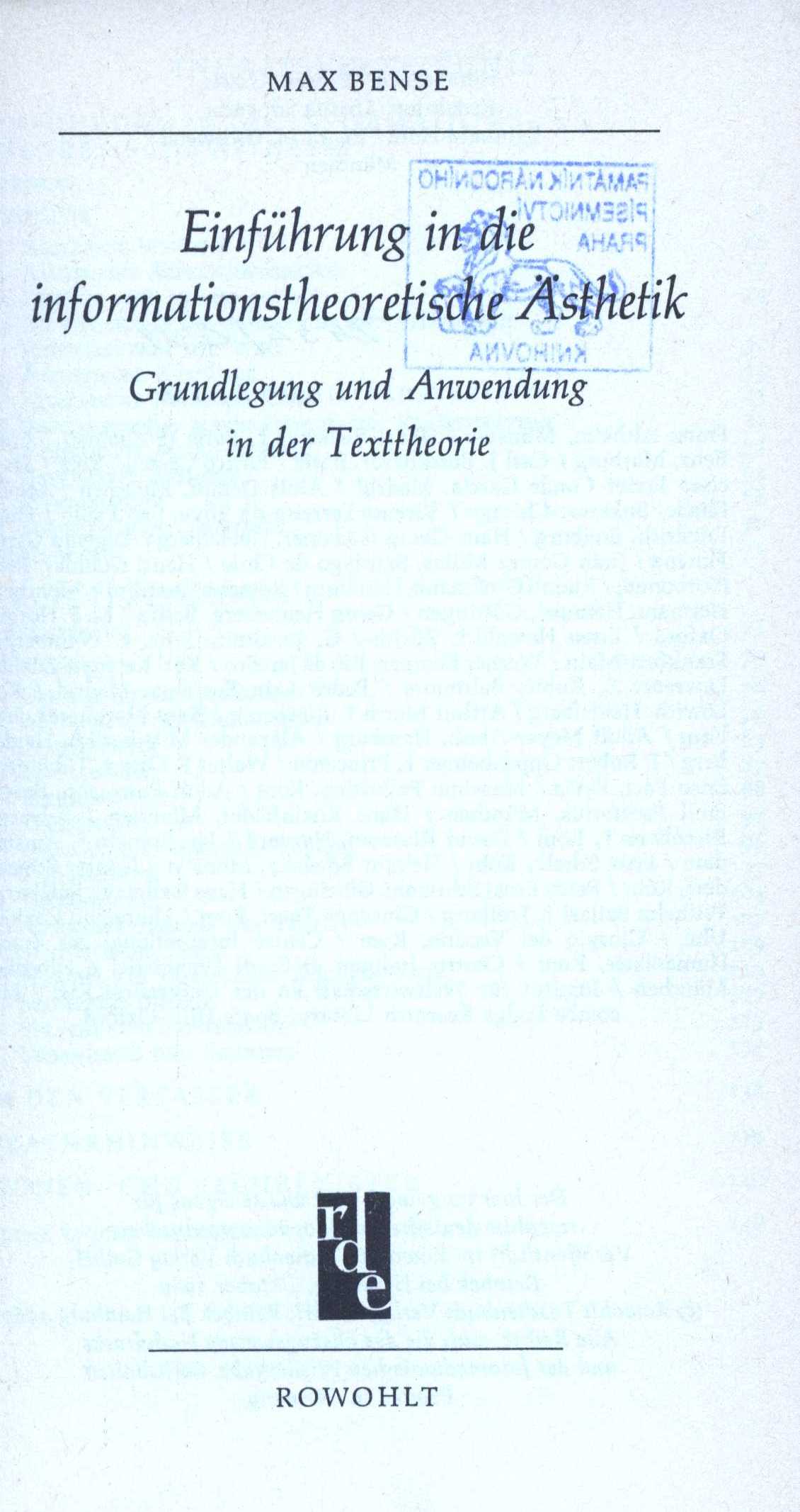 Názvové údaje Odkrývam karty / Louis Aragon ; z francouzského originálu preložil a poznámky napísal Michal Bartko Osobní jméno Aragon, Louis, 1897-1982 (Autor) Další autoři Bartko, Michal, 1923- (Překladatel) Korp. Slovenské vydavateľstvo krásnej literatúry (Nakladatel, vydavatel) Nakladatel Bratislava : Slovenské vydavateľstvo krásnej literatúry, 1961 Rozsah 247 stran Klíčová slova francouzská literatura * literární teorie * pojednání Počet ex. 1, z toho volných 1 Druh dok. monografie Signatura V VII e ? 15 Názvové údaje Aristotelova kniha O básnictví / kterou přeložil a vysvětlivkami opatřil P.J. Vychodil Autor Aristotelés, 384-322 př. Kr. (Autor) Další autoři Vychodil, Pavel Julius, 1862-1938 (Překladatel) (Autor komentáře textu) (Nakladatel, vydavatel) Korp. Karel Winiker (firma) (Tiskař) Nakladatel V Brně : P.J. Vychodil, 1892 Výrobce Tiskem Karla Winikera Rozsah 58 stran ; 20 cm Klíčová slova básnická tvorba * poezie * antická poezie * literární estetika * pojednání * filozofické pojednání * literární teorie Počet ex. 2, z toho volných 2 Druh dok. monografie Signatura VMartínek 0303, P 19 a 34 Názvové údaje Rukověť humanitních disciplín / Bohuslav Balbín ; k vydání připravila, komentářem a poznámkami opatřila a z latinského originálu s použitím překladu Bohumila Ryby přeložila Olga Spevak = Verisimilia humaniorum disciplinarum / Bohuslai Balbini ; editit, commentario notisque instruxit et in linguam Bohemicam post Bohumil Ryba vertit Olga Spevak Osobní jméno Balbín, Bohuslav, 1621-1688 (Autor) Další autoři Spěváková, Olga, 1969- (Překladatel) (Editor) Ryba, Bohumil, 1900-1980 (Překladatel) Korp. Nadace pro dějiny kultury ve střední Evropě Unifikovaný název Verisimilia humaniorum disciplinarum. Česky & Latinsky Nakladatel Praha : KLP, 2006 Rozsah xxxviii, 696 s. : il. Osobní hesla Balbín, Bohuslav, 1621-1688 - S.J., historik a básník Klíčová slova humanitní vzdělávání * středoškolské studium * literární teorie * dějepis * Česko * stol. 17. * pojednání * dvojjazyčné vydání * komentované vydání * kritické vydání Počet ex. 1, z toho volných 1 Druh dok. monografie Signatura C12c 3228 Názvové údaje Pis'ma o literature = Dopisy o literatuře / Al'fred Ljudvigovič Bém ; Soubor statí A. L. Béma uspoř., edič. připr. a předml. uvedly Miluša Bubeníková a Lenka Vachalovská ; Pozn. aparát připr. Ljubov Běloševská, Miluša Bubeníková Osobní jméno Bem, Al‘fred Ljudvigovič, 1886-1945 (Autor) Další autoři Bubeníková, Miluša, 1957- (Editor) Vachalovská, Lenka (Editor) Běloševská, Ljubov, 1946-2013 (Autor komentáře) Bubeníková, Miluša, 1957- (Autor komentáře) Bubeníková, Miluša, 1957- (Autor úvodu atd.) Vachalovská, Lenka (Autor úvodu atd.) Nakladatel Praha : Euroslavica, 1996 Rozsah 357 s., obr Osobní hesla Bem, Al‘fred Ljudvigovič, 1886-1945 - lektor ruštiny, literární historik * Bem, Al‘fred Ljudvigovič, 1886-1945 - lektor ruštiny, literární historik * Bem, Al‘fred Ljudvigovič, 1886-1945 - lektor ruštiny, literární historik Klíčová slova ruská literatura * sborník * literární teorie * Bem A. L. * ruská emigrace * stol. 20. Počet ex. 1, z toho volných 1 Druh dok. monografie Signatura C12c 594 Názvové údaje Einführung in die informationstheoretische Ästhetik : Grundlegung und Anwendung in der Texttheorie / Max Bense Osobní jméno Bense, Max, 1910-1990 (Autor) Nakladatel Reinbek bei Hamburg : Rowohlt, c1969 Rozsah 147 s. Klíčová slova literární teorie * literární texty * skladba (textu) * literární estetika * teorie tetxů * studie Počet ex. 1, z toho volných 1 Druh dok. monografie Signatura C12b 13397 Názvové údaje Krátký úvod do literární teorie / Jonathan Culler ; [přeložil Jiří Bareš ; obálka a osnova grafické úpravy Boris Mysliveček] Osobní jméno Culler, Jonathan D., 1944- (Autor) Další autoři Bareš, Jiří, 1969- (Překladatel) Mysliveček, Boris, 1948- (Knižní grafik) (Autor obálky) Korp. Host (nakladatelství) (Nakladatel, vydavatel) Finidr (tiskárna) (Tiskař) Nakladatel Brno : Host - vydavatelství, 2015 Výrobce Finidr) Rozsah 192 s. : il. ; 21 cm Klíčová slova literární teorie * světová literatura * současná literatura * literární směry * literární studie Počet ex. 1, z toho volných 1 Druh dok. monografie Signatura C12b 15955 Názvové údaje Studie k teorii fikce / Jonathan Culler ; [z anglických originálů ... přeložili Jiří Bareš ... et al. ; komentář o autorovi napsali Jiří Hrabal a Ondřej Sládek] Osobní jméno Culler, Jonathan D., 1944- (Autor) Další autoři Bareš, Jiří, 1969- (Překladatel) Hrabal, Jiří, 1973- (Autor komentáře textu) Sládek, Ondřej, 1976- (Autor komentáře textu) Nakladatel Brno ; Praha : Ústav pro českou literaturu AV ČR, 2005 Rozsah 102 s. ; 19 cm Klíčová slova fikce * vyprávění * filozofie literatury * literární vnímání * literární teorie * naratologické teorie * překlad Počet ex. 1, z toho volných 1 Druh dok. monografie Signatura C12b 9474