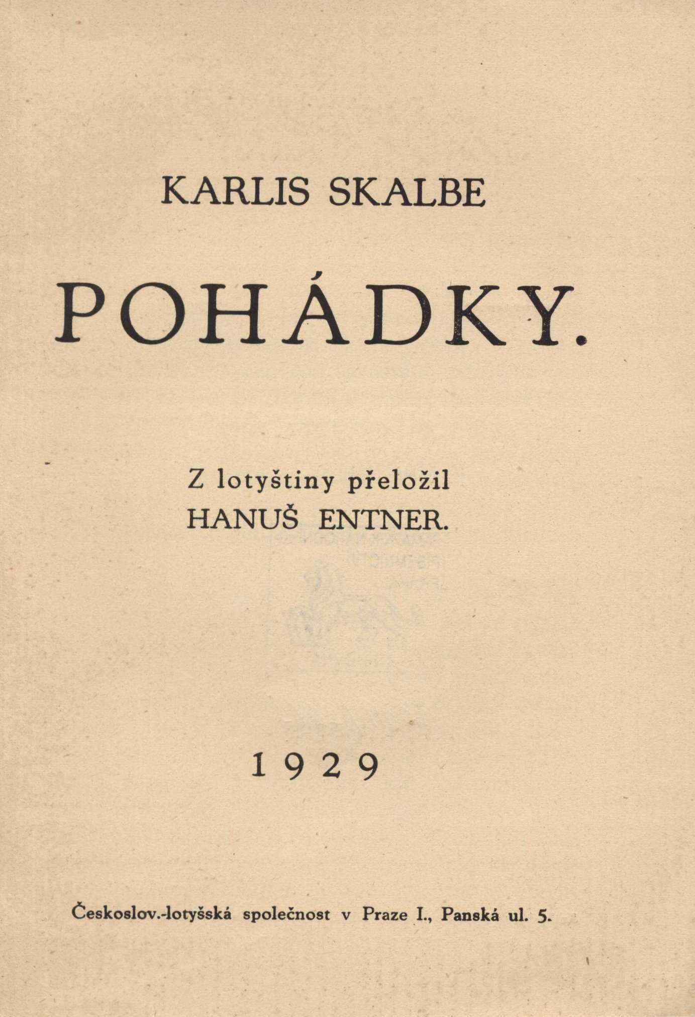 Názvové údaje Hořící ostrov / Jánis Akuraters ; z lotyšských originálů Kalpa zéna vasata a Degoša sala přeložil Vojtěch Gaja ; doslov napsal Radegast Parolek Osobní jméno Akurāters, Jānis, 1876-1937 (Autor) Další autoři Gaja, Vojtěch, 1912-1992 (Překladatel) Parolek, Radegast, 1920-2019 (Autor úvodu atd.) Korp. Nakladatelství Svoboda (Nakladatel, vydavatel) Rudé právo (tiskárna, Praha) (Tiskař) Nakladatel Praha : Svoboda, 1974 : Výrobce Rudé právo Rozsah 132 stran Klíčová slova lotyšská literatura * prózy * novely Počet ex. 1, z toho volných 1 Druh dok. monografie Signatura P 48 c 128 Názvové údaje Lotyšské povídky / Rudolfs Blaumanis ; z lotyštiny přeložil O. S. Vetti Osobní jméno Blaumanis, Rūdolfs, 1863-1908 (Autor) Další autoři Vetti, O. S., 1861-1942 (Překladatel) (Autor úvodu atd.) Korp. J. Otto (nakladatelství) (Nakladatel, vydavatel) Unie (tiskárna) (Tiskař) Nakladatel V Praze : J. Otto, [1910] Výrobce (Tiskem "Unie") Rozsah 149 s. Klíčová slova lotyšská literatura * próza Počet ex. 1, z toho volných 1 Druh dok. monografie Signatura VHB 1681 Názvové údaje Dívčí souboj / Cecilija Dinerová ; [z lotyšského originálu ... přeložil Vojtěch Gaja ; ilustrace Ervín Urban ; obálku s použitím kreseb ilustrátora a vazbu navrhl Milan Kopřiva] Osobní jméno Dinere, Cecilija, 1919-1996 (Autor) Další autoři Gaja, Vojtěch, 1912-1992 (Překladatel) Urban, Ervín, 1931-1997 (Ilustrátor) Kopřiva, Milan, 1929-1997 (Autor obálky) (Výtvarník vazby) Korp. Mladá fronta (nakladatelství) (Nakladatel, vydavatel) Nakladatel Praha : Mladá fronta, 1974 Výrobce (Mír 6) Rozsah 172 s., [7] obr. příl. ; 8° Klíčová slova lotyšská literatura * próza * román * literatura pro dívky Počet ex. 1, z toho volných 1 Druh dok. monografie Signatura P 54 d 165 Názvové údaje Dvě lotyšské povídky : ze školského života před válkou / Jānis Poruks Osobní jméno Poruks, Jánis, 1871-1911 (Autor) Další autoři Hellmuthová, Marta, 1917-1988 (Dřívější majitel) (Dedikant) Korp. Československo-lotyšská společnost (Nakladatel, vydavatel) Nakladatel V Praze : Československo-lotyšská společnost, 1937 Rozsah 110 s. Klíčová slova lotyšská literatura * povídky * próza Počet ex. 1, z toho volných 1 Druh dok. monografie Signatura VHB 1682 Názvové údaje 12 mēneši / J. Raina ; [ilustērjusi Z. Are] Osobní jméno Rainis, Jānis, 1865-1929 (Autor) Nakladatel Riga : Latvijas Bernu Draugu Biedribas Izdevums, 1927 Výrobce (Schuakenburga litografija) Klíčová slova lotyšská literatura * poezie pro děti * říkanky Počet ex. 1, z toho volných 1 Druh dok. monografie Signatura VMartínek 0861 Názvové údaje Daleké ozvěny / Jánis Rainis ; [z lotyšského originálu vybral,]přeložil [a doslov napsal] Radagast Parolek ; vazba a kresby Sylvie Vodákové ; graficky upravil František Plaček] Osobní jméno Rainis, Jānis, 1865-1929 (Autor) Další autoři Parolek, Radegast, 1920-2019 (Sestavovatel, kompilátor) Vodáková, Sylvie, 1926- (Výtvarník vazby) (Ilustrátor) Plaček, František (Knižní grafik) Korp. Mladá fronta (nakladatelství) (Nakladatel, vydavatel) Stráž, tiskařské závody (Tiskař) Nakladatel Praha : Mladá fronta, 1982 Výrobce Stráž) Rozsah 141 s. ; 15 cm Osobní hesla Rainis, Jānis, 1865-1929 - lotyšský básník Klíčová slova lotyšská literatura * výbor básní Počet ex. 2, z toho volných 2 Druh dok. monografie Signatura RSzpuk 0630, P 142 F 81 Názvové údaje Pohádky / Karlis Skalbe ; z lotyštiny přeložil Hanuš Enter Osobní jméno Skalbe, Kárlis, 1879-1945 (Autor) Další autoři Entner, Hanuš, 1902-1986 (Překladatel) (Dedikátor) Korp. Československo-lotyšská společnost (Nakladatel, vydavatel) Nakladatel V Praze : Českoslov.-lotyšská společnost, 1929 Výrobce Knihtiskárna Fechtner a spol., Rozsah 32 stran ; 17 cm Klíčová slova lotyšská literatura * pohádky Počet ex. 1, z toho volných 1 Druh dok. monografie Signatura KaG XXI D 32 Názvové údaje Pohádky / Karlis Skalbe ; z lotyštiny přeložil Hanuš Enter Osobní jméno Skalbe, Kárlis, 1879-1945 (Autor) Další autoři Entner, Hanuš, 1902-1986 (Překladatel) Korp. Československo-lotyšská společnost (Nakladatel, vydavatel) Nakladatel V Praze : Českoslov.-lotyšská společnost, 1929 Výrobce Praha Knihtiskárna Fechtner a spol. 1929 Rozsah 32 stran ; 17 cm Klíčová slova lotyšská literatura * pohádky Počet ex. 2, z toho volných 2 Druh dok. monografie Signatura VMartínek 1371, KaG XXI D 32 Názvové údaje Čechu lirika : antoloģija / atdzejojusi Marta Grimma Osobní jméno Grimma, Marta, 1901-1983 (Sestavovatel, kompilátor) (Překladatel) Další autoři Valtera un Rapas (nakladatelství) (Nakladatel, vydavatel) Nakladatel Rīgā : Valtera un Rapas a/s., ģenerālkommisijā, 1932 Rozsah 160 stran, 2 nečíslované listy obrazové přílohy : portréty ; 21 cm Klíčová slova lotyšská literatura * čeští spisovatelé * čeští básníci * překlady básní * antologie * r. 1932 Počet ex. 1, z toho volných 1 Druh dok. monografie Signatura AHO 0403