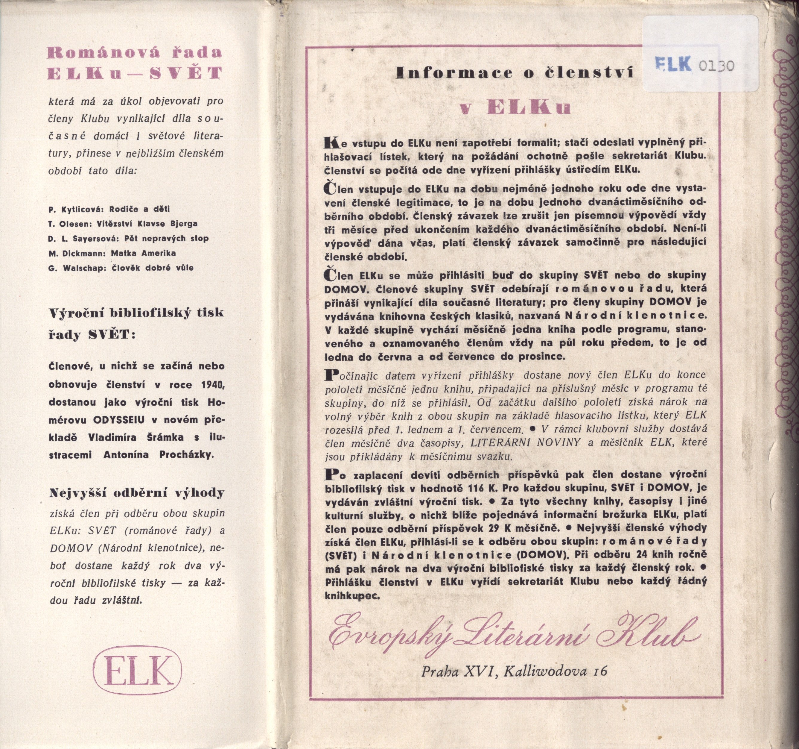 Názvové údaje Z obhájcovy aktovky : vzpomínky - dokumenty o lidech dobrých a zlých / Otakar Bas Osobní jméno Bas, Otakar, 1878-1939 (Autor) Další autoři Edvard Beaufort (nakladatelství a tiskárna) (Nakladatel, vydavatel) Nakladatel Praha : Nákladem E. Beauforta, 1935 Rozsah 122 s. : il. Osobní hesla Bas, Otakar, 1878-1939 - český právník a politik Klíčová slova česká literatura * autobiografické vzpomínky * biografické vzpomínky * vzpomínka * vzpomínková literatura * vzpomínky * memoárová literatura * memoáry * právníci * advokáti Počet ex. 1, z toho volných 1 Druh dok. monografie Signatura VHB 0251 Názvové údaje Mein Leben / Wilhelm von Bode. Band 1. Osobní jméno Bode, Wilhelm, 1862-1922 (Autor) Další autoři Hermann Reckendorf (nakladatelství) (Nakladatel, vydavatel) Berliner Werbedienst (tiskárna) (Tiskař) Nakladatel Berlin : Verlag Hermann Reckendorf, 1930 Výrobce (Werbedienst) Rozsah 205 s., [15] l. obr. příl. : il. Osobní hesla Bode, Wilhelm, 1862-1922 - německý spisovatel, publicista, učitel Klíčová slova německá literatura * dějiny umění * memoárová literatura * autobiografická literatura * autobiografické dílo * autobiografie * životopis Počet ex. 1, z toho volných 1 Druh dok. monografie Signatura KaG IV A 14a Názvové údaje Mein Leben / Wilhelm von Bode. Band 2. Osobní jméno Bode, Wilhelm, 1862-1922 (Autor) Další autoři Hermann Reckendorf (nakladatelství) (Nakladatel, vydavatel) Berliner Werbedienst (tiskárna) (Tiskař) Nakladatel Berlin : Verlag Hermann Reckendorf, 1930 Výrobce (Werbedienst) Rozsah 264 s., [16] l. obr. příl. : il. Osobní hesla Bode, Wilhelm, 1862-1922 - německý spisovatel, publicista, učitel Klíčová slova německá literatura * dějiny umění * memoárová literatura * autobiografická literatura * autobiografické dílo * autobiografie * životopis Počet ex. 1, z toho volných 1 Druh dok. monografie Signatura KaG IV A 14b Názvové údaje Divadelní radosti i starosti : vzpomínky / Frant. Bohuslav Osobní jméno Bohuslav, František, 1882-1953 (Autor) (Nakladatel, vydavatel) Další autoři Dr. Ed. Grégr a syn (nakladatelství, tiskárna) (Tiskař) Nakladatel V Praze : [F. Bohuslav], 1925 Výrobce (Tiskem Dr. Ed. Grégra a syna) Rozsah 95 s. Osobní hesla Bohuslav, František, 1882-1953 - herec, básník, dramatik Klíčová slova česká literatura * divadlo * české divadlo * české dramatické umění * herci * vzpomínky * memoárová literatura Počet ex. 1, z toho volných 1 Druh dok. monografie Signatura KaG XLVIII D3 183 Názvové údaje Život a dílo / Albín Bráf ; vydal Josef Gruber. díl první, Paměti Osobní jméno Bráf, Albín, 1851-1912 (Autor) Další autoři Gruber, Josef, 1865-1925 (Editor) Korp. Vesmír (nakladatelství) (Nakladatel, vydavatel) Albert Malíř (tiskárna a nakladatelství) (Tiskař) Nakladatel V Praze-Karlíně : Vesmír, 1922 Výrobce (Tiskem Alberta Malíře) Rozsah [8], 225, [3] s., [1] list obr. příl. : il. Osobní hesla Bráf, Albín, 1851-1912 - politik, novinář Klíčová slova česká literatura * česká politika * Rakousko-Uherská monarchie * paměti * vzpomínky * memoárová literatura * memoáry * stol. 19., 2. pol. Počet ex. 1, z toho volných 1 Druh dok. monografie Signatura KaG XLVII B2 61a Názvové údaje Z mých ředitelských vzpomínek / vypravuje Vendelín Budil. díl 1. Osobní jméno Budil, Vendelín, 1847-1928 (Autor) Další autoři Český čtenář (nakladatelství) (Nakladatel, vydavatel) Pražská akciová tiskárna (Tiskař) Nakladatel [S. l.] : Český čtenář, 1920 Výrobce (Tisk Pražské akciové tiskárny) Rozsah 193 s., [1] l. obr. příl. : il. Klíčová slova česká literatura * vzpomínková próza * vzpomínky * divadelní vzpomínky * paměti * memoárová literatura * memoáry * české divadlo Počet ex. 1, z toho volných 1 Druh dok. monografie Signatura KaG XV C2 161/1 Názvové údaje Z mých ředitelských vzpomínek / vypravuje Vendelín Budil. díl 2. Osobní jméno Budil, Vendelín, 1847-1928 (Autor) Další autoři Český čtenář (nakladatelství) (Nakladatel, vydavatel) Pražská akciová tiskárna (Tiskař) Nakladatel [S. l.] : Český čtenář, 1920 Výrobce (Tisk Pražské akciové tiskárny) Rozsah s. 193-304 Osobní hesla Budil, Vendelín, 1847-1928 - český divadelní režisér a herec Klíčová slova česká literatura * vzpomínková próza * vzpomínky * divadelní vzpomínky * paměti * memoárová literatura * memoáry * české divadlo Počet ex. 1, z toho volných 1 Druh dok. monografie Signatura KaG XV C2 161/2 Názvové údaje Památník bratří Burianů / E. F. Burian ; [typografická úprava a obálka Karla Teigeho] Osobní jméno Burian, Emil František, 1904-1959 (Autor) (Dedikátor) Další autoři Teige, Karel, 1900-1951 (Ilustrátor) (Grafický technik) Mařánek, Jiří, 1891-1959 (Autor úvodu atd.) Nezval, Vítězslav, 1900-1958 (Dedikant) Mukařovský, Jan, 1891-1975 (Dřívější majitel) Korp. Odeon, Jan Fromek (Praha) (Nakladatel, vydavatel) Nakladatel Praha : Odeon, Jan Fromek, 1929 Výrobce (vytiskla knihtiskárna Jaroslava Hoffmanna v Praze - Karlíně) Rozsah 100, [4]s., [20] l. obr. příl. : il. ; 18,3 cm Osobní hesla Burian, Karel, 1870-1924 - operní pěvec, překladatel libret, memoárová literatura * Burian, Emil František, 1904-1959 - divadelní a filmový režisér, dramatik, hudební skladatel, spisovatel a publicista Klíčová slova česká literatura * próza * životopisné vzpomínky * Burian K. * Burian E. Počet ex. 3, z toho volných 3 Druh dok. monografie Signatura MUK 152, LK P 65 d 98, Nezval 0175 Názvové údaje L'Art d'être pauvre / Boni de Castellane Osobní jméno Castellane, Boniface de, 1867-1932 (Autor) Další autoři Dongen, Kees van, 1877-1968 (Ilustrátor) Korp. Georges Crès et Cie (Paris, Francie) (Nakladatel, vydavatel) Imprimerie Félix Lainé (tiskárna) (Tiskař) Nakladatel Paris