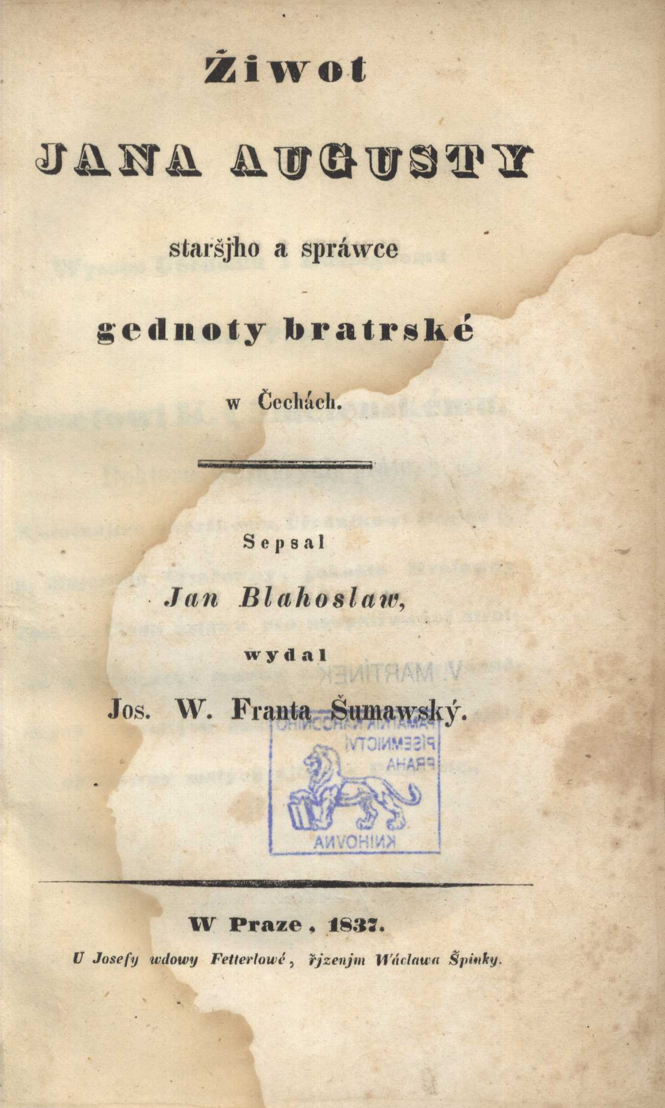 Názvové údaje Soudobá Francie : studie sociologická / Edvard Beneš ; [graficky vyzdobil a upravil Karel Svolinský ; doslovem opatřil E. Kvasnička] Osobní jméno Beneš, Edvard, 1884-1948 (Autor) Další autoři Svolinský, Karel, 1896-1986 (Grafický technik) Kvasnička, Eduard, 1888-1961 (Autor doslovu, tiráže atd.) Korp. Frant. Bartoš (tiskárna) (Nakladatel, vydavatel) Nakladatel Přerov : F. Bartoš ... [et al.], 1937 Výrobce (Fr. Bartoš) Rozsah 51, [1] s. ; 4° Klíčová slova Francie * sociologické studie * náboženské poměry * stol. 20., léta 10. Počet ex. 1, z toho volných 1 Druh dok. monografie Signatura C12c 1431 Názvové údaje Žiwot Jana Augusty staršjho a spráwce gednoty bratrské w Čechách / sepsal Jan Blahoslaw ; wydal Jos. W. Franta Šumawský Osobní jméno Blahoslav, Jan, 1523-1571 (Autor) Další autoři Bílek, Jakub, 1516-1581 (Autor) Franta Šumavský, Josef, 1796-1857 (Editor) Vetterlová z Wildenbrunnu, Josefa, činná 1819-1838 (Nakladatel, vydavatel) Špinka, Václav, 1797-1842 (Nakladatel, vydavatel) Nakladatel W Praze : U Josefy wdowy Fetterlowé : řjzenjm Wáclawa Špinky, 1837 Rozsah xii, 124 s. ; 8° Osobní hesla Augusta, Jan, 1500-1572 - biskup a teolog Jednoty bratrské, náboženský spisovatel Klíčová slova Jednota bratrská * protestantští teologové * české země * náboženské poměry * stol. 16. * biografie Počet ex. 2, z toho volných 2 Druh dok. monografie Signatura L XVII d 35, VMartínek 1132 Názvové údaje "Jsem disgustován-" : vzájemná korespondence Sigismunda Ludvíka Boušky a Karla Dostála-Lutinova / [rukopis připravil Oldřich Svozil ; editor, preface a návrh obálky Pavel Marek ; grafická úprava Ivana Koláčková] Osobní jméno Bouška, Sigismund, 1867-1942 (Autor) Další autoři Dostál-Lutinov, Karel, 1871-1923 (Autor) Svozil, Oldřich, 1906-1984 (Autor úvodu atd.) Marek, Pavel, 1949- (Editor) (Autor obálky) Koláčková, Ivana (Knižní grafik) Nakladatel Olomouc : Katedra politologie a evropských studií Filozofické fakulty Univerzity Palackého v Olomouci ; Rosice : Gloria, 2002 Rozsah 725 s. Osobní hesla Dostál-Lutinov, Karel, 1871-1923 - básník a publicista, překladatel * Bouška, Sigismund, 1867-1942 - katolický kněz, básník, prozaik, literární a výtvarný kritik, překladatel Heslo korporace (zkrác. heslo korp.) : Katolická moderna (literární hnutí) Klíčová slova katoličtí kněží * čeští spisovatelé * česká literatura * katolická hnutí * literární časopisy * literární život * katolický modernismus * náboženské poměry * kulturní poměry * Bouška S. * Dostál-Lutinov K. * vzájemná korespondence * r. 1892-1922 * stol. 19.-20. Počet ex. 3, z toho volných 3 Druh dok. monografie Signatura C12c 1476, C12c 1476a, C12c 3955 Názvové údaje Zaradoval jsem se- : útržky ze života / Antonín Bradna ; zaznamenal a sestavil Miloš Doležal Osobní jméno Bradna, Antonín, 1922-2006 Další autoři Doležal, Miloš, 1970- (Sestavovatel, kompilátor) Nakladatel Kostelní Vydří : Karmelitánské nakladatelství, 2002 Rozsah 193 s. : il., portréty ; 21 cm Osobní hesla Bradna, Antonín, 1922-2006 - katolický kněz, autor vzpomínek Klíčová slova katoličtí kněží * církevní dějiny * náboženské poměry * politika * vláda * autobiografie * Bradna A. * stol. 20.-21. Počet ex. 1, z toho volných 0 Druh dok. ***nezařazeno*** Signatura C12b 6178 Názvové údaje Zpívání evangelia : luterské písně a úspěch reformace / Christopher Boyd Brown ; z anglického originálu Singing the gospel ... přeložil Dan Török ; grafická úprava a sazba Stáňa Laňková Osobní jméno Brown, Christopher Boyd, 1972- (Autor) Další autoři Török, Dan (Překladatel) Laňková, Stanislava, 1960- (Knižní grafik) (Sazeč) Korp. Lutherova společnost (Praha) (Nakladatel, vydavatel) Fastr typo-tisk (tiskárna) (Tiskař) Unifikovaný název Singing the gospel. Česky Nakladatel V Praze : Lutherova společnost, 2019 Výrobce [Praha] : Fastr typo-tisk Rozsah 335 stran : ilustrace, portréty, 1 mapa ; 20 cm Klíčová slova americká literatura * překlad * teologická literatura * reformace * protireformace * luteránství * hudba * společnost * hudební život * církevní hudba * duchovní písně * náboženské poměry * Jáchymov * Česko * Německo * stol. 16.-17. Počet ex. 1, z toho volných 1 Druh dok. monografie Signatura LITb 00295 Názvové údaje Cesta života : Rabi Jehuda Leva ben Becalel : kol. 1525-1609 / koncepce projektu a editor katalogu Alexandr Putík ; autoři statí Peter Demetz ... [et al.] Záhlaví-akce Cesta života : Rabi Jehuda Leva ben Becalel - kol. 1525-1609 (2009 : Praha, Česko) Další autoři Putík, Alexandr, 1950- (Autor koncepce) (Editor) Demetz, Peter, 1922-2024 (Autor) Korp. Pražský hrad. Císařská konírna Nakladatel Praha : Academia : Židovské muzeum v Praze, 2009 Rozsah 513 s., [14] s. obr. příl. : il. (převážně barev.), mapy, portréty, faksim., geneal. tabulky + errata ; 30 cm Osobní hesla Jehuda Leva ben Becalel, asi 1525-1609 - židovský rabín a učenec Klíčová slova rabíni * vědci * židovská teologie * židovská mystika * židovská literatura * židovské ghetto * pražské ghetto * literární náměty * umělecké náměty * Praha (Česko) * náboženské poměry * kulturní poměry * stol. 16.-17. * studie * biografie * katalogy výstav Počet ex. 3, z toho volných 3 Adr. el. zdr. http://toc.nkp.cz/NKC/200909/contents/nkc20091964011_1.pdf Druh dok. monografie Signatura C12d 1429, C12d 1429a, US 0097 Názvové údaje Papežství a fenomén ultramontanismu v českých zemích / Lukáš Fasora, Miroslav Kunštát, Tomáš W. Pavlíček a kol. ; přebal s použitím fotografie z Liber evangeliorum ... a grafickou úpravu navrhla Jana Vahalíková Osobní jméno Fasora, Lukáš, 1972- (Autor) Další autoři Kunštát, Miroslav, 1958- (Autor) Pavlíček, Tomáš W., 