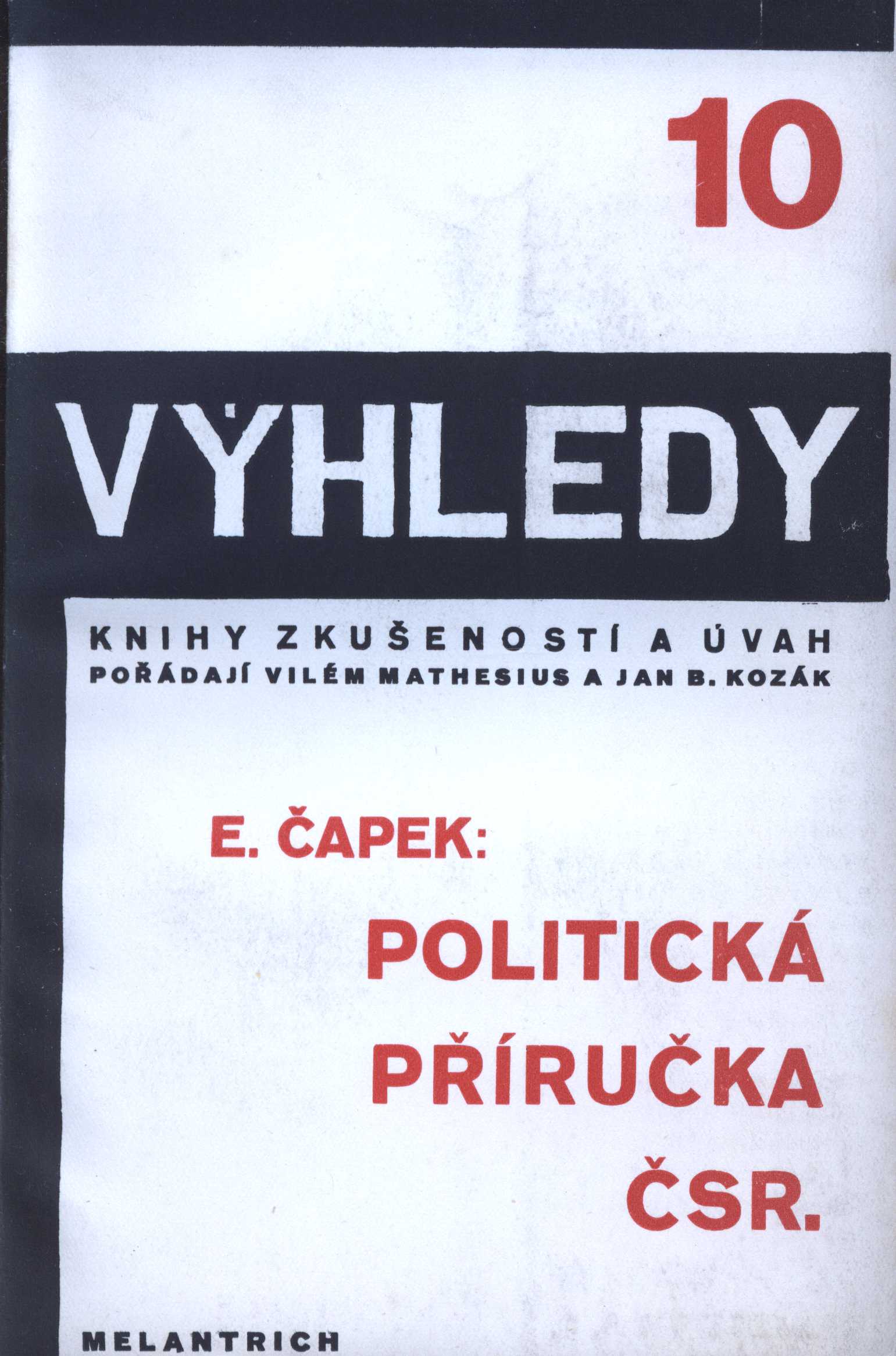 Názvové údaje Několik poznámek k dnešní situaci českoslov. menšiny v Polsku : zvláštní otisk ze sborník NRČ "Naše zahraničí" roč. V., čísl. 4. / Jan Auerhan Osobní jméno Auerhan, Jan, JUDr. 1880-1942 (Autor) Další autoři Grafické závody Neuber, Pour a spol. (Tiskař) Korp. Národní rada československá (Nakladatel, vydavatel) (1916-) Nakladatel V Praze : Nákladem Národní rady československé, 1925 Výrobce (Neuber, Pour a spol.) Rozsah 12, [4] s. Klíčová slova česká literatura * stol. 20., léta 20. * první republika * politika * česká menšina * národnostní menšina * Polsko Počet ex. 1, z toho volných 1 Druh dok. monografie Signatura KaG XLVII B2 81 Názvové údaje La politique extérieure de la république Tchécoslovaque / exposé de M. E. Beneš, ministre des Affaires étrangères, devant la Chambre tchécoslovaque le 27 janvier 1921 Osobní jméno Beneš, Edvard, 1884-1948 (Autor) Další autoři Politika (tiskárna, nakladatelství) (Tiskař) Nakladatel Prague : Édition de la "Gazette de Prague", 1921 Výrobce (Politika) Rozsah 36 s. Klíčová slova česká literatura * česká politika * zahraniční politika * evropská politika * projevy * politický projev * politické projevy * první republika Počet ex. 1, z toho volných 1 Druh dok. monografie Signatura VHB 0245 Názvové údaje Problémy nové Evropy a zahraniční politika československá : projevy a úvahy z r. 1919-1924 / Eduard Beneš Osobní jméno Beneš, Edvard, 1884-1948 (Autor) Další autoři Melantrich (nakladatelství) (Nakladatel, vydavatel) (Tiskař) Nakladatel Praha : Nákladem a tiskem "Melantricha", 1924 Rozsah 306 s. Klíčová slova česká literatura * česká politika * evropská politika * domácí politika * politické projevy * politický projev * první republika Počet ex. 1, z toho volných 1 Druh dok. monografie Signatura VHB 0264 Názvové údaje Národ a armáda : R. Bergman Osobní jméno Bergman, Rudolf, 1876-1940 (Autor) (Nakladatel, vydavatel) Další autoři Pražská akciová tiskárna (Tiskař) Nakladatel V Praze : [R. Berman], 1934 Výrobce (Pražská akciová tiskárna) Rozsah 35 s. Klíčová slova česká literatura * česká politika * první republika * armáda Počet ex. 1, z toho volných 1 Druh dok. monografie Signatura KaG XXVIII G3 16 Názvové údaje Dies atri aneb od první do třetí republiky / Vladislav Brož ; Návrh obálky Z. Přibyl ; Frontisp. Jiří Anderle Osobní jméno Brož, Vladislav, 1918- (Autor) Další autoři Přibyl, Z. (Grafický technik) Anderle, Jiří, 1936- (Ilustrátor) Nakladatel Praha : Univerzita Karlova - Právnická fakulta, ediční středisko, 2000 Rozsah 98 [2] s. : fot Klíčová slova česká literatura * autobiografické vzpomínky * Československo * první republika * mládí * studium * společenská situace * politická situace * 1. světová válka * koncentrační tábory * poválečné období * stol. 20., léta 30.-40. Počet ex. 1, z toho volných 1 Druh dok. monografie Signatura C12b 4474 Názvové údaje Politická příručka ČSR : sociologická studie / E. Čapek Osobní jméno Čapek, Emil, 1880-1960 (Autor) Další autoři Mathesius, Vilém (Jiná role) Kozák, J. B. (Jiná role) Čapek, E. (Autor) Korp. Melantrich (nakladatelství) (Nakladatel, vydavatel) Nakladatel V Praze : Melantrich, 1931 Rozsah 205 s. Klíčová slova Československo * stol. 20., léta 20. * české země * Slovensko * politický vývoj * hospodářský vývoj * demografický vývoj * první republika * sociologické studie Počet ex. 2, z toho volných 2 Druh dok. monografie Signatura MEL 2283, MEL 2283a Názvové údaje Naše problémy : úvahy o základních otázkách Československa / Ivan Dérer Osobní jméno Dérer, Ivan, 1884-1973 (Autor) Další autoři Orbis (tiskárna) (Nakladatel, vydavatel) Nakladatel Praha : Nakladateľstvo Orbis, 1938 Rozsah 377 stran Klíčová slova slovenská literatura * Slovensko * československá politika * první republika Počet ex. 1, z toho volných 1 Druh dok. monografie Signatura KJBeneš 695