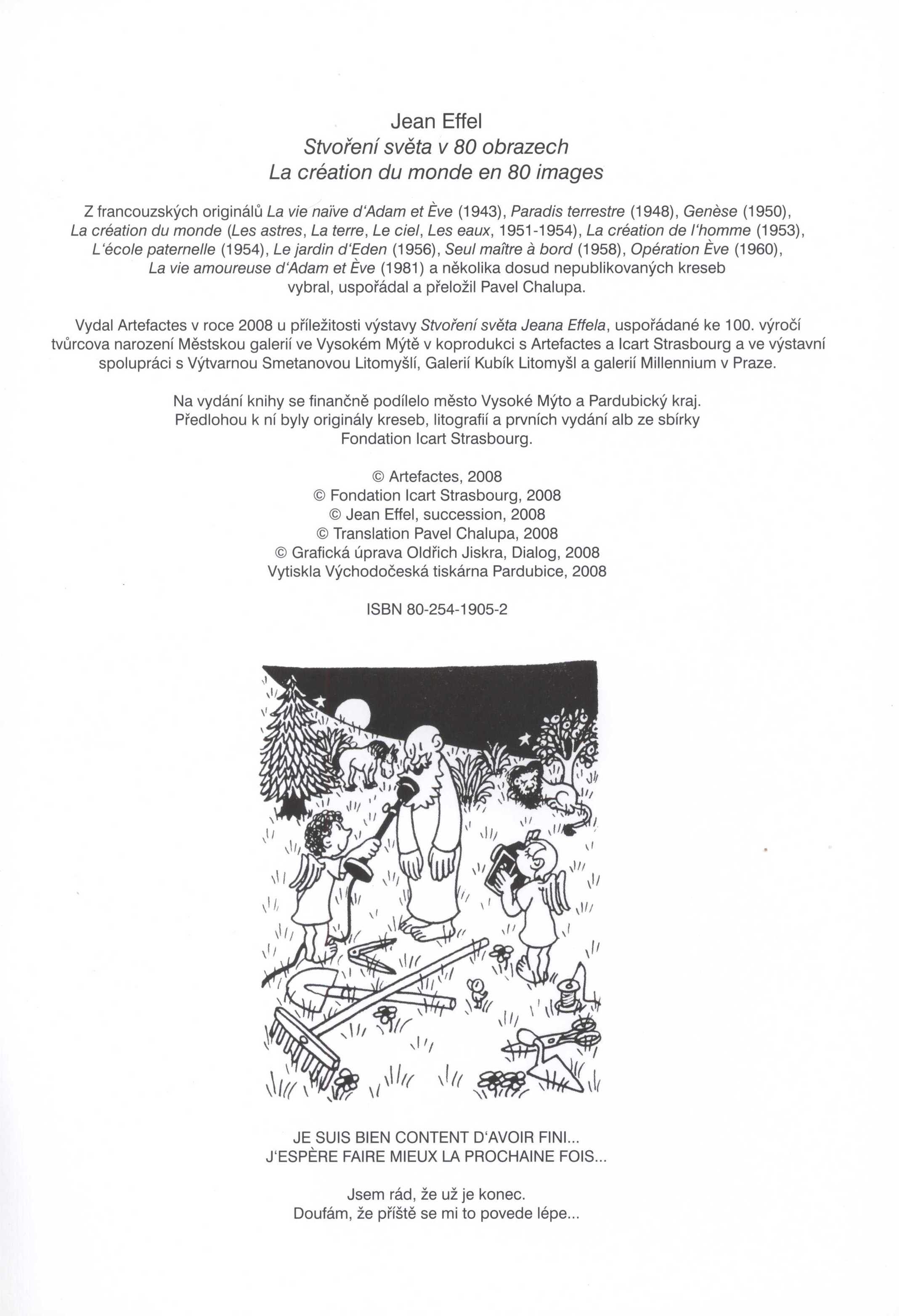 Názvové údaje 450 let Žlutického kancionálu : sborník referátů přednesených na semináři při příležitosti výstavy "450 let Žlutického kancionálu" a vystavení originálu Žlutického kancionálu ve Žluticích dne 28.6.2008 / [uspořádal Petr Brodský] Záhlaví-akce 450 let Žlutického kancionálu (2008 : Žlutice, Česko) Další autoři Brodský, Petr (Editor) Nakladatel [Žlutice : s.n., 2008] Rozsah 16 s. : il. Klíčová slova staré tisky * Česko * kancionály * graduály * iluminované rukopisy * zpěvy * stol. 16. * výstava * r. 2008 * historické pojednání * referáty * texty seminářů Počet ex. 1, z toho volných 1 Druh dok. monografie Signatura C12b 11475 Názvové údaje Historie ZOO Praha : prvních 40 zápasů a úspěchů / Romana Anděrová ; [text Romana Anděrová s využitím textů J. Felixe ; foto Archiv ZOO ... [et al.] ; grafická úprava Vladimír Veselý] Osobní jméno Anděrová, Romana, 1951- (Autor) Další autoři Veselý, Vladimír (Knižní grafik) Korp. Zoologická zahrada Praha (Nakladatel, vydavatel) Těšínské papírny, s.r.o. (tiskárna) (Tiskař) Nakladatel Praha : Zoologická zahrada hl. m. Prahy, 2008 Výrobce Těšínské papírny, s. r. o.) Rozsah 96 s. : il. (některé barev.), faksim., portréty ; 17,8 cm Heslo korporace (zkrác. heslo korp.) : Zoologická zahrada Praha Předmětová hesla zoologické zahrady * dějiny Klíčová slova česká literatura * zoologická zahrada, Praha * historie * fotografická publikace * r. 2008 Počet ex. 1, z toho volných 1 Druh dok. monografie Signatura C12a 4439 Názvové údaje José-María Cano : welcome to capitalism! = vítejte v kapitalismu! : [exhibition DOX Centre for Contemporary Art, Prague, October 19, 2008 - February 9, 2009] / with essays by Jaroslav Anděl, Brooke L. McGowan and Peter Suchin ; [editor Jaroslav Anděl ; editorial assistance Leoš Válka ; translators Ladislav Nagy, Barbora Štefanová ; layout and litographs Johan Vlach, MiniMaxstudio] Osobní jméno Cano, José María, 1959- (Umělec) (Ilustrátor) Další autoři Anděl, Jaroslav, 1949- (Autor úvodu atd.) (Sestavovatel, kompilátor) McGowan, Brooke Lynn (Autor úvodu atd.) Suchin, Peter, 1959- (Autor úvodu atd.) Válka, Leoš, 1953- (Sestavovatel, kompilátor) Nagy, Ladislav, 1974- (Překladatel) Štefanová, Barbora, 1973- (Překladatel) Vlach, Johan, 1974- (Knižní grafik) Korp. DOX Centrum současného umění (Praha) (Nakladatel, vydavatel) Trico (tiskárna) (Tiskař obrazu) Nakladatel Prague : Dox Centre for Contemporary Art, [2008] Výrobce (Trico) Rozsah 379 s. : il. (převážně barev.), portréty, faksim. ; 31 cm Osobní hesla Cano, José María, 1959- - španělský hudebník a výtvarník Předmětová hesla španělské výtvarné umění - 21. stol * moderní umění - Španělsko * enkaustika Klíčová slova španělské výtvarné umění * výtvarní umělci * moderní malířské umění * Španělsko * monografie * Cano J.-M. * obrazové publikace * výstavy * Praha * r. 2008 * r. 2009 Počet ex. 1, z toho volných 1 Adr. el. zdr. http://toc.nkp.cz/NKC/200906/contents/nkc20091927896_1.pdf Druh dok. monografie Signatura C12d 1643 Názvové údaje Stvoření světa v 80 obrazech = La création du monde en 80 images / Jean Effel ; z francouzských originálů La vie naïve d'Adam et Ève (1943) , Paradis terrestre (1948), Genèse (1950), La création du monde ... , La création de l'homme (1953), L'école paternelle (1954), Le jardin d'Eden (1956), Seul maître à bord (19558), Opération Ève (1960), La vie amoureuse d'Adam et Ève (1981) a několika dosud nepublikovaných kreseb vybral, uspořádal a přeložil Pavel Chalupa ; grafická úprava Oldřich Jiskra, Dialog Osobní jméno Effel, Jean, 1908-1982 (Umělec) Další autoři Chalupa, Pavel, (Sestavovatel, kompilátor) (Překladatel) (Nakladatel, vydavatel) 1962- Jiskra, Oldřich (Knižní grafik) Korp. Městská galerie (Vysoké Mýto, Česko) (Organizátor akce) Artefactes, z.s. (spolek) (Organizátor akce) (Nakladatel, vydavatel) ICART - Ecole des Métiers de la Culture et du Marché de l'Art (škola managementu umění) (Organizátor akce) Smetanova Litomyšl (společnost) (Organizátor akce) Galerie Miroslava Kubíka (Litomyšl, Česko) (Organizátor akce) Galerie Millennium (Praha, Česko) (Organizátor akce) Nakladatel [Pustina] : Artefactes, 2008 Výrobce Pardubice : Východočeská tiskárna Copyright ©Fondation Icart Strasbourg, 2008 ©Jean Effel, succesion, 2008 Rozsah 80 stran : ilustrace ; 27 cm Osobní hesla Effel, Jean, 1908-1982 - francouzský kreslíř, karikaturista, novinář, ilustrátor Chronologie 1908-1982 Předmětová hesla creation * pictorial humor - France - 20th century * cartoonists - France - 20th century * illustrators - France - 20th century Klíčová slova česká literatura * francouzská literatura * dvojjazyčné vydání * ilustrovaný komiks * kreslený humor * stvoření světa * francouzští výtvarníci * kreslíři * karikaturisté * Effel J. * Francie * stol. 20. * výstava * Česko * r. 2008 Počet ex. 1, z toho volných 1 Druh dok. monografie Signatura C12c 5102 Názvové údaje Gloria musaealis 2008 : VII. ročník Národní soutěže muzeí Gloria musaealis : výroční zpráva / texty Pavel Popelka, Malvína Malovická ; editor Anna Komárková, Malvína Malovická ; grafika Milan Jaroš, akad. mal. Záhlaví-akce Gloria musaealis (soutěž) Další autoři Popelka, Pavel, 1949- (Autor) Malovická, Malvína (Autor) (Editor) Komárková, Anna (Editor) Jaroš, Milan, 1953- (Knižní grafik) Korp. Asociace českých a moravskoslezských muzeí a galerií (Nakladatel, vydavatel) FPS Repro (firma) (Tiskař) Nakladatel Praha : Asociace muzeí a galerií České republiky, 2009 Výrobce FPS Repro spol. s r.o. Rozsah 63 stran : ilustrace ; 21 cm Heslo akce Gloria musaealis (soutěž) Klíčová slova muzea * muzejnictví * soutěže * výroční zprávy * Česko * r. 2008 Po
