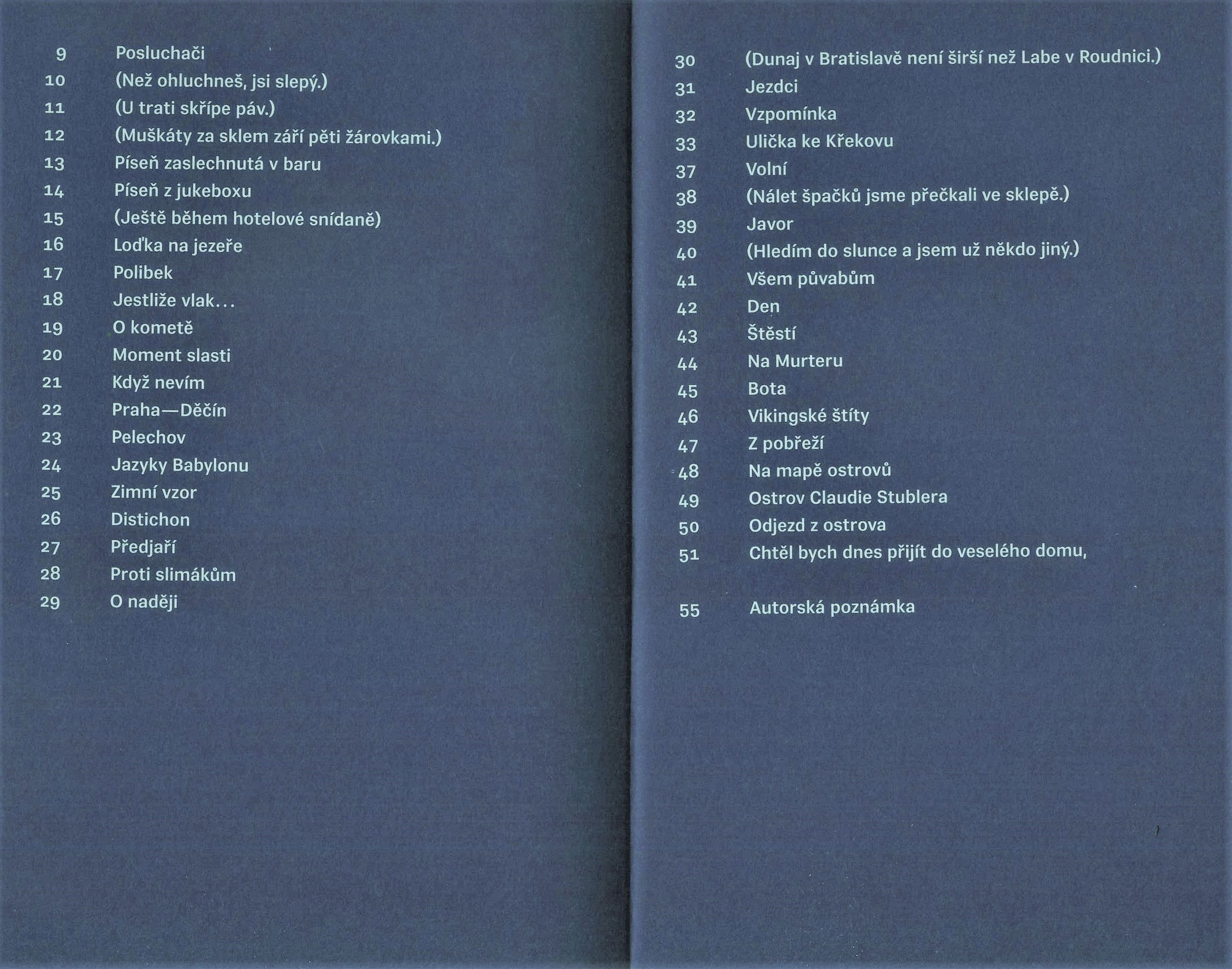 Názvové údaje Milan Beránek : 5. 10.-5. 11. 2017 Praha, Arthouse Hejtmánek Osobní jméno Beránek, Milan, 1936- (Umělec) (Ilustrátor) Další autoři Hejtmánek, Tomáš, 1967- (Autor koncepce) Dřímal, Milan, 1948- (Autor) Vlčková, Nikol (Autor) Šiklová, Lucie, 1964- (Autor) Walsh-Spáčilová, Elizabeth, (Překladatel) 1970- Humlová, Helga, (Překladatel) 1961- Palán, Oto, 1964- (Fotograf) Jodas, Marek, (Knižní grafik) 1962- Korp. Arthouse Hejtmánek (galerie : Praha, Česko) (Organizátor akce) (Nakladatel, vydavatel) Triangl (tiskárna) (Tiskař) Nakladatel Praha : Arthouse Hejtmánek, 2017 Výrobce [Praha] : Triangl, a.s. Rozsah 145 stran : ilustrace (převážně barevné), portréty, faksimile ; 27 cm Osobní hesla Beránek, Milan, 1936- - sochař, malíř a básník Předmětová hesla české sochařství - 20. století * objekty (umění) - Česko * asambláže - Česko * moderní umění - Česko * Czech sculpture - 20th century * objects (art) - Czechia * assemblages - Czechia * modern art - Czechia Klíčová slova české výtvarné umění * čeští výtvarníci * sochaři * Beránek M. * katalog výstavy * výstava * Praha * r. 2017 * obrazové publikace * fotografické publikace Počet ex. 1, z toho volných 1 Druh dok. monografie Signatura C12c 4996 Názvové údaje Byla jednou jedna... básnická generace takzvaných pětatřicátníků : (dissertatio apologetica) / Milan Blahynka Osobní jméno Blahynka, Milan, 1933- (Autor) Další autoři Maštálka, Jiří, 1956- (Autor úvodu atd.) (Autor doslovu, tiráže atd.) Korp. Typos, tiskařské závody (firma) (Tiskař) Nakladatel [Česko] : [nakladatel není známý], 2017 Výrobce [Klatovy] : Typos, tiskařské závody, s.r.o., závod Klatovy Rozsah 351 stran : ilustrace, portréty, faksimile ; 22 cm Osobní hesla Cincibuch, Petr, 1943- - básník, prozaik, redaktor, editor * Čejka, Jaroslav, 1943- - básník, prozaik, dramatik a novinář * Černík, Michal, 1943-2024 - básník, redaktor, překladatel * Pelc, Jaromír, 1952- - básník, literární a divadelní kritik, recenzent, kulturní publicista, redaktor, editor * Peterka, Josef, 1944- - básník, pracovník Ústavu pro českou literaturu, práce v oboru literární vědy, překlady z ruštiny * Skarlant, Petr, 1939-2019 - básník, prozaik, dramatik, překladatel a redaktor * Sýs, Karel, 1946-2024 - básník, prozaik, esejista, redaktor, překladatel, levicový novinář * Šimon, Josef, 1948-2018 - básník * Žáček, Jiří, 1945- - spisovatel, překladatel, básník a sběratel a tvůrce aforismů Předmětová hesla česká poezie - 20.-21. století * čeští básníci - 20.-21. století * literárněvědné rozbory * literární vlivy * literatura a společnost - Česko - 20.-21. století * Czech poetry - 20th-21st centuries * Czech poets - 20th-21st centuries * literary criticism and history * literary influences * literature and society - Czechia - 20th-21st centuries Klíčová slova česká literatura * studie * Blahynka M. * básníci * čeští básníci * generace * stol. 20., léta 30.-50. * tvorba * stol. 20., 2. pol. * obrazové přílohy * r. 2017 Počet ex. 1, z toho volných 1 Druh dok. monografie Signatura C12b 18157 Názvové údaje Galerie Závodný 2017 = Závodný Gallery 2017 / texty: Vladimíra Brucháčková Závodná ; fotografie: Ondřej Polák, Martin Polák, Eva Heyd, Daniel Kamenár, Petra Korlaar, soukromé archivy umělců ; anglický překlad: Petra Korlaar, Petr Švec Osobní jméno Brucháčková Závodná, Vladimíra, (Autor) (Kurátor výstavy) 1974- Další autoři Polák, Ondřej, 1968- (Fotograf) Polák, Martin, (Fotograf) 1966- Heyd, Eva, (Fotograf) 1953- Kamenár, Daniel, (Fotograf) (Knižní grafik) 1971- Korlaar, Petra, 1982- (Fotograf) (Překladatel) Švec, Petr (Překladatel) Korp. Galerie Závodný (Mikulov, Břeclav, Česko) (Nakladatel, vydavatel) CCB spol. s r. o. (firma) (Tiskař) Nakladatel [Mikulov] : Galerie Závodný, [2019] Výrobce Brno : CCB, spol. s r. o. Rozsah 55 stran : ilustrace (převážně barevné), portréty ; 30 cm Heslo korporace (zkrác. heslo korp.) : Galerie Závodný (Mikulov, Břeclav, Česko) Geografické heslo Mikulov (Česko) Klíčová slova česká literatura * ročenka * české výtvarné umění * výtvarní umělci * výstavy * Galerie Závodný * Mikulov * Česko * r. 2017 Počet ex. 1, z toho volných 1 Druh dok. monografie Signatura C12d 2494 Názvové údaje Gloria musaealis 2017 : XVI. ročník : Národní soutěž muzeí : výroční zpráva / texty: soutěžící muzea a galerie, Irena Chovančíková ; překlad: soutěžící muzea a galerie, Monika Benčová ; editor: Monika Benčová, Anna Komárková ; grafika: Jana Dolanská Záhlaví-akce Gloria musaealis (16. : 2017 : Česko) Další autoři Chovančíková, Irena, 1963- (Autor úvodu atd.) Benčová, Monika (Překladatel) (Editor) (Korektor) Komárková, Anna (Editor) (Korektor) Dolanská, Jana, 1976- (Knižní grafik) Korp. Asociace muzeí a galerií České republiky (Praha) (Nakladatel, vydavatel) TNM PRINT s. r. o. (tiskárna) (Tiskař) Nakladatel Praha : Asociace muzeí a galerií ČR, 2018 Výrobce TNM Print s. r. o. Rozsah 74 stran : barevné ilustrace ; 21 cm Heslo akce Gloria musaealis (soutěž) Klíčová slova muzea * muzejnictví * soutěže * ceny * vyznamenání * výstavy * Česko * r. 2017 * výroční zprávy Počet ex. 1, z toho volných 1 Druh dok. monografie Signatura C12b 18197 Názvové údaje Imprese Antonína Hudečka Osobní jméno Hudeček, Antonín, 1872-1941 (Umělec) Další autoři Zachař, Michael, 1965- (Kurátor výstavy) (Autor úvodu atd.) Havel, Milan (Fotograf) Šálek, Miloš, 1976- (Fotograf) Teichmanová, Pavlína (Knižní grafik) (Spolupracovník) Pangrácová, Lucie (Spolupracovník) Majzlíková, Lenka (Spolupracovník) Korp. Galerie města Trutnova (Organizátor akce) (Nakladatel, vydavatel) Integraf, s. r. o. (Tiskař) (Tiskař obrazu) Nakladate