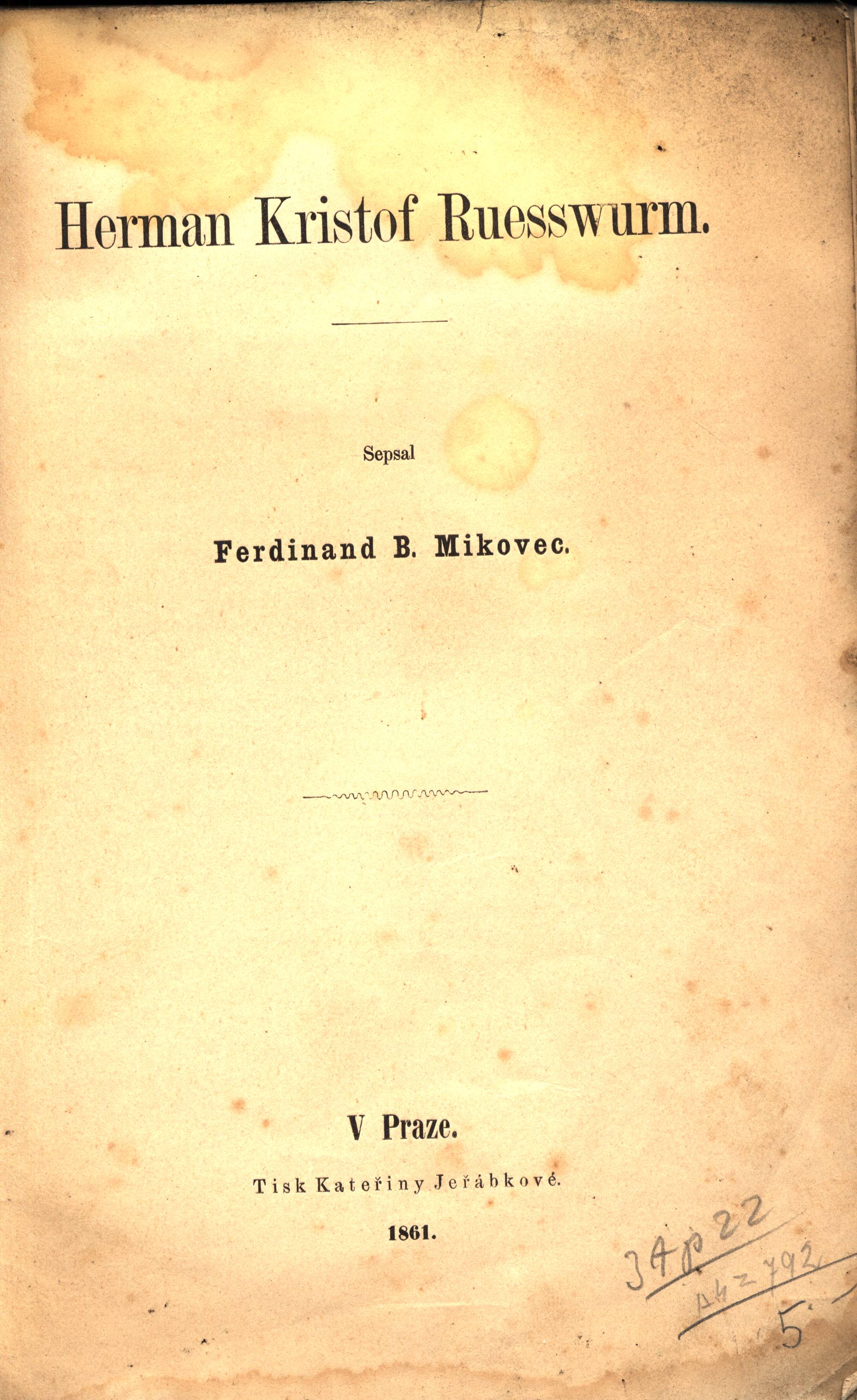 Názvové údaje Průkopník slovanství v armádě rakouské / Jindřich V. Alexander Osobní jméno Alexander, Jindřich Václav, 1867-1941 (Autor) (Nakladatel, vydavatel) Nakladatel Praha : Jindřich V. Alexander 1913 Rozsah 1 sv. Klíčová slova Rakousko-Uhersko * rakouská armáda * slovanství Počet ex. 1, z toho volných 1 Druh dok. monografie Signatura M 75 b 38 Názvové údaje Generál Laudon : Život ve službách Marie Terezie a Josefa II / Pavel Bělina ; Fotogr. Jaroslav Zezulčík, Ladislav Neubert ; Mapy a plánky Karel Zpěvák ; Obálka, vazba a graf. úprava Michal Houba Osobní jméno Bělina, Pavel, 1948- (Autor) Další autoři Zezulčík, Jaroslav (Fotograf) Neubert, Ladislav, 1927-2013 (Fotograf) Zpěvák, Karel (Ilustrátor) Houba, Michal, 1958- (Grafický technik) Nakladatel Praha : Panorama, 1993 Výrobce PBtisk) Rozsah 211 s. : fotogr., pl. mp. ; 20 cm Osobní hesla Laudon, Ernst Gideon von, 1717-1790 - rakouský císařský polní maršálek, generál Klíčová slova habsburská monarchie * rakouská armáda * vojenství * Rakousko * dějiny Počet ex. 1, z toho volných 1 Druh dok. monografie Signatura M 219 f 35 Názvové údaje Výuka češtiny a česká vojenská terminologie v rakouské armádě / Josef Ernst ; přeložil kolektiv ÚJP Vyškov Osobní jméno Ernst, Josef, 1955- (Autor) Další autoři Česko. Ministerstvo obrany (Odbor komunikace a propagace) (Nakladatel, vydavatel) Nakladatel Praha : Ministerstvo obrany České republiky, Odbor komunikace a propagace, c2013 Rozsah 245 s. : il. (některé barev.), portréty, faksim. ; 25 cm Klíčová slova Rakousko * Rakousko-Uhersko * jazyková výchova * výuka jazyků * vojenství * rakouská armáda * národnostní otázky * terminologie Počet ex. 1, z toho volných 1 Druh dok. monografie Signatura C12c 4095 Názvové údaje Herman Kristof Ruesswurm / sepsal Ferdinand B. Mikovec Osobní jméno Mikovec, Ferdinand Břetislav, 1826-1862 (Autor) Další autoři Jeřábková, Kateřina, činná 1827-1862 (Tiskař) Nakladatel V Praze : [nakladatel není známý], 1861 Výrobce Tisk Kateřiny Jeřábkové Rozsah 39 stran ; 26,5 cm Osobní hesla Russworm, Hermann Christoph, hrabě, 1565-1605 Klíčová slova česká literatura * historická literatura * dějiny českých zemí * rakouská armáda * rudolfínská doba * vojáci * generálové * biografie Počet ex. 2, z toho volných 2 Druh dok. monografie Signatura L XXI c 10, L XXI c 10a Názvové údaje Musen an die Front! : Schriftsteller und Künstler im Dienst der k. u. k. Kriegspropaganda 1914-1918 : Begleitband zur gleichnamigen Ausstellung. Teil 1, Beiträge / [Herausgegeber Jozo Džambo] Záhlaví-korpor. Musen an der Front!. Schriftsteller und Künstler im Dienst der k. u. k. Kriegspropaganda 1914-1918 ([Ausstellung]) (2003-) Další autoři Džambo, Jozo, 1949- (Editor) Becher, Peter, 1952- (Autor úvodu atd.) Korp. Adalbert Stifter Verein (Mnichov, Německo) (Editor) (Nakladatel, vydavatel) Nakladatel München : Adalbert Stifter Verein, 2003 Rozsah 104 s. : il., portréty, faksim. Klíčová slova Evropa * Rakousko * Rakousko-Uhersko * výtvarné umění * žurnalistika * film * rakouské výtvarné umění * rakouská literatura * 1. světová válka * rakouská armáda * propaganda * sborník * r. 1914-1918 Počet ex. 1, z toho volných 1 Druh dok. monografie Signatura C12c 3152/1 Názvové údaje Musen an die Front! : Schriftsteller und Künstler im Dienst der k. u. k. Kriegspropaganda 1914-1918 : Begleitband zur gleichnamigen Ausstellung. Teil 2, Dokumentation / [Herausgegeber Jozo Džambo] Záhlaví-korpor. Musen an der Front!. Schriftsteller und Künstler im Dienst der k. u. k. Kriegspropaganda 1914-1918 ([Ausstellung]) (2003-) Další autoři Džambo, Jozo, 1949- (Editor) Korp. Adalbert Stifter Verein (Mnichov, Německo) (Editor) (Nakladatel, vydavatel) Nakladatel München : Adalbert Stifter Verein, 2003 Rozsah 88 s. : il., portréty, faksim. Klíčová slova Evropa * Rakousko * Rakousko-Uhersko * výtvarné umění * žurnalistika * film * rakouské výtvarné umění * rakouská literatura * 1. světová válka * rakouská armáda * propaganda * sborník dokumentů * r. 1914-1918 Počet ex. 1, z toho volných 1 Druh dok. monografie Signatura C12c 3152/2 Názvové údaje Biographien der ausgezeichnetesten verstorbenen und lebenden Feldheren der k. k. oesterreichischen Armee aus der Epoche der Feldzüge 1788-1821 nebst treuen Abbildungen derselben und einer kurzen Kriegsgeschichte dieses Zeitraums / herausgegeben von J. Ritter von Rittersberg Osobní jméno Ritter von Rittersberg, Johann, 1780-1841 (Autor) Další autoři Enders, Karel Vilém, činný 1810-1835 (Nakladatel, vydavatel) Nakladatel Prag : bei C.W. Enders, 1828 Rozsah 30, xviii, 412 stran, 14 nečíslovaných listů obrazových příloh : portréty Klíčová slova vojevůdci * rakouská armáda * r. 1788-1821 * biografické medailony * biografie Počet ex. 1, z toho volných 1 Druh dok. monografie Signatura L V e 29 Názvové údaje Schreib das auf, Kisch! : das Kriegstagebuch / von Egon Erwin Kisch ; Nachwort zur neuen Ausgabe Bodo Uhse Osobní jméno Kisch, Egon Erwin, 1885-1948 (Autor) Další autoři Uhse, Bodo, 1904-1963 (Autor doslovu, tiráže atd.) Korp. Aufbau-Verlag (nakladatelství, Berlín, Německo) (Nakladatel, vydavatel) Leipziger Volkszeitung (tiskárna) (Tiskař) Nakladatel Berlin : Aufbau-Verlag, 1955 Výrobce Leipzig : Leipziger Volkszeitung Rozsah 267, 1 stran ; 8° Klíčová slova německy psaná literatura * židovská literatura * osobní zkušenosti * frontové zápisky * rakouská armáda * mobilizace * vojáci * každodenní život * 1. světová válka Počet ex. 5, z toho volných 5 Druh dok. monografie Signatura Kisch 00003, Kisch 00041, Kisch 00045, Kisch 00233, Kisch 00269 Názvové údaje Schreib das auf, Kisch! : das Kriegstagebuch / von Egon Erwin Kisch Osobní jméno Kisch, Egon Erwin, 1885-1948 (Autor) Další autoři Erich Reiss Verl