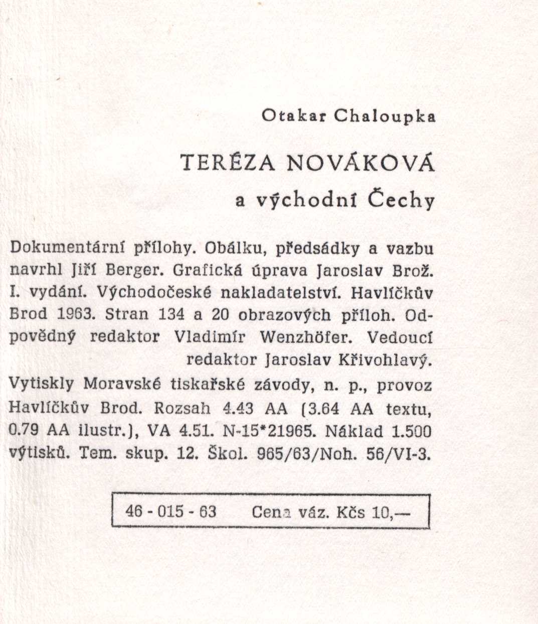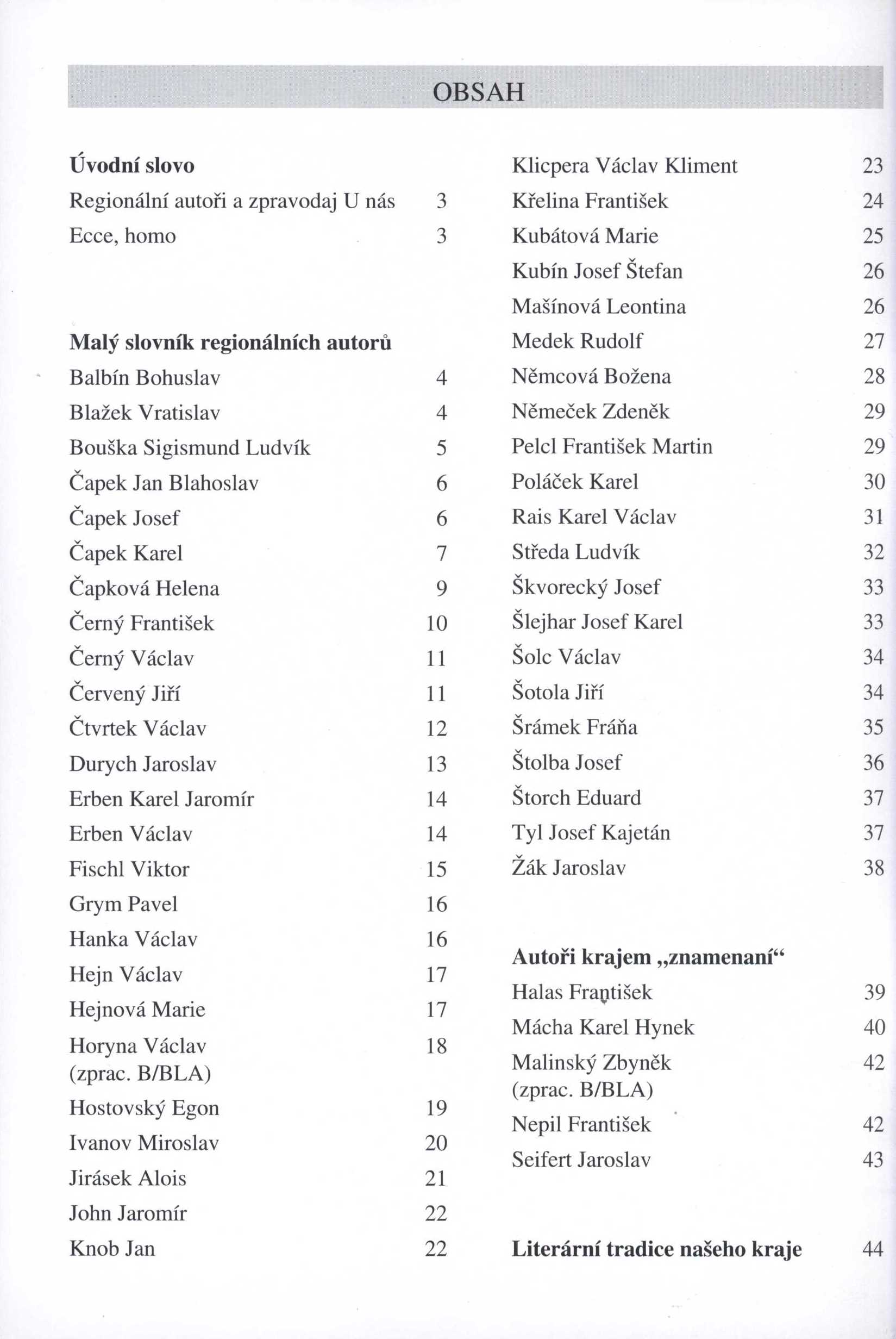 Názvové údaje Slovník spisovatelů Svitavska : (osobnosti literatury Jevíčska, Litomyšlska, Moravskotřebovska, Poličska a Svitavska) / Milan Báča Osobní jméno Báča, Milan, 1959- (Autor) Další autoři OFTIS (firma) (Nakladatel, vydavatel) HRG Litomyšl (tiskárna) (Tiskař) Nakladatel Ústí nad Orlicí : Oftis, 2018 Výrobce Litomyšl : H. R. G. spol. s r.o. Rozsah 221 stran : ilustrace, portréty, 1 barevná mapa, faksimile ; 21 cm Geografické heslo Svitavy (Česko : oblast) Klíčová slova Svitavsko * osobnosti regionu * regionální osobnosti * spisovatelé * literární život * kulturní osobnosti * biografie * Česko * biografický slovník Počet ex. 1, z toho volných 1 Druh dok. monografie Signatura C12b 18637 Názvové údaje Velimské příběhy / Bohuslav Baláček Osobní jméno Baláček, Bohuslav (Autor) Nakladatel Velim : Obec Velim, 2011 Výrobce Decibel) Rozsah 54 s. : il. Geografické heslo Velim (Česko) Klíčová slova Velim (Česko) * příběhy * pověsti * regionální osobnosti * historie města * regionální literatura Počet ex. 1, z toho volných 1 Druh dok. monografie Signatura C12b 13581 Názvové údaje Židé na Turnovsku / [Terezie Dubinová, Pavel Jakubec] Osobní jméno Dubinová, Terezie, 1971- (Autor) Další autoři Jakubec, Pavel, 1978- (Autor) Korp. Turnov (Česko). Městský úřad (Nakladatel, vydavatel) Nakladatel Turnov : Město Turnov - Odbor cestovního ruchu, 2010 Výrobce (Unipress spol. s r.o.) Rozsah 107 s. : il. (některé barev.), portréty, faksim. ; 21 cm + polské resumé ([7] s. ; 20 cm) + barev. mapa (1 složený l. ; 20 x 27 cm) Klíčová slova Židé * Česko * židovské dějiny * židovské obce * židovské památky * Aškenázové * Turnov * Turnovsko * regionální osobnosti * přehledy Počet ex. 1, z toho volných 1 Adr. el. zdr. obsah Druh dok. monografie Signatura C12b 12777 Názvové údaje Malý slovník regionálních autorů : literární tradice našeho kraje / medailonky regionálních autorů zpracoval Aleš Fetters ; doplnila a sestavila Božena Blažková Osobní jméno Fetters, Aleš, 1933-2025 (Autor) Další autoři Blažková, Božena, 1948- (Sestavovatel, kompilátor) Nakladatel V Hradci Králové : Studijní a vědecká knihovna v Hradci Králové, 2012 Rozsah 46 s. : il. (některé barev.) Klíčová slova čeští spisovatelé * královéhradecký kraj * regionální osobnosti * medailony osobností * stol. 17.-20. * biografický slovník Počet ex. 1, z toho volných 1 Druh dok. monografie Signatura C12b 14905 Odkazy (1) - PERIODIKA - Svázaný ročník periodika Názvové údaje Zpřístupnění svatojánské věže ; Dotknout se místa / redakce Dagmar Čaplyginová Záhlaví-korpor. Galerie Věž (Frýdek-Místek, Česko) (Autor) Další autoři Čaplyginová, Dagmar, 1958- (Autor) (Redaktor, výkonný redaktor) (Nakladatel, vydavatel) Nakladatel Frýdek-Místek : Dagmar Čaplyginová, 2016 Výrobce Tisk Kleinwächter Rozsah 37 stran : ilustrace (některé barevné), portréty, 1 faksimile ; 22 cm Heslo korporace (zkrác. heslo korp.) : Galerie Věž (Frýdek-Místek, Česko) Geografické heslo Frýdek-Místek (Česko) Klíčová slova kostely * věž * historie * kulturní akce * programy * regionální osobnosti * regionální kultura * regionální poezie * regionální próza * Česko * jubilejní publikace Počet ex. 1, z toho volných 1 Druh dok. monografie Signatura C12b 17914/1 Názvové údaje Výročí reionálních osobností východních Čech v roce 1993 / Sestavily Vlasta Hamplová, Hana Dušková Osobní jméno Hamplová, Vlasta, 1941-2017 (Sestavovatel, kompilátor) Další autoři Dušková, Hana (Sestavovatel, kompilátor) Nakladatel Hradec Králové : Státní vědecká knihovna, 1992 Rozsah 114 s. Klíčová slova východní Čechy * regionální osobnosti Počet ex. 1, z toho volných 1 Druh dok. monografie Signatura M 215 h 82 Názvové údaje Jaroslav Šafařík-Šafara : blovický malíř a myslitel / Hana Hanzlíčková Osobní jméno Hanzlíčková, Hana (Autor) Další autoři Akcent tiskárna Vimperk (Tiskař) Muzeum Jižního Plzeňska (Blovice, Česko) (Nakladatel, vydavatel) Nakladatel V Blovicích : Muzeum jižního Plzeňska v Blovicích, p.o., 2018 Výrobce Vimperk : Akcent tiskárna Rozsah 239 stran : ilustrace (převážně barevné), portréty, faksimile ; 22 cm Osobní hesla Šafařík-Šafara, Jaroslav, 1888-1947 - malíř Geografické heslo Blovice (Česko : oblast) Klíčová slova čeští malíři * české malířství * kresba * moderní umění * Plzeňsko * regionální osobnosti * Česko * stol. 20. * obrazové publikace * deníky Počet ex. 2, z toho volných 2 Druh dok. monografie Signatura C12b 18287, C12b 18287a Názvové údaje Teréza Nováková a východní Čechy : [dokumentární přílohy] / Otakar Chaloupka ; [obálku, předsádky a vazbu navrhl Jiří Berger ; grafická úprava Jaroslav Brož] Osobní jméno Chaloupka, Otakar, 1935-2013 (Autor) Další autoři Berger, Jiří, 1928-1992 (Autor obálky) Slabý, Zdeněk Karel, 1930-2020 (Dedikant) Nakladatel Havlíčkův Brod : Východočeské nakladatelství, 1963 Výrobce (Moravské tiskařské závody) Rozsah 132 s., [20] s. obr. příl. Osobní hesla Nováková, Teréza, 1853-1912 - prozaička, etnografka, překladatelka Klíčová slova spisovatelky * východní Čechy * regionální literatura * regionální osobnosti * literární náměty * literární tvorba * stol. 19.-20. * rozbor děl * literárněvědné studie Počet ex. 1, z toho volných 1 Druh dok. monografie Signatura ZKSlabý 0897 Názvové údaje 1. jarní zlínský salon : katalog vystavených uměleckých děl : Zlín, 26. duben - 31. srpen 1936 Záhlaví-akce Jarní zlínský salon (1._: 26. 4. - 31. 8. 1936 : Zlín, Česko) Další autoři Tisk, s. s r.o. (nakladatelství a tiskárna) (Tiskař) Nakladatel [Zlín : s.n., 1936] Výrobce Tisk) Rozsah 32 s. Klíčová slova česká literatura * katalog 
