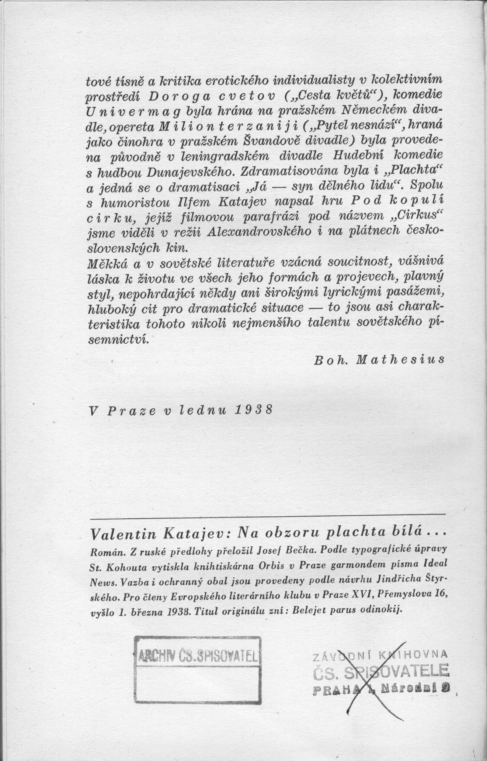 Názvové údaje Histoire des révolutions de l'empire d'Autriche années 1848 et 1849. Tome second / par Alphonse Balleydier Osobní jméno Balleydier, Alphonse, 1818-1859 (Autor) Nakladatel Paris : Guyot frares, 1853 Rozsah [324] s. Klíčová slova francouzská literatura * historie * revoluce * revoluční období * r. 1848-1849 Počet ex. 1, z toho volných 1 Druh dok. monografie Signatura L XIV b 11 Názvové údaje Die Schreckenstage in Prag, oder die Zeit vom 11. bis zum 17. Juni 1848 : nebst einem Anhange / Gechildert von Jan z Prahy [= Johann Nep. Mathias Druchsa] Osobní jméno Druchsa, Johann Nepomuk Mathias, činný 1848-1873 (Autor) Další autoři Spurný, Jan, -asi 1860 (Tiskař) Nakladatel Prag : Schnellpresse - Druck von Johann Spurny, 1848 Rozsah 34 s. ; 8° Klíčová slova Praha * revoluční období * r. 1848 Počet ex. 1, z toho volných 1 Druh dok. monografie Signatura L VIII ch 34 Názvové údaje Paměti / Josef Václav Frič ; k vydání připravil, předmluvou, vysvětlivkami, poznámkami a rejstříkem opatřil Karel Cvejn ; obálku, vazbu a grafickou úpravu navrhl Milan Hegar Osobní jméno Frič, Josef Václav, 1829-1890 (Autor) Další autoři Cvejn, Karel, 1911-1986 (Editor) (Autor úvodu atd.) Hegar, Milan, 1921-1987 (Typograf) Nakladatel Praha : Státní nakladatelství krásné literatury, hudby a umění, 1957 Výrobce Rudé právo, tiskárna vydavatelství ÚV KSČ Rozsah 570 stran, 33 nečíslovaných stran obrazových příloh : černobílé ilustrace, portréty, fotografie, reprodukce ; 24,5 cm Osobní hesla Frič, Josef Václav, 1829-1890 - spisovatel, dramatik, novinář, politik a překladatel Klíčová slova česká literatura * česká politika * české dějiny * žurnalistika * paměti * stol. 19., 1. pol. * revoluční období * Frič J. V. Počet ex. 1, z toho volných 1 Druh dok. monografie Signatura P 33 a 47 Názvové údaje Nemeckaja istoriografija revoljucii 1848-1849 gg. v Germanii / Sergej Borisovič Kan Osobní jméno Kan, Sergej Borisovič, 1896-1960 (Autor) Nakladatel Moskva : Izdat. Akademiji nauk SSSR, 1962 Rozsah 286 s. Klíčová slova německé dějiny * revoluční období * r. 1848-1849 * historiografie Počet ex. 1, z toho volných 1 Druh dok. monografie Signatura R V d 57 Názvové údaje Revoluce 1848 v Rakousku a v Německu / S.B. Kan Osobní jméno Kan, Sergej Borisovič, 1896-1960 (Autor) Další autoři Nakladatelství Rovnost (Nakladatel, vydavatel) Nakladatel Praha : Rovnost, 1951 Rozsah 239 s. + 39 s. příl. Klíčová slova dějiny Německa * dějiny Rakousko-Uherska * revoluce * revoluční období * stol. 19. * r. 1848 Počet ex. 2, z toho volných 2 Druh dok. monografie Signatura K Q VII 10, KJBeneš 658 Názvové údaje Rok 1848 dle deníku vlasteneckého učitele Františka Václava Karlíka v Rokycanech / vydal, úvodem a vysvětlivkami opatřil R. Maršan Osobní jméno Karlík, Václav, 1808-1889 (Autor) Další autoři Maršan, Robert, 1875-1938 (Nakladatel, vydavatel) (Editor) (Autor úvodu atd.) Korp. Český čtenář (nakladatelství) (Nakladatel, vydavatel) Pražská akciová tiskárna (Tiskař) Nakladatel V Praze : Český Čtenář, 1929 Výrobce (Pražská akc. tiskárna) Rozsah 97 s., 5 obr. příl. ; 8° Osobní hesla Karlík, František Václav 1811-1889 Klíčová slova české dějiny * Rokycany * vlastenectví * učitelé * revoluční období * r. 1848 * deníky Počet ex. 2, z toho volných 2 Druh dok. monografie Signatura M 102 e 26, J Q VIII 63 Názvové údaje Na obzoru plachta bílá : [román] / Valentin Katajev ; [z ruské předlohy přeložil Josef Bečka ; podle typografické úpravy St. Kohouta ; vazba i ochranný obal jsou provedeny podle návrhu Jindřicha Štyrského ; doslov o autorovi napsal Boh. Mathesius] Osobní jméno Katajev, Valentin Petrovič, 1897-1986 (Autor) Další autoři Bečka, Josef, 1894-1955 (Překladatel) Kohout, Stanislav, -1965 (Typograf) Štyrský, Jindřich, 1899-1942 (Výtvarník vazby) (Autor obálky) Mathesius, Bohumil, 1888-1952 (Autor doslovu, tiráže atd.) Korp. Evropský literární klub (nakladatelství) (Nakladatel, vydavatel) Orbis (tiskárna) (Tiskař) Nakladatel Praha : Evropský literární klub, 1938 Výrobce (knihtiskárna Orbis) Rozsah 287 s. : il. ; 22 cm Osobní hesla Katajev, Valentin Petrovič, 1897-1986 - ruský prozaik a dramatik Klíčová slova ruská literatura * překlad * román * revoluční období * Rusko * Oděsa Počet ex. 3, z toho volných 3 Druh dok. monografie Signatura AVrbova 029, ELK 0180, ELK 0180a Názvové údaje Dr. Alois Pravoslav Trojan. Část I, Doba předbřeznová / Karel Kazda Osobní jméno Kazda, Karel, 1889-1947 (Autor) Nakladatel V Slaném : [s. n.], 1928 Výrobce (Vojtěch Kočka) Rozsah 34 s. : [2] tab. ; 8° Osobní hesla Trojan, Alois Pravoslav, 1815-1893 - JUDr., poslanec Klíčová slova významné osobnosti * čeští politici * biografie * revoluční období * stol. 19., léta 40. Počet ex. 2, z toho volných 2 Druh dok. monografie Signatura M 56 c 211, M 14 f 33 Názvové údaje Současnost / Sören Kierkegaard ; z dánského originálu přeložil Miloslav Žilina ; doslov napsala Eva Formánková ; přebal navrhl a graficky upravil Zdeněk Ziegler Osobní jméno Kierkegaard, Søren Aabye, 1813-1855 (Autor) Další autoři Žilina, Miloslav, 1926-1999 (Překladatel) Formánková, Eva, 1931-2019 (Autor doslovu, tiráže atd.) Ziegler, Zdeněk, 1932-2023 (Autor obálky) (Knižní grafik) Korp. Mladá fronta (nakladatelství) (Nakladatel, vydavatel) Mír, novinářské závody (tiskárna) (Tiskař) Nakladatel Praha : Mladá fronta, 1969 Výrobce Mír, n.p. Rozsah 76 stran ; 18 cm Klíčová slova dánská literatura * překlad * výňatek * spis * filozofie * konfrontace * kritika * podstata * revoluční období * současnost * stol. 19. Počet ex. 4, z toho volných 4 Druh dok. monografie Signatura Holan 2244, JVladislav 760, M 71 d 42, Janeček 1034 Názvové údaje Cestu okřídlen