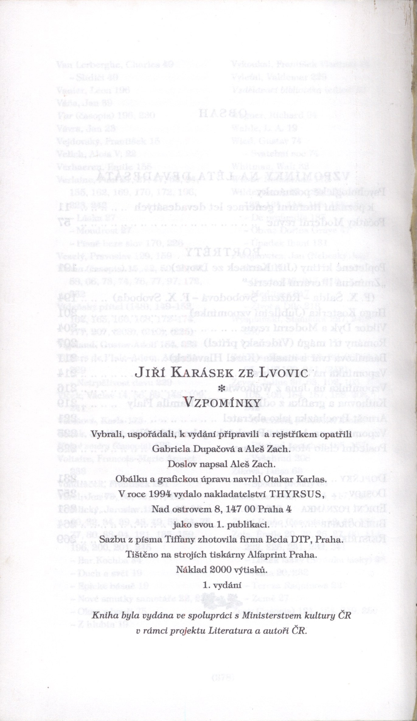 Názvové údaje Universum : revue České křesťanské akademie Záhlaví-korpor. Česká křesťanská akademie (spolek) (Nakladatel, vydavatel) Nakladatel Brno : Cesta, 1990- Poslední nakladatel [2000]- Praha : Portál Rozsah svazky Klíčová slova křesťanská církev * křesťanská víra * společnost * kultura * věda * politika * články * rozhovory * revue Adr. el. zdr. Universum-online Druh dok. PERIODIKA - Souborný záznam periodika Odkazy (5) - PERIODIKA - Svázaný ročník periodika Názvové údaje DAV a davisti / Štefan Drug Osobní jméno Drug, Štefan, 1931-2011 (Autor) Nakladatel Bratislava : Obzor, 1965 Rozsah 261 s., [32] s. portréty ; 20 cm Klíčová slova slovenská literatura * dějiny literatury * Dav (kulturně politická revue) * literárněhistorické studie * studie * intelektuální život * r. 1920-1938 Počet ex. 1, z toho volných 1 Druh dok. monografie Signatura M 31 d 29 Názvové údaje Od robotníckej poézie k DAVu / Štefan Drug Osobní jméno Drug, Štefan, 1931- (Autor) Nakladatel Bratislava : Slovenský spisovateľ, 1976 Rozsah 230 s. ; 8° Klíčová slova slovenská literatura * slovenská poezie * dělnická poezie * Dav (kulturně politická revue) Počet ex. 1, z toho volných 1 Druh dok. monografie Signatura M 104 f 17 Názvové údaje Od robotníckej poézie k DAVu / Štefan Drug Osobní jméno Drug, Štefan, 1931-2011 (Autor) Další autoři Slovenský spisovateľ (nakladatelství) (Nakladatel, vydavatel) Nakladatel Bratislava : Slovenský spisovateľ, 1976 Rozsah 230 s. ; 8° Klíčová slova slovenská literatura * slovenská poezie * dělnická poezie * Dav (kulturně politická revue) Počet ex. 1, z toho volných 1 Druh dok. monografie Signatura M 104 f 17 Názvové údaje Boris Pasternak : Analýza jedné návštěvy / Ivo Fleischmann ; Z francouzštiny přeložili Staša a Ivo Fleischmannovi ; Básně přeložil Josef Hora - nakl. Fr. Borový 1947 ; Ukázky z knihy Glejt přeložila S. Pírková, nakl. S.V.U. Mánes - 1935 ; Obálka a grafická úprava Karel Vilgus ; Fotografie Staša Fleischmannová Osobní jméno Fleischmann, Ivo, 1921-1997 (Autor) (Překladatel) Další autoři Fleischmannová, Staša, 1919-2020 (Překladatel) (Fotograf) Hora, Josef, 1891-1945 (Překladatel) Pírková, Svatava, 1908-2000 (Překladatel) Vilgus, Karel, 1944- (Grafický technik) (Autor obálky) Korp. Primus (nakladatelství) (Nakladatel, vydavatel) Tiskárna JDS (Tiskař) Nakladatel Praha : Primus, 1997 Výrobce Tiskárna JDS Rozsah 39 stran : fotografie ; 21 cm Osobní hesla Pasternak, Boris Leonidovič, 1890-1960 - ruský básník, prozaik a překladatel * Fleischmann, Ivo, 1921-1997 - básník, prozaik, překladatel a autor literárněvědných studií Klíčová slova francouzská literatura * překlady do češtiny * periodika * revue * vzpomínková literatura * eseje * ruští spisovatelé * stol. 20. Počet ex. 2, z toho volných 2 Druh dok. monografie Signatura C12b 4947, Listopad 0007 Názvové údaje Karel Hlaváček : výtvarné a kritické dílo / [obrazovou část a Antologii textů Karla Hlaváčka sestavil a poznámkami opatřil] Otto M. Urban ; [Antologii k vydání připravila Dagmar Magincová] Osobní jméno Hlaváček, Karel, 1874-1898 (Autor) (Ilustrátor) Další autoři Urban, Otto M., 1967- (Editor) (Autor) (Autor komentáře) Magincová, Dagmar, 19-- (Editor) Nakladatel Praha : Arbor vitae ; [Český Krumlov] : Egon Schiele Art Centrum, 2002 Rozsah 255 s. : il. ; 25 cm Osobní hesla Hlaváček, Karel, 1874-1898 - básník, výtvarník a výtvarný kritik, ilustrátor Klíčová slova česká literatura * poezie * pojednání * výtvarné umění * monografie * Hlaváček K. * texty * stol. 19. * dekadence * Moderní revue Počet ex. 2, z toho volných 2 Druh dok. monografie Signatura C12c 1581, C12c 1581a Názvové údaje Nevěsta : revue, balety, karikatury / Adolf Hoffmeister ; úprava a obálka autorova Osobní jméno Hoffmeister, Adolf, 1902-1973 (Autor) (Knižní grafik) (Autor obálky) Další autoři Odeon, Jan Fromek (Praha) (Nakladatel, vydavatel) knihtiskárna Jar. Hencla (Praha) (Tiskař) (Tiskař obrazu) Nakladatel Praha : Odeon, Jan Fromek, 1927 Výrobce Praha : knihtiskárna Jar. Hencla Rozsah 54 stran : ilustrace ; 20 cm Klíčová slova česká literatura * drama * Hoffmeister A. * divadelní hra * revue * ilustrace * r. 1927 Počet ex. 1, z toho volných 0 Druh dok. monografie Signatura Hoffmeister 0961 Názvové údaje Hořící duše : tragedie o třech aktech / Jiří Karásek Osobní jméno Karásek ze Lvovic, Jiří, 1871-1951 (Autor) Další autoři Hlaváček, Karel, 1874-1898 (Ilustrátor) Čapek, Emil, 1880-1960 (Dřívější majitel) Korp. Moderní revue (nakladatelství) (Nakladatel, vydavatel) Emanuel Stivín (v Praze) (Tiskař) (Tiskař obrazu) Nakladatel Praha : Moderní revue, 1899 Výrobce (v knihtiskárně Emanuela Stivína) Rozsah 92 s. : il. ; 20 cm Klíčová slova česká literatura * drama * Karásek ze Lvovic J. * tragédie * Moderní revue * r. 1899 Počet ex. 1, z toho volných 1 Druh dok. monografie Signatura Topič 0311 Názvové údaje Kvar folio : versoj de pragaj poetoj - esperantistoj : literatura suplemento al revuo PACO Ĉeĥa eldono / Karen ... [et al.] ; elektis kaj arangis Eli Urbanová Osobní jméno Karen, Jiří, 1920-2000 (Autor) Další autoři Urbanová, Eli, 1922-2012 (Editor) Nakladatel Prago : Ĉeĥa Esperanto-Asocio, 1985 Rozsah 32 s. Klíčová slova čeští spisovatelé * česká poezie * literární revue * esperanto Počet ex. 1, z toho volných 1 Druh dok. monografie Signatura C12b 8936