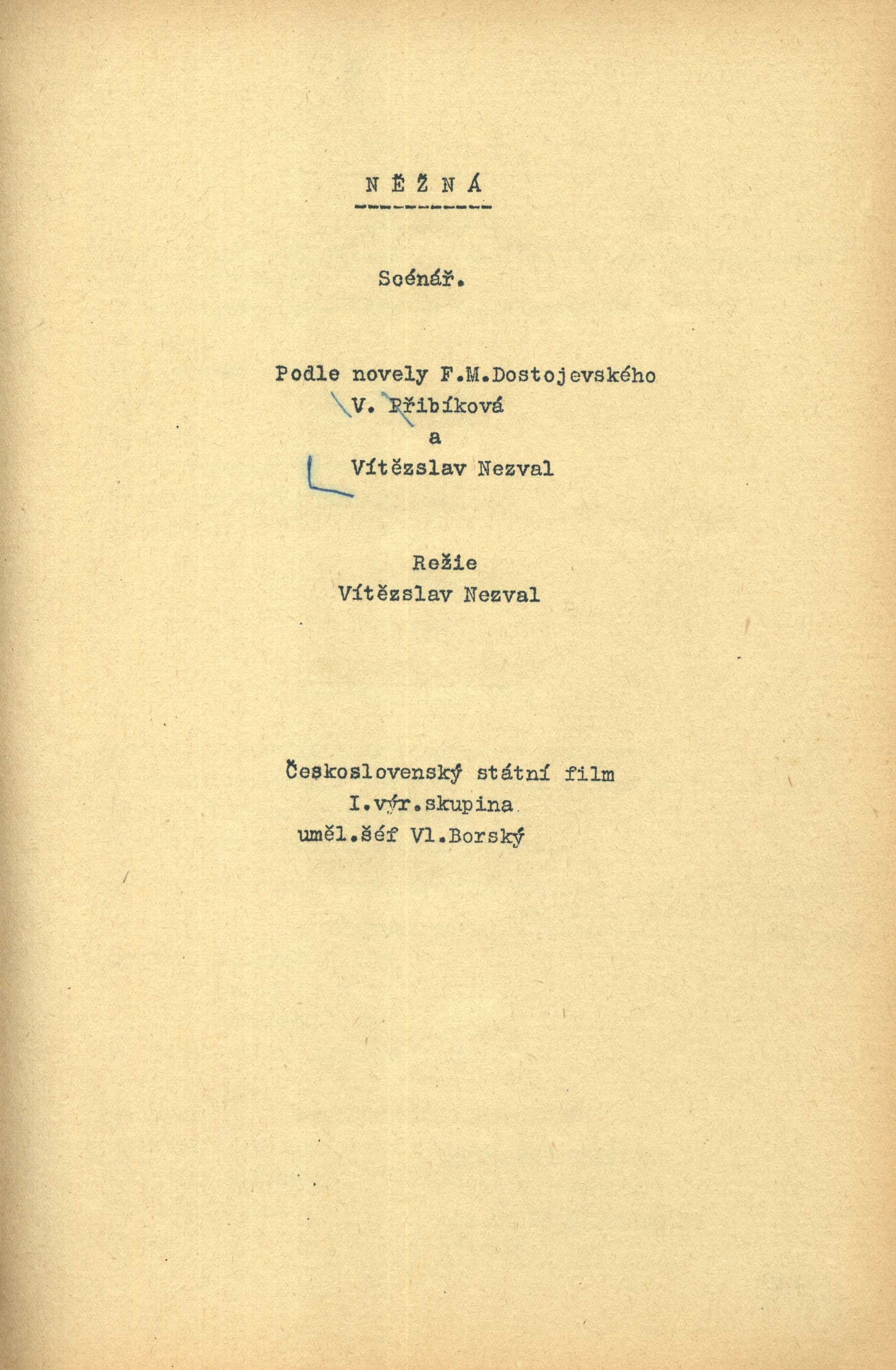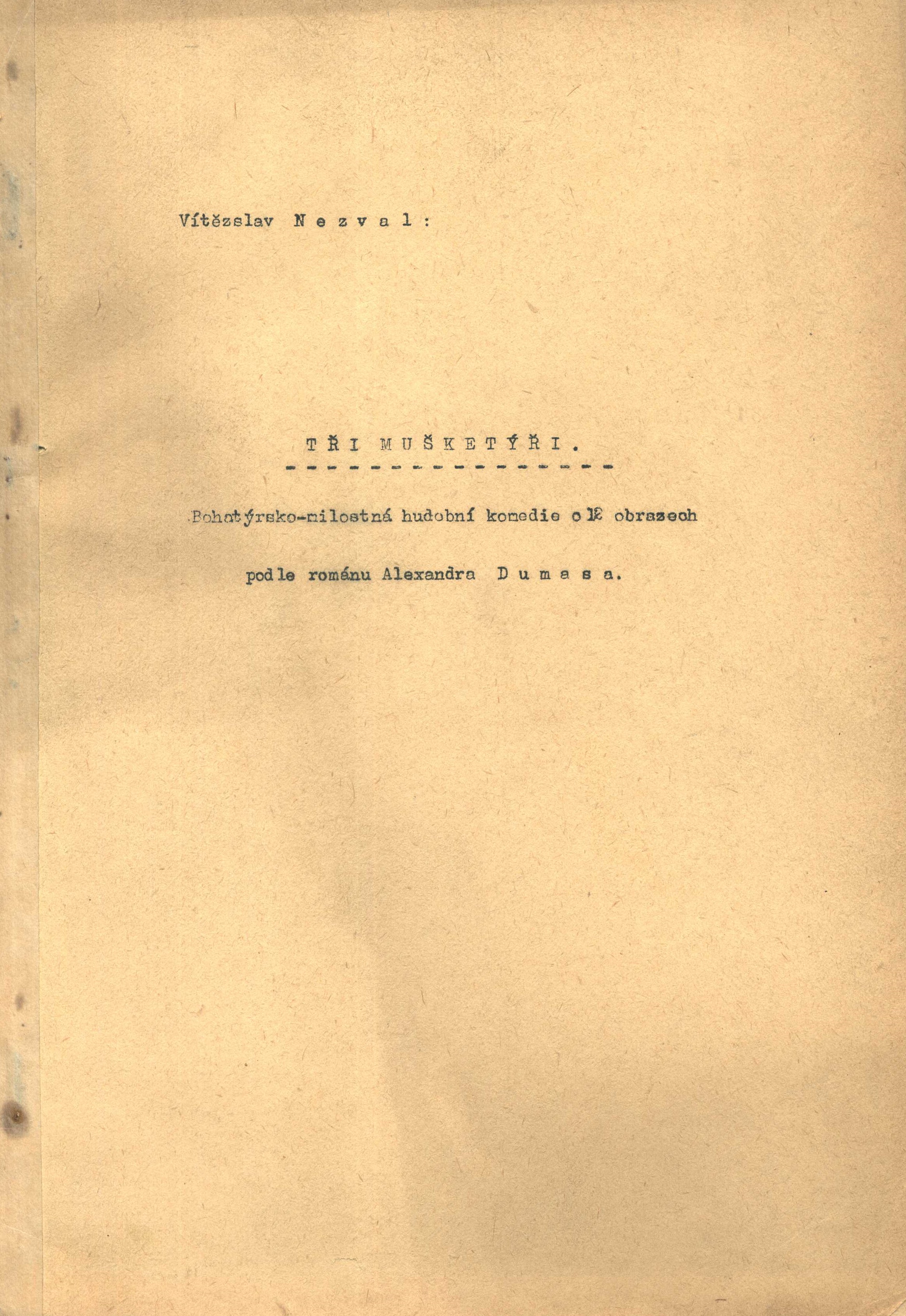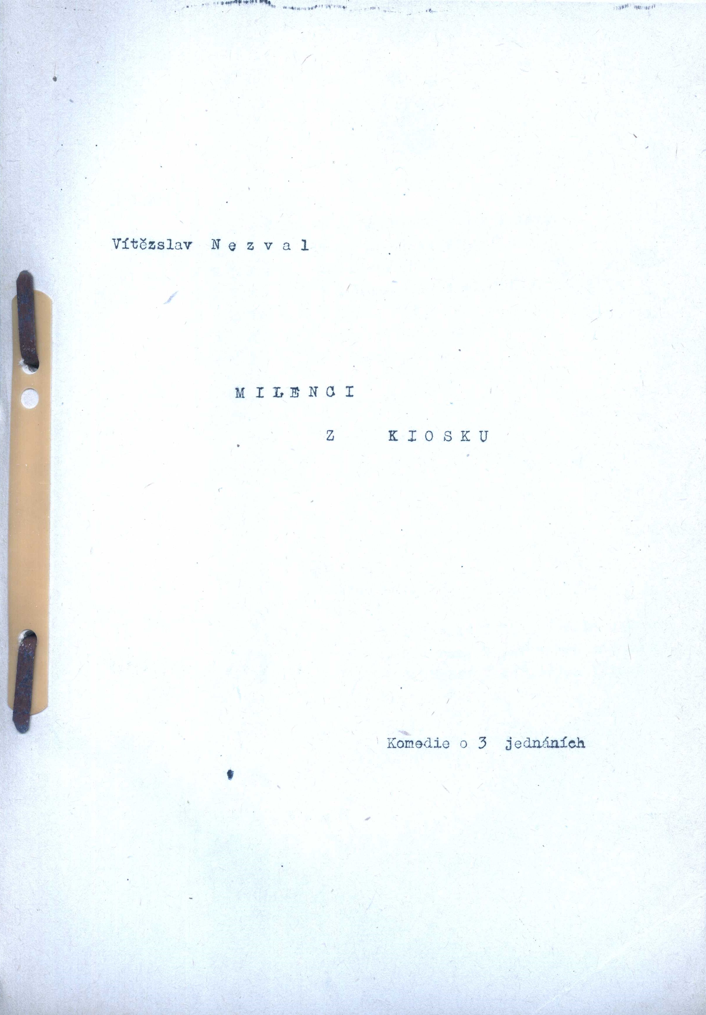 Názvové údaje Dva nepraví cikáni = Li duo finti Zingani : Comedia / Igor Dostálek, Lenka Vlčková, Hubert Krejčí ; Ilustr. a graf. upr. Ivan Mečl ; Z angl. verze scénáře přel. Igor Dostálek Osobní jméno Dostálek, Igor (Autor) Další autoři Vlčková, Lenka (Autor) Krejčí, Hubert, 1944-2022 (Autor) Mečl, Ivan, 1968- (Grafický technik) Dostálek, Igor (Překladatel) Nakladatel Praha : Krystal, 1994 Rozsah 121 s., [6] s. obr Klíčová slova divadelní hry * scénář * komedie dell'arte Počet ex. 1, z toho volných 1 Druh dok. monografie Signatura M 220 g 48 Názvové údaje Něžná : scénář / podle novely F. M. Dostojevského V. Přibíková a Vítězslav Nezval ; režie Vítězslav Nezval Osobní jméno Dostojevskij, Fedor Michajlovič, 1821-1881 (Autor) (Bibliografický předchůdce) Další autoři Přibíková, V. (Scénárista) Nezval, Vítězslav, 1900-1958 (Scénárista) (Režisér) Korp. Československý státní film (státní podnik) (Nakladatel, vydavatel) Nakladatel [Praha] : Československý státní film, 1. výrobní skupina, umělecký šéf Vl. Borský, 1948 Rozsah 177 listů ; 29 cm Klíčová slova česká literatura * strojopis * filmový scénář * r. 1948 Počet ex. 1, z toho volných 1 Druh dok. monografie Signatura Nezval 2172 Názvové údaje Jsou živí, zpívají : hra o 5 dějstvích / Jan Drda ; doslov a režijní poznámku napsal Jaroslav Bílý Osobní jméno Drda, Jan, 1915-1970 (Autor) Další autoři Bílý, Jaroslav, 1917-1989 (Autor doslovu, tiráže atd.) (Autor komentáře textu) Korp. Panorama (nakladatelství a vydavatelství) (Nakladatel, vydavatel) Nakladatel Praha : Orbis, 1961 Výrobce (KNT 2) Rozsah 105, [2] s. ; 8° Klíčová slova české divadlo * české drama * divadelní scénář * divadelní hra Počet ex. 1, z toho volných 1 Druh dok. monografie Signatura M 140 g 17 Názvové údaje Co teď a co potom? / Podle televizního scénáře Alexandry Berkové literárně zpracoval Libor Dvořák ; [fotografie Jiří Červený, Olga Svobodová ; obálku navrhl Pavel Hrach] Osobní jméno Dvořák, Libor, 1948- (Autor) Další autoři Berková, Alexandra, 1949-2008 (Autor) Červený, Jiří (Fotograf) Svobodová, Olga (Fotograf) Hrach, Pavel, 1947- (Autor obálky) Nakladatel [Praha] : Motto, [1992] Výrobce Severografia) Rozsah l99 s., [12] s. fot. ; 19 cm Klíčová slova česká literatura * televizní scénář * psychologická poradna * stol. 20., léta 90. Počet ex. 1, z toho volných 1 Druh dok. monografie Signatura M 218 g 44 Názvové údaje Atlantida = Dnes ještě zapadá slunce nad Atlantidou : drama u 5 slika / Vítězslav (Vitjeslav) Nezval ; preveo Miodrag Ašanin Osobní jméno Nezval, Vítězslav, 1900-1958 (Autor) (Bibliografický předchůdce) Další autoři Ašanin, Miodrag, 1930- (Překladatel) Nakladatel Zagreb : Zavod za prijepise i umnožavanja Ratimir Prević, 1958 Rozsah 43 stran ; 30 cm Klíčová slova česká literatura * překlad * chorvatská literatura * divadelní hra * scénář Počet ex. 1, z toho volných 1 Druh dok. monografie Signatura Nezval 2175 Názvové údaje Manon Lescaut : hra podle románu abbé Prévosta / Vítězslav Nezval ; televizní scénář: Josef Henke Osobní jméno Nezval, Vítězslav, 1900-1958 (Autor) Další autoři Prévost, Antoine François, 1697-1763 (Autor) (Bibliografický předchůdce) Henke, Josef, 1933-2006 (Scénárista) Korp. Československá televize (Nakladatel, vydavatel) Nakladatel Praha : Československá televize, [1970] Rozsah 160 stran ; 29 cm Klíčová slova česká literatura * televize * scénář * veršovaná dramatizace * strojopis * r. 1970 Počet ex. 1, z toho volných 1 Druh dok. monografie Signatura Nezval 2183 Názvové údaje Milenci z kiosku : komedie o 3 jednáních / Vítězslav Nezval Osobní jméno Nezval, Vítězslav, 1900-1958 (Autor) Nakladatel [Česko] : [nakladatel není známý], [19--]? Rozsah 138 stran ; 31 cm Klíčová slova česká literatura * komedie * divadelní hra * scénář * strojopis Počet ex. 1, z toho volných 1 Druh dok. monografie Signatura Nezval 2185 Názvové údaje Tři mušketýři : bohatýrsko-milostná hudební komedie o 12 obrazech podle románu Alexandra Dumase / Vítězslav Nezval Osobní jméno Nezval, Vítězslav, 1900-1958 (Autor) Další autoři Dumas, Alexandre, 1824-1895 (Autor) (Bibliografický předchůdce) Nakladatel [Česko] : [nakladatel není známý], [19--?] Rozsah 83 listů ; 29 cm Klíčová slova česká literatura * divadelní hra * hudební komedie * scénář * strojopis Počet ex. 1, z toho volných 1 Druh dok. monografie Signatura Nezval 2178 Názvové údaje Valerie a týden divů / Vítězslav Nezval ; literární scénář: Ester Krumbachová, Jaromil Jireš Osobní jméno Nezval, Vítězslav, 1900-1958 (Autor) Další autoři Krumbachová, Ester, 1923-1996 (Scénárista) Jireš, Jaromil, 1935-2001 (Scénárista) Nakladatel [Praha] : Filmové studio Barrandov, Tvůrčí skupina Ladislav Novotný - Bedřich Kubala, září 1967 Rozsah 172 listů ; 29 cm Klíčová slova česká literatura * černý román * literární adaptace * scénář * strojopis * r. 1967 Počet ex. 1, z toho volných 1 Druh dok. monografie Signatura Nezval 2180 Názvové údaje Veselá Praha : revuální hudební komedie o čtrnácti scénách / [napsal a hudbu složil] Vítězslav Nezval ; opsala Zdena Bezručová Osobní jméno Nezval, Vítězslav, 1900-1958 (Autor) (Skladatel) Další autoři Bezručová, Zdena, 1904-1964 (Přepisovač) Korp. Dilia, divadelní a literární agentura (Nakladatel, vydavatel) Nakladatel V Praze : Dilia, 1957 Rozsah 63 listů ; 29 cm Klíčová slova česká literatura * hudební komedie * revue * scénář * strojopis Počet ex. 2, z toho volných 2 Druh dok. monografie Signatura Nezval 2169, Nezval 2169a
