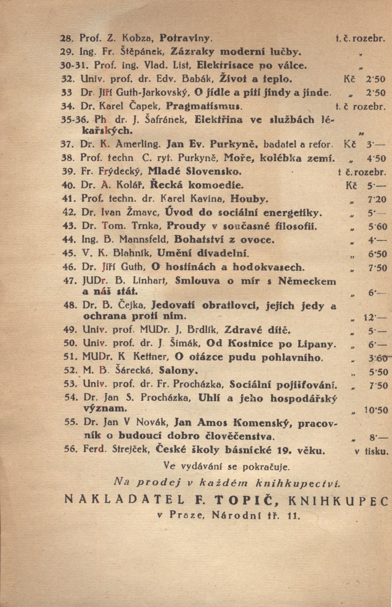 Názvové údaje Nedělní klid : úvahy národohospodářské a socialně-politické / napsal Karel Adámek Osobní jméno Adámek, Karel, 1840-1918 (Autor) (Nakladatel, vydavatel) Další autoři Beaufortova tiskárna (Praha) (Tiskař) Nakladatel V Praze : Karel Adámek, 1893 Výrobce Tiskem Edv. Beauforta Rozsah 89 stran Klíčová slova práce * pracovní podmínky * pracovní prostředí * pracovní doba * sociální otázky * sociální poměry * neděle * úvahy * stol. 19. * pojednání Počet ex. 2, z toho volných 2 Druh dok. monografie Signatura Rp 150, M 72g 17 Názvové údaje Socialismus, které jsou jeho základy a lze-li jej provésti : autorisovaný překlad VII. vydání z roku 1898 / německy napsal P. V. Cathrein, T.J. ; [přeložil Josef Tumpach] Osobní jméno Cathrein, Viktor, 1845-1931 (Autor) Další autoři Tumpach, Josef, 1862-1916 (Překladatel) (Autor úvodu atd.) Dlouhý-Pokorný, Emil, 1867-1936 (Autor úvodu atd.) Kotrba, Václav, 1871-1929 (Nakladatel, vydavatel) Korp. Cyrilometodějská knihtiskárna, knihkupectví a nakladatelství (Nakladatel, vydavatel) Nakladatel V Praze : Cyrillo-Methodějská knihtiskárna a nakladatelství V. Kotrba, 1899 Rozsah XV, [1], 275, [1] s. Klíčová slova katolická církev * katolická literatura * katolicismus * politika * křesťanský socialismus * dělnické hnutí * sociální otázky * kapitalismus * socialismus * kapitalistická společnost * ekonomie * národní hospodářství Počet ex. 1, z toho volných 1 Druh dok. monografie Signatura M 16 e 15 Názvové údaje Der Entscheidung entgegen : Grundprobleme der sozialistischen Arbeiterbewegung / Im Auftrag der Arbeitsgemeinschaft "Avantgarde" herausgegeben von Jaroslav Černý Osobní jméno Černý, Jaroslav (Editor) Nakladatel Brno : [Arbeitsgemeinschaft Avantgarde], 1937 Výrobce Polenský a Čoudek) Rozsah 191 s. ; 8° Klíčová slova kapitalismus * kapitalistická společnost * dělnické hnutí * sociální otázky * sociální poměry * sociální problémy * studie Počet ex. 1, z toho volných 1 Druh dok. monografie Signatura Teige 135 Názvové údaje Bandité z Partinika / Danilo Dolči ; [z italského originálu ... přeložil Zdeněk Frýbort a Libor Piruchta ; předmluva Zdeněk Frýbort ; doslov Antonio Boffi ; ilustrace A. Born a O. Jelínek] Osobní jméno Dolci, Danilo, 1924-1997 (Autor) Další autoři Frýbort, Zdeněk, 1931-2013 (Překladatel) (Autor úvodu atd.) Piruchta, Libor, 1931- (Překladatel) Born, Adolf, 1930-2016 (Ilustrátor) Jelínek, Oldřich, 1930-2025 (Ilustrátor) Korp. Mladá fronta (nakladatelství) (Nakladatel, vydavatel) Mír, novinářské závody (tiskárna) (Tiskař) Nakladatel Praha : Mladá fronta, 1963 Výrobce (Mír 22) Rozsah 211 s. ; 8° Klíčová slova italská literatura * Sicílie * sociální poměry * sociální otázky * vyprávění autora Počet ex. 1, z toho volných 1 Druh dok. monografie Signatura P 50 d 35 Názvové údaje Otázka sociální a Zákon Boží / od Abbé Dufoura Autor Dufour (Autor) Nakladatel Brno : tiskem a nákladem pap. knihtiskárny benediktinů rajhradských, 1896 Rozsah 116 s. ; 8° Klíčová slova teologie * křesťanství * křesťanská etika * sociální otázky * sociální aspekty * stol. 19. * pojednání Počet ex. 1, z toho volných 1 Druh dok. monografie Signatura Rp 756 Názvové údaje Sociální politika / napsal Karel Engliš Osobní jméno Engliš, Karel, 1880-1961 (Autor) Další autoři F. Topič (nakladatelství) (Autor) Veleslavín, spol. s r. o. (knihtiskárna) (Tiskař) (Tiskař obrazu) Nakladatel Praha : F. Topič, 1921 Výrobce (tiskem knihtiskárny Veleslavín sp. s r. o.) Rozsah 81 s. : il. ; 19 cm Klíčová slova česká literatura * pojednání * politika * sociální politika * sociální poměry * sociální otázky Počet ex. 1, z toho volných 1 Druh dok. monografie Signatura Topič 0087 Názvové údaje Sociální politika / napsal Karel Engliš Osobní jméno Engliš, Karel, 1880-1961 (Autor) Další autoři F. Topič (nakladatelství) (Nakladatel, vydavatel) Veleslavín, spol. s r. o. (knihtiskárna) (Tiskař) Nakladatel Praha : F. Topič, [1921] Výrobce Veleslavín) Rozsah 81 s. Klíčová slova sociální politika * sociální poměry * sociální otázky * pracovní činnost * smlouva * nezaměstnanost * studie Počet ex. 1, z toho volných 1 Druh dok. monografie Signatura Teige 099 Názvové údaje Civilisation and its discontents / Sigmund Freud ; newly translated from the German and edited by James Strachey Osobní jméno Freud, Sigmund, 1856-1939 (Autor) Další autoři Strachey, James, 1887-1967 (Překladatel) Korp. W.W. Norton & Company (Nakladatel, vydavatel) Nakladatel New York : W.W. Norton & Company, 1962 Rozsah 109 stran ; 20 cm Klíčová slova filozofie * sociologie * civilizace * sociální otázky * studie Počet ex. 1, z toho volných 1 Druh dok. monografie Signatura BVolkova 1444 Názvové údaje Stalo se jedné červencové noci : [román] / Jan Fridegård ; [ze švédského originálu ... přeložila Dagmar Pallasová ; doslov napsal Gustav Pallas ; [tisk] podle typografické úpravy Oldřicha Menharta, který také navrhl obálku] Osobní jméno Fridegård, Jan, 1897-1968 (Autor) Další autoři Pallasová, Dagmar, 1924- (Překladatel) Pallas, Gustav, 1882-1964 (Autor doslovu, tiráže atd.) Menhart, Oldřich, 1897-1962 (Typograf) (Autor obálky) Korp. Evropský literární klub (nakladatelství) (Nakladatel, vydavatel) Mladá fronta (nakladatelství) (Tiskař) Nakladatel Praha : nakladatelství ELK, 1948 Výrobce (Mladá fronta) Rozsah 193 s. ; 19 cm Osobní hesla Fridegård, Jan, 1897-1968 - švédský prozaik Předmětová hesla švédská literatura Klíčová slova švédská literatura * próza * překlad * román * Švédsko * venkovský život * sociální otázky * autobiografické prvky Počet ex. 2, z toho volných 2 Druh dok. monografie Signatura ELK 0075, ELK 0075a Názvové údaje Co má vědět dělník 