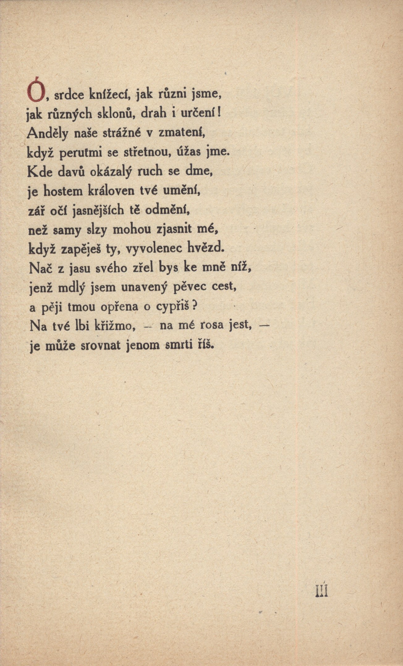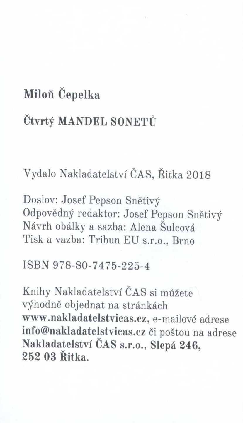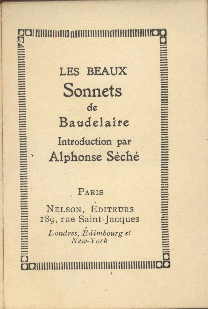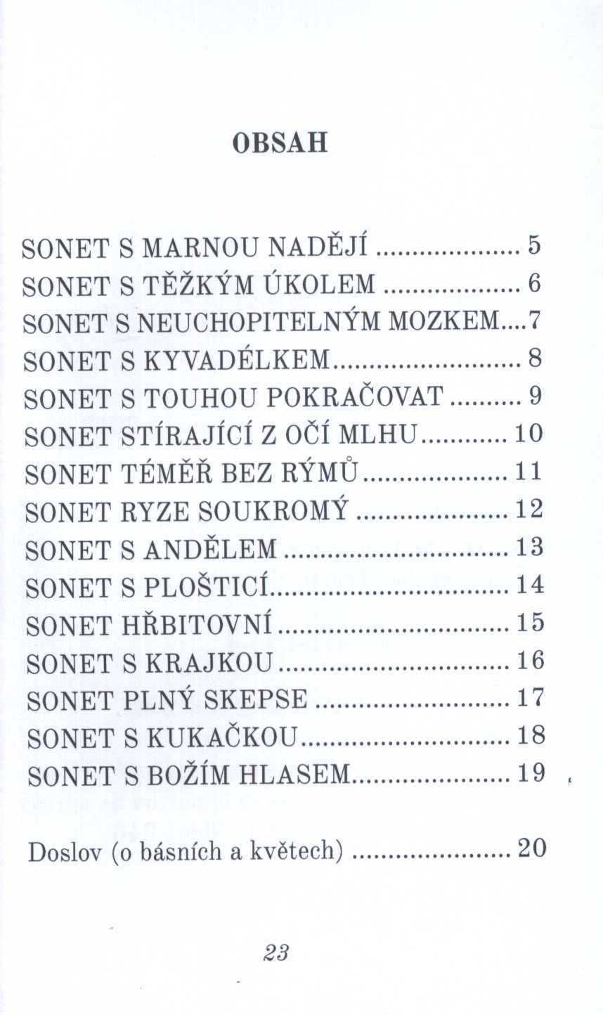 Názvové údaje Les Beaux Sonnets de Baudelaire / introduction par Alphonse Séché Osobní jméno Baudelaire, Charles, 1821-1867 (Autor) Další autoři Séché, Alphonse, 1876-1964 (Autor úvodu atd.) Korp. Nelson (nakladatelství, Paříž, Francie) (Nakladatel, vydavatel) Woodbridge Press, Ltd. (Tiskař) Nakladatel Paris : Nelson, éditeurs, [1921] Výrobce Imprimerie The Woodbridge Press, Ltd.) Rozsah x, 86 s. : il. ; 10 cm Osobní hesla Baudelaire, Charles, 1821-1867 - francouzský básník, umělecký kritik a překladatel Klíčová slova francouzská literatura * poezie * Baudelaire Ch. * sonety Počet ex. 1, z toho volných 1 Druh dok. monografie Signatura Topič 0962 Názvové údaje Sonety portugalské / Elizabeth Barrett-Browningová ; přeložil F. Balej Osobní jméno Browning, Elizabeth Barrett, 1806-1861 (Autor) Další autoři Balej, František, 1873-1918 (Překladatel) Kulhánek, Stanislav, 1885-1970 (Ilustrátor) (Výtvarník vazby) Weger, August, 1823-1892 (Ilustrátor) Korp. J. Šnajdr (firma) (Nakladatel, vydavatel) Nakladatel V Kladně : nákladem J. Šnajdra, [1919] Výrobce (tiskem nakladatele) Rozsah [8], xliv s., [1] barev. obr. příl. ; 20 cm Klíčová slova anglická literatura * poezie * anglická poezie * překlad * milostná poezie * sonety Počet ex. 1, z toho volných 1 Druh dok. monografie Signatura Topič 0074 Názvové údaje Sonnets from the Portuguese / by Elizabeth Barrett Browning Osobní jméno Browning, Elizabeth Barrett, 1806-1861 (Autor) Další autoři George Routledge and Sons (nakladatelství) (Nakladatel, vydavatel) Edinburgh Press (tiskárna) (Tiskař) Nakladatel London : George Routledge & Sons, [1---] Výrobce (Edinburgh Press) Rozsah 47 s. Klíčová slova britská literatura * britská poezie * sonety Počet ex. 1, z toho volných 1 Druh dok. monografie Signatura VHB 0007 Názvové údaje Sonety z notesu : + dárek zdarma / Jiří Bryan Osobní jméno Bryan, Jiří, (Autor) (Ilustrátor) 1960- Nakladatel Ústí nad Orlicí : Oftis, 2015 Výrobce Ústí nad Orlicí : Oftis Rozsah 55 stran ; 14 cm Klíčová slova česká poezie * sonety Počet ex. 1, z toho volných 1 Druh dok. monografie Signatura C12a 5546 Názvové údaje Osm sonetů / Edgar Degas ; přeložil Jan Tomeš Osobní jméno Degas, Edgar, 1834-1917 (Autor) (Ilustrátor) Další autoři Tomeš, Jan Marius, 1913-2010 (Sestavovatel, kompilátor) (Překladatel) (Autor doslovu, tiráže atd.) Hlavsa, Oldřich, 1909-1995 (Typograf) Korp. Československý spisovatel (nakladatelství) (Nakladatel, vydavatel) Severografia Červený Kostelec (tiskárna) (Tiskař) (Tiskař obrazu) Nakladatel Praha : Československý spisovatel, Klub přátel poezie, 1972 Výrobce V Červeném Kostelci : Severografia, n. p. Rozsah 24 nečíslovaných stran : ilustrace ; 20 x 20 cm Klíčová slova francouzská literatura * poezie * francouzští malíři * Degas E. * sonety * obrazové přílohy Počet ex. 3, z toho volných 3 Druh dok. monografie Signatura AČS 04054, Z A 6 D 28, VZinková 0484