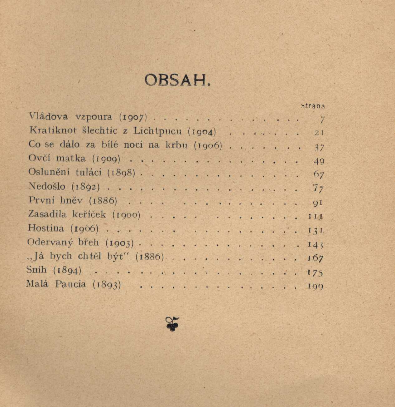 Názvové údaje Pásmo / Guillaume Apollinaire ; přeložil Petr Kopta ; kresby Vlasty Dyrynkové Osobní jméno Apollinaire, Guillaume, 1880-1918 (Autor) Další autoři Kopta, Petr, 1927-1983 (Překladatel) (Autor podpisu) (Dedikátor) Dyrynková, Vlasta, 1944- (Ilustrátor) (Autor podpisu) Dyrynk, Martin, 1941-2019 (Nakladatel, vydavatel) (Autor podpisu) Černý, Václav, 1905-1987 (Autor doslovu, tiráže atd.) (Autor podpisu) Vladislav, Jan, 1923-2009 (Dedikant) Nakladatel Praha : vlastním nákladem vydal Martin Dyrynk, 1978 Rozsah 21 stran : ilustrace ; 20 cm Klíčová slova francouzská poezie * asociace * avantgarda * moderní poezie * stol. 19., léta 80.-stol. 20., léta 10. * bibliofilie * bibliofilská vydání * soukromé tisky * novoroční tisk Počet ex. 3, z toho volných 3 Druh dok. monografie Signatura M 156 b 13, M 174 f 81, JVladislav 2205 Názvové údaje Židovské zrcadlo ve světle pravdy / vědecké studium Dra Karla [!] Eckera, soukromého docenta semitské filologie Král. akademie v Münsteru ; dle vydání Dra A.S. Šmakova zpracoval Jiří Hora [= Čeněk Brabec] Osobní jméno Ecker, Jakob, 1851-1912 (Autor) Další autoři Šmakov, Aleksej Semenovič, zemř. 1916 (Překladatel) Hora, Jiří, 1860-1933 (Překladatel) Brimann, Aron Israel, asi 1860- (Bibliografický předchůdce) Kotrba, Václav, 1871-1929 (Tiskař) Korp. Politika (tiskárna, nakladatelství) (Nakladatel, vydavatel) Nakladatel V Praze : tiskem "Politiky", závodu tiskařského a vydavatelského, 1907 Rozsah 83, [1] s. Klíčová slova Evropa * evropské dějiny * Německo * Rusko * Židé * židovské dějiny * židovská otázka * antisemitismus * antisemitská ideologie * talmud * židovské náboženství * stol. 19., léta 80.-stol. 20., léta 10. * r. 1883-1907 Počet ex. 1, z toho volných 1 Druh dok. monografie Signatura V VII e 4 přív. 2 Názvové údaje Poutník v cizině / Josef Bohuslav Foerster ; obálku navrhl Boris Hanuš Osobní jméno Foerster, Josef Bohuslav, 1859-1951 (Autor) Další autoři Hanuš, Boris (Autor obálky) Korp. Orbis (firma) (Nakladatel, vydavatel) Orbis (tiskárna) (Tiskař) Nakladatel Praha : Orbis, 1947 Rozsah 358 s. Osobní hesla Foerster, Josef Bohuslav, 1859-1951 - hudební skladatel Klíčová slova hudební skladatelé * hudba * osobnosti * Česko * Německo * Rakousko * stol. 19., léta 80.-stol. 20., léta 10. * vzpomínky * životopisná literatura Počet ex. 1, z toho volných 1 Druh dok. monografie Signatura Preissová 015 Názvové údaje Češi, Slováci a Rusko : studie vzájemných vztahů československo-ruských od r. 1867 do počátku světové války / napsal Josef Jirásek Osobní jméno Jirásek, Josef, 1884-1972 (Autor) Nakladatel V Praze : Vesmír, 1933 Výrobce Vytiskla Průmyslová tiskárna Rozsah 392 stran ; 23 cm Klíčová slova Československo * česko-ruské vztahy * zahraniční politika * společenské poměry * stol. 19., léta 80.-stol. 20., léta 10. Počet ex. 1, z toho volných 1 Druh dok. monografie Signatura M 43 f 26 Názvové údaje Siluety ruských umělců / Sergij Makovskij ; přeložil z ruského rukopisu František Táborský Osobní jméno Makovskij, Sergej Konstantinovič, 1878-1962 (Autor) Další autoři Táborský, František, 1858-1940 (Překladatel) Korp. Česká grafická Unie (tiskárna a nakladatelství) (Nakladatel, vydavatel) Nakladatel V Praze : vytiskla a vydala Česká grafická Unie a. s., 1922 Rozsah 124 stran, xvi listů obrazových příloh, 2 nečíslované listy barevných příloh ; 22 cm Klíčová slova ruská literatura * překlad * ruské umění * ruští malíři * stol. 19., léta 80.-stol. 20., léta 10. * reprodukce * reprodukce obrazů Počet ex. 2, z toho volných 2 Druh dok. monografie Signatura C12b 16730, KaG XII G 83 Názvové údaje Národní divadlo a jeho výtvarníci / Antonín Matějček ; Graf. úpr., obálku a vazbu navrhl Oldřich Menhart Osobní jméno Matějček, Antonín, 1889-1950 (Autor) Další autoři Menhart, Oldřich, 1897-1962 (Grafický technik) Nakladatel Praha : Státní nakladatelství krásné literatury, hudby a umění, 1954 Rozsah 311 s. : fot Klíčová slova Národní divadlo, Praha * dějiny stavby * výzdoba divadla * české výtvarné umění * studie * reprodukce * stol. 19., léta 80.-stol. 20., léta 10. Počet ex. 2, z toho volných 2 Druh dok. monografie Signatura MUK 1036, LK P 79 a 43 Názvové údaje Hana Kvapilová : První česká moderní herečka / Ludvík Páleníček ; Portret umělkyně od J. Jílka Osobní jméno Páleníček, Ludvík, 1904-1991 (Autor) Další autoři Jílek, Jan, 1905-1982 (Ilustrátor) Nakladatel Kroměříž : Vyšší lidová škola MOS, 1941 Rozsah 14 s. Osobní hesla Kvapilová, Hana, 1860-1907 - herečka, spisovatelka Klíčová slova česká literatura * biografie * Kvapilová H. * české divadlo * stol. 19., léta 80.-stol. 20., léta 10. Počet ex. 1, z toho volných 1 Druh dok. monografie Signatura C12a 1436 Názvové údaje Dědicové / napsala Gabriela Preissová Osobní jméno Preissová, Gabriela, 1862-1946 (Autor) Další autoři Nakladatelství Jan Otto (Nakladatel, vydavatel) Unie (tiskárna) (Tiskař) Nakladatel V Praze : J. Otto, [1913?] Výrobce (Tiskem Unie) Rozsah 167 s. ; 8° Klíčová slova česká próza * české povídky * stol. 19., léta 80.-stol. 20., léta 10. Počet ex. 1, z toho volných 1 Druh dok. monografie Signatura Preissová 033 Názvové údaje Miniaturky / napsala Gabriela Preissová. [I.] Osobní jméno Preissová, Gabriela, 1862-1946 (Autor) Další autoři Nakladatelství Jan Otto (Nakladatel, vydavatel) Unie (tiskárna) (Tiskař) Nakladatel V Praze : J. Otto, [1911] Výrobce (Tiskem Unie) Rozsah 214 s. Klíčová slova česká próza * české povídky * črty * stol. 19., léta 80.-stol. 20., léta 10. Počet ex. 1, z toho volných 1 Druh dok. monografie Signatura Preissová 048/1 Názvové údaje Miniaturky / napsala Gabriela Preissová. [II.] Osobní jm