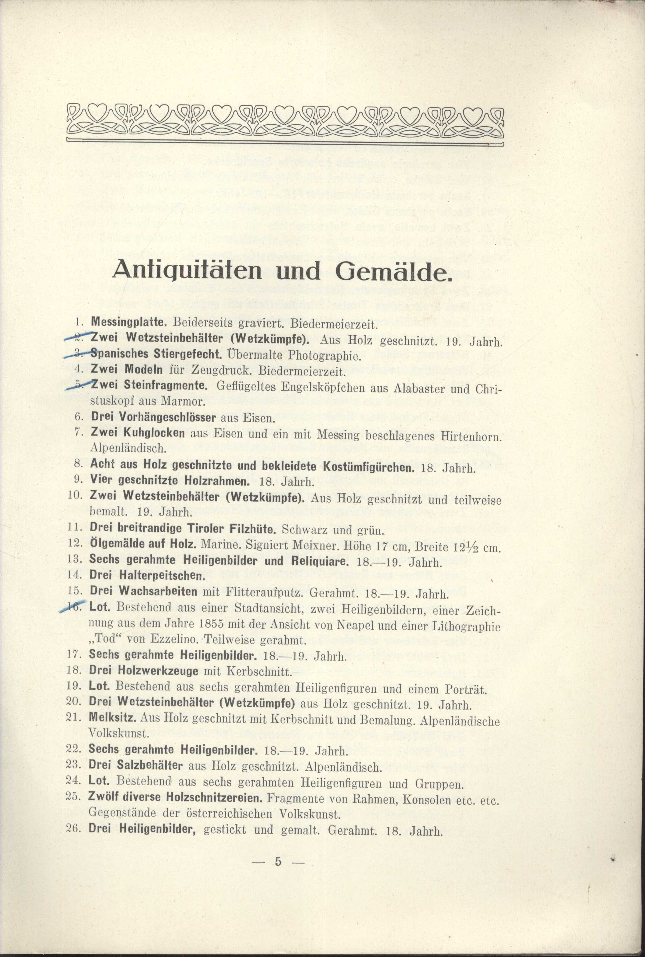 Názvové údaje 18. Kunst-Auktion von Albert Kende, Wien : Kupfestiche, Farbendrucke und Schabkunstblätter der englischen und französischen Schule des 18. Jahrhunderts : Seltene Bildnisse berühmter Persönlichkeiten, Viennensia, Militaria, Städteansichten etc. : Aquarelle Alt-Wiener Meister : aus Wiener Privatbesitz : mit 17 Illustrationem : Versteigerung im Kaiser Ferdinand-Saale, Wien, 1., Dorotheergasse 17, Nebentreppe, 1. Stock (Lift). Freitag, den 8. April 1910 und die folgenden Tage, nachmittags von halb 4 Uhr an : Besichtigung im Kaiser Karl-Saale: Dienstag, den 5. bis inklusive Donnerstag, den 7. April 1910, täglich von 10 bis 6 Uhr Záhlaví-akce 18. Kunst-Auktion von Albert Kende, Wien (Kupfestiche, Farbendrucke und Schabkunstblätter der englischen und französischen Schule des 18. Jahrhunderts) (Seltene Bildnisse berühmter Persönlichkeiten, Viennensia, Militaria, Städteansichten etc.) (Aquarelle Alt-Wiener Meister) (aus Wiener Privatbesitz) (8. 4. - 9. 4. 1910 : Dorotheum Wien, Rakousko) Další autoři Dorotheum (Wien, Rakousko) (Jiná role) Albert Kende (Wien, Rakousko) (Nakladatel, vydavatel) Hamater & Co. (Wien, Rakousko) (Tiskař) Nakladatel Wien : Albert Kende, 1910 Výrobce (Hamater & Co.) Rozsah 107 s., [10] l. obr. příl. : il. Klíčová slova katalog * aukce * rakouská literatura * stol. 20., léta 10. * r. 1910 * umělecká díla * aukční katalogy * aukční katalog Počet ex. 1, z toho volných 1 Druh dok. monografie Signatura KaG XVIII B 318 Názvové údaje 245. Kunstauktion : Nachlaß des k. u. k. Hof-Kunsthändlers Heinrich L. Neumann : Schaustellung: Freitag den 6., Sammtag den 7. und Montag den 9. März 1914 von 10 bis 1/2 6 Uhr. Sonntag den 8. März von 10 bis 1 Uhr : Auktion: Von Dienstag den 10. bis Freitag den 13. März 1914, 1/2 4 Uhr nachmittags in den Kunstauktionssälen : Zugang über die Nebentreppe (Lift) Záhlaví-akce 245. Kunstauktion (Nachlaß des k. u. k. Hof-Kunsthändlers Heinrich L. Neumann) (10. 3. - 13. 3. 1914 : Dorotheum Wien, Rakousko) Další autoři Dorotheum (Wien, Rakousko) (Nakladatel, vydavatel) Otto Maaß Söhne (Wien, Rakousko) (Tiskař) Nakladatel [Wien : Dorotheum, 1914] Výrobce (Otto Maass Söhne) Rozsah v, 35 s., [16] l. obr. příl. : il. Klíčová slova katalog * aukce * rakouská literatura * stol. 20., léta 10. * grafika * umělecká díla * aukční katalogy * aukční katalog Druh dok. monografie Názvové údaje 247. Kunstauktion : Antiquitäten und Gemälde aus adeligem und bürgerlichem Privatbesitz darunter Nachlaß k. u. k. Oberstleutnant Müller-Bauerreiß und Vinzenc Prick, Wien : Schaustellung: von Donnerstag den 23. bis Sammtag den 25. April 1914, von 10 bis 6 Uhr, Sonntag den 26. April 1914, von 10 bis 2 Uhr, in den Kunstauktionssälen, 1. Stock : Auktion: Montag den 27. und Dienstag den 28. April 1914, vormittags von halb 11 Uhr ab, nachmittags von halb 4 Uhr ab, Mittowch den 29. und Donnerstag den 30. April 1914, nachmittags halb 4 Uhr : Zugang über die Nebentreppe Záhlaví-akce 247. Kunstauktion (Antiquitäten und Gemälde aus adeligem und bürgerlichem Privatbesitz darunter Nachlaß k. u. k. Oberstleutnant Müller-Bauerreiß und Vinzenc Prick, Wien) (27. 4. - 30. 4. 1914 : Dorotheum Wien, Rakousko) Další autoři Dorotheum (Wien, Rakousko) (Nakladatel, vydavatel) Otto Maaß Söhne (Wien, Rakousko) (Tiskař) Nakladatel [Wien : Dorotheum, 1914] Výrobce (Otto Maaß Söhne) Rozsah 49 s., [12] l. obr. příl. : il. Klíčová slova katalog * aukce * rakouská literatura * stol. 20., léta 10. * grafika * umělecká díla * aukční katalogy * aukční katalog Počet ex. 1, z toho volných 1 Druh dok. monografie Signatura KaG XVIII B 308 Názvové údaje 249. Kunstauktion : Gemälde alter Meister aus adeligem und bürgerlichem Privatbesitz : Nachlässe: Carl v. Sales-Sala, Truzettel v. Wiesenfeld, Alfred Bruckl, Macorig. Kollektion eines ausländischen Sammlers : Schaustellung: Donnerstag den 14. Mai bis Sonntag den 17. Mai 1914, von 10 bis 1/2 6 Uhr, in den Kunstauktionssälen, 1. Stock : Versteigerung: Montag den 18. und Dienstag den 19. Mai 1914, ab 1/2 4 Uhr : Zugang über die Nebentreppe (Lift) Záhlaví-akce 249. Kunstauktion (Gemälde alter Meister aus adeligem und bürgerlichem Privatbesitz : Nachlässe: Carl v. Sales-Sala, Truzettel v. Wiesenfeld, Alfred Bruckl, Macorig. Kollektion eines ausländischen Sammlers) (18. 5. - 19. 5. 1914 : Dorotheum Wien, Rakousko) Další autoři Dorotheum (Wien, Rakousko) (Nakladatel, vydavatel) Otto Maaß Söhne (Wien, Rakousko) (Tiskař) Nakladatel [Wien : Dorotheum, 1914] Výrobce (Otto Maass Söhne) Rozsah iii, 23 s., [42] l. obr. příl. : il. Klíčová slova katalog * aukce * rakouská literatura * stol. 20., léta 10. * grafika * umělecká díla * aukční katalogy * aukční katalog Druh dok. monografie Názvové údaje Antiquitäten zumeist Alpenländische Volks-Kunst des 16., 17. und 18. Jahrhunderts : Holzbildwerke, Arbeiten in Holz (Modeln, Engelsköpschen, Krippenfiguren, Rahmen, Hausgeräte); Arbeiten in Fayence, Porzellan, Steingut, Ton, Glas, Silber, Bronze, Eisen, Kupfer, Messing, Zinn; Leder, Stein, Marmor, Wachs; Möbel (Tabernakelkästen, Schreibschränake, Truhen, Tische), Stand- und Wanduhren ; Alte Gemälde des 15. bis 18. Jahrhunderts italienischer und deutscher Meister Záhlaví-akce 257. Kunstauktion Antiquitäten und Gemälde (7. - 9. 2. 1916 : Dorotheum, WIen) Další autoři Borovský, František Adolf, 1852-1933 (Autor podpisu) (Dřívější majitel) Karásek ze Lvovic, Jiří, 1871-1951 (Autor podpisu) Korp. Dorotheum (Wien, Rakousko) (Nakladatel, vydavatel) R. v. Waldheim (Wien, Rakousko) (Tiskař) Nakladatel Wien : Dorotheum, 1916 Výrobce (R. v. Waldheim, Jos. Eberle & Co.) Rozsah 35 s., 6 l. obr. příl. : il. Klíčová slova katalog * aukce * rakouská literatura * stol. 20., léta 10. * r. 1918 * umělecká díla * aukční katalogy * aukční katalog Počet ex. 1, z toho volných 1 Druh dok. monografie Signa