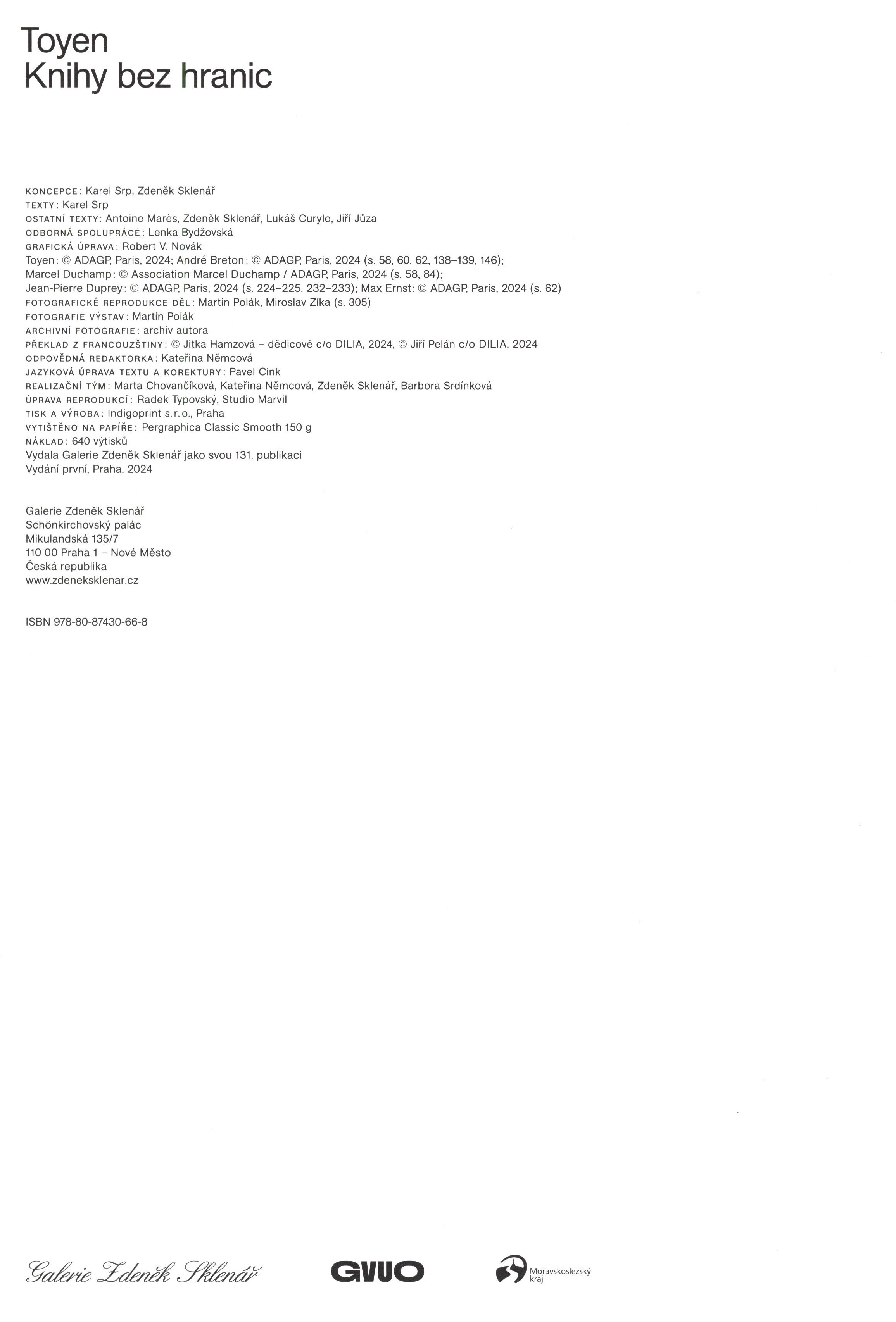 Názvové údaje Modely a metody : k dialektice tvorby ideových modelů a poznávacích metod / Vratislav Effenberger ; k vydání připravil, okomentoval, studii a ediční poznámku napsal Šimon Wikstrøm Svěrák Osobní jméno Effenberger, Vratislav, 1923-1986 (Autor) Další autoři Svěrák, Šimon, 1985- (Editor) (Autor komentáře) Korp. Dybbuk (nakladatelství) (Nakladatel, vydavatel) Protisk (tiskárna, České Budějovice) (Tiskař) Nakladatel Praha : Dybbuk, 2024 Výrobce [České Budějovice] : Tiskárna Protisk, s.r.o. Rozsah 667 stran : faksimile ; 21 cm Osobní hesla Effenberger, Vratislav, 1923-1986 Předmětová hesla Czech philosophy - 20th century * surrealism (literature) * surrealism (art) * theory of art - 20th century * criticism of society * social crisis * psychoanalysis and philosophy * psychoanalysis and art Klíčová slova česká filozofie * poznávání * teorie umění * literární věda * moderní umění * surrealismus (literatura) * surrealismus (umění) * strukturalismus * psychoanalýza * psychoanalýza a filozofie * psychoanalýza a literatura * umění a společnost * krize (společnost) * tvorba * odborné studie * stol. 20., 1. pol. Počet ex. 1, z toho volných 1 Druh dok. monografie Signatura LITb 02673 Názvové údaje Toyen : knihy bez hranic / Karel Srp, Zdeněk Sklenář ; překlad z francouzštiny: Jitka Hamzová, Jiří Pelán Osobní jméno Srp, Karel, 1958- (Autor) Další autoři Sklenář, Zdeněk, 1961- (Autor) Toyen, 1902-1980 (Umělec) Hamzová, Jitka, 1929-2017 (Překladatel) Pelán, Jiří, 1950- (Překladatel) Novák, Robert V., 1962- (Knižní grafik) Korp. Galerie Zdeněk Sklenář (Praha, Česko) (Nakladatel, vydavatel) Indigoprint (tiskárna) (Tiskař) Nakladatel Praha : Galerie Zdeněk Sklenář, 2024 Výrobce Indigoprint, s.r.o. Rozsah 327 stran : ilustrace (převážně barevné), portréty, faksimile ; 31 cm Osobní hesla Toyen, 1902-1980 Předmětová hesla Czech drawing - 20th century * Czech prints - 20th century * collages - Czechia - 20th century * illustration of books - Czechia - 20th century * art of the book - Czechia - 20th century * works on paper - Czechia - 20th century * surrealism (art) - Czechia * surrealism (art) - France Klíčová slova výtvarné umění * české výtvarné umění * české výtvarnice * kresba * malířství * knižní ilustrace * knižní kultura * knižní umění * francouzské umění * surrealismus * surrealismus (umění) * stol. 20. Počet ex. 1, z toho volných 1 Druh dok. monografie Signatura LITd 0283 Názvové údaje Znamení surrealismu : eseje o surrealismu, vysoké hře, art brut a jiných moderních mýtech / Bertrand Schmitt ; grafická úprava a sazba: Jakub Effenberger Osobní jméno Schmitt, Bertrand, 1967- (Autor) Další autoři Effenberger, Jakub, 1964- (Knižní grafik) (Sazeč) Paraggio, Jean-Pierre, 1955- (Umělec) Korp. Spolek Analogon (nakladatelství) (Nakladatel, vydavatel) Tiskárna nakladatelství Karolinum (Tiskař) Nakladatel Praha : Analogon, 2021 Výrobce [Praha] : Nakladatelství Karolinum Rozsah 396 stran : ilustrace, portréty, faksimile ; 23 cm Předmětová hesla art * theory of art * surrealism (art) * surrealism (literature) Klíčová slova francouzská literatura * česky psaná literatura * výbor * próza * eseje * umění * teorie umění * surrealismus * art brut * stol. 21. Počet ex. 1, z toho volných 1 Druh dok. monografie Signatura LITc 0434