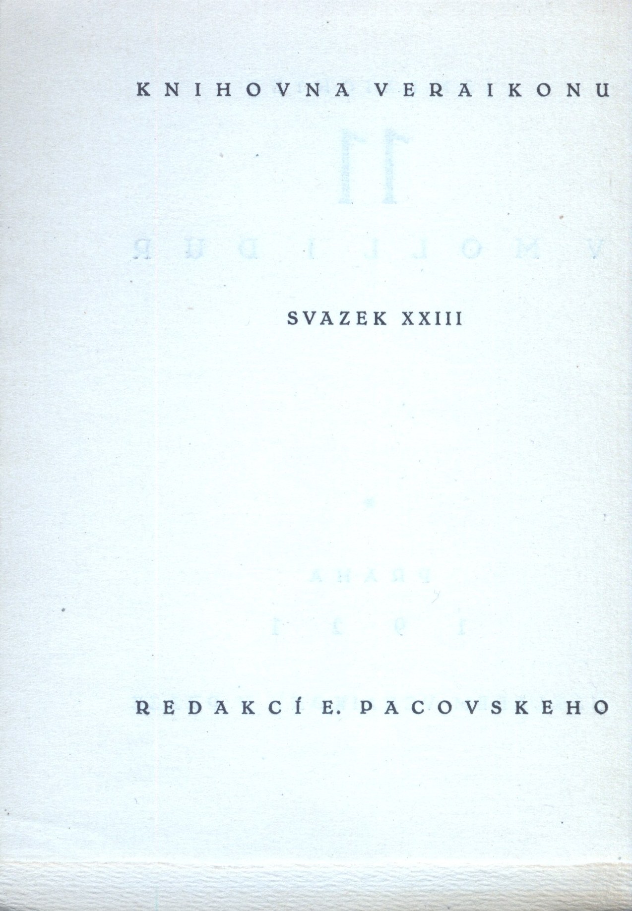 Názvové údaje Pravidla sazby typografické / tekst napsal a knížku typograficky upravil Karel Dyrynk ; z antikvy Genzschovy, řezané podle typů Plantinových a Alda Manutia, knihtiskařů šestnáctého století, ji vysadili Rudolf Hála a Josef Vodehnal Osobní jméno Dyrynk, Karel, 1876-1949 (Autor) (Typograf) (Knižní grafik) Další autoři Hála, Rudolf, 1892-1968 (Sazeč) Vodehnal, Josef (Sazeč) Korp. Státní tiskárna v Praze (Tiskař) Typografia (spolek) (Nakladatel, vydavatel) Nakladatel [Česko] : Spolek Typografia, 1924 Výrobce V Praze : Ve Státní tiskárně, 1924 Rozsah 121 stran : ilustrace Klíčová slova česká literatura * knižní kultura * československá knižní kultura * bibliofilie * bibliofilský tisk * bibliofilské tisky * sazba * ruční sazba * česká typografie * typografie * typografická úprava Počet ex. 1, z toho volných 1 Druh dok. monografie Signatura KaG III E 103 Názvové údaje Typografická písma latinková / Oldřich Hlavsa ; Kresby vybrány z díla Miloslava Troupa ; Vazbu a graf. úpravu navrhl Oldřich Hlavsa Osobní jméno Hlavsa, Oldřich, 1909-1995 (Autor) Další autoři Troup, Miloslav, 1917-1993 (Ilustrátor) Hlavsa, Oldřich, 1909-1995 (Grafický technik) Nakladatel Praha : Státní nakladatelství technické literatury, 1960 Rozsah 494 s. : il Klíčová slova typografie * typografická úprava * latinková písma Počet ex. 1, z toho volných 1 Druh dok. monografie Signatura C12d 81 Názvové údaje 11 v moll i dur / Jan [J.] Laichter ; [typografická úprava Em. Pacovského] Osobní jméno Laichter, Jan J., 1895-1976 (Autor) Další autoři Pacovský, Emil, 1879-1948 (Sestavovatel, kompilátor) (Typograf) (Autor obálky) Korp. Veraikon (nakladatelství) (Nakladatel, vydavatel) Grafia (tiskárna, nakladatelství) (Tiskař) Nakladatel Praha : nákladem Veraikonu v Praze, 1921 Výrobce (tiskem knihtiskárny Grafie) Rozsah 26 s. ; 16 cm Klíčová slova česká literatura * poezie * verše * r. 1914-1921 * typografická úprava Počet ex. 1, z toho volných 1 Druh dok. monografie Signatura Topič 0633 Názvové údaje Tři chvilky Zuzky : ze života malého děvčátka / bratří Marguerittové ; ze svého překladu dětského románku "Zette" Pavla a Viktora Marguerittů tyto tři kapitoly vybral, knížku typograficky upravil a vydal jako svůj soukromý tisk Karel Dyrynk Osobní jméno Margueritte, Paul, 1860-1918 (Autor) Další autoři Margueritte, Victor, 1866-1942 (Autor) Dyrynk, Karel, 1876-1949 (Sestavovatel, kompilátor) (Překladatel) (Knižní grafik) (Typograf) (Nakladatel, vydavatel) Korp. Státní tiskárna v Praze (Tiskař) Nakladatel V Praze : Karel Dyrynk, 1931 Výrobce V Praze : Státní tiskárna, 1931 Rozsah 38 stran ; 14 cm Klíčová slova francouzská literatura * próza * překlad * ukázky * literatura pro děti * typografická úprava * soukromý tisk * Dyrynk K. * bibliofilský tisk * bibliofilská vydání * soukromé tisky * soukromý tisk * číslovaný výtisk * bibliofilie Počet ex. 2, z toho volných 2 Druh dok. monografie Signatura Topič 0614, KaG III E 126 Názvové údaje Tvorba písma a grafická úprava knihy : dvě kapitoly k výstavě v Uměleckoprůmyslovém museu v Brně / Oldřich Menhart Osobní jméno Menhart, Oldřich, 1897-1962 (Autor) Další autoři Vokolek, Vlastimil, 1903-1985 (Dřívější majitel) Nakladatel V Brně : Uměleckoprůmyslové museum : Technickovýrobní kroužek ZK Tisk, 1958 Výrobce (Západomopravské tiskárny) Rozsah 29 s. Klíčová slova knihtisk * knižní úprava * typografie * typografická úprava * studie Počet ex. 1, z toho volných 1 Druh dok. monografie Signatura C12b 8069 Názvové údaje Buchkunst : mit zahlreichen Vollbildern, zum Teil in Tondruck und vielen Vignetten und Zierleisten / von Felix Poppenberg Osobní jméno Poppenberg, Felix, 1869-1915 (Autor) Další autoři Bard, Marquardt & Co. (Nakladatel, vydavatel) Herrosé & Ziemsen (Wittenberg) (Tiskař) Nakladatel Berlin : Marquardt & Co., Verlagsanstalt G. m. b. H., 1908 Výrobce Wittenberg : Herrosé & Ziemsen, G. M. b. H., 1908 Rozsah 152 stran, 6 nečíslovaných obrazových příloh : ilustrace Klíčová slova německá literatura * dějiny umění * knižní kultura * typografická úprava * typografické techniky * typografie * typografové * vývoj typografie * dějiny knihy * ilustrace * ilustrace knih * knižní ilustrace Počet ex. 1, z toho volných 1 Druh dok. monografie Signatura KaG III E 93 Názvové údaje Bible na jeden rok / navrhla, graficky upravila a vysázela Marie Čižmárová Osobní jméno Čižmárová, Marie, 1994- (Autor) (Knižní grafik) (Sazeč) Další autoři Univerzita Tomáše Bati ve Zlíně. Fakulta multimediálních komunikací (Nakladatel, vydavatel) (Jiná role) Centrum grafických papírů Olomouc (tiskařské a knihařské studio) (Tiskař) Nakladatel Ve Zlíně : FMK UTB, 2019 Výrobce Olomouc : graficke-papiry.cz Rozsah 1054 stran, 10 nečíslovaných stran : mapy ; 23,5 x 18 x 6 cm Klíčová slova česká literatura * studentské práce * diplomová práce * ateliéry * grafický design * multimediální umění * Bible * Starý zákon * Nový zákon * grafické zpracování * typografická úprava * Zlín * Česko * Nejkrásnější české knihy * r. 2019 Počet ex. 1, z toho volných 1 Druh dok. monografie Signatura NK/19 032 Názvové údaje Český bibliofil. [IV. ročník] : prémie Spolku čekých bibliofilů 1932 / [redigoval Miloslav Novotný s redakční radou, v níž byli Method Kaláb a Josef Volf / typografiky upravil Oldřich Menhart / vytiskla knihtiskárna "Orbis" v Praze antikvou Menhartovou za dohledu Rudolfa Hály] Další autoři Novotný, Miloslav, 1894-1966 (Editor) Kaláb, Method, 1885-1963 (Editor) Volf, Josef, 1878-1937 (Editor) Menhart, Oldřich, 1897-1962 (Typograf) Hála, Rudolf, 1892-1968 (Tiskař) Knytl, Jaroslav, 1891-1970 (Dřívější majitel) Korp. Spolek českých bibliofilů v Praze (Naklada