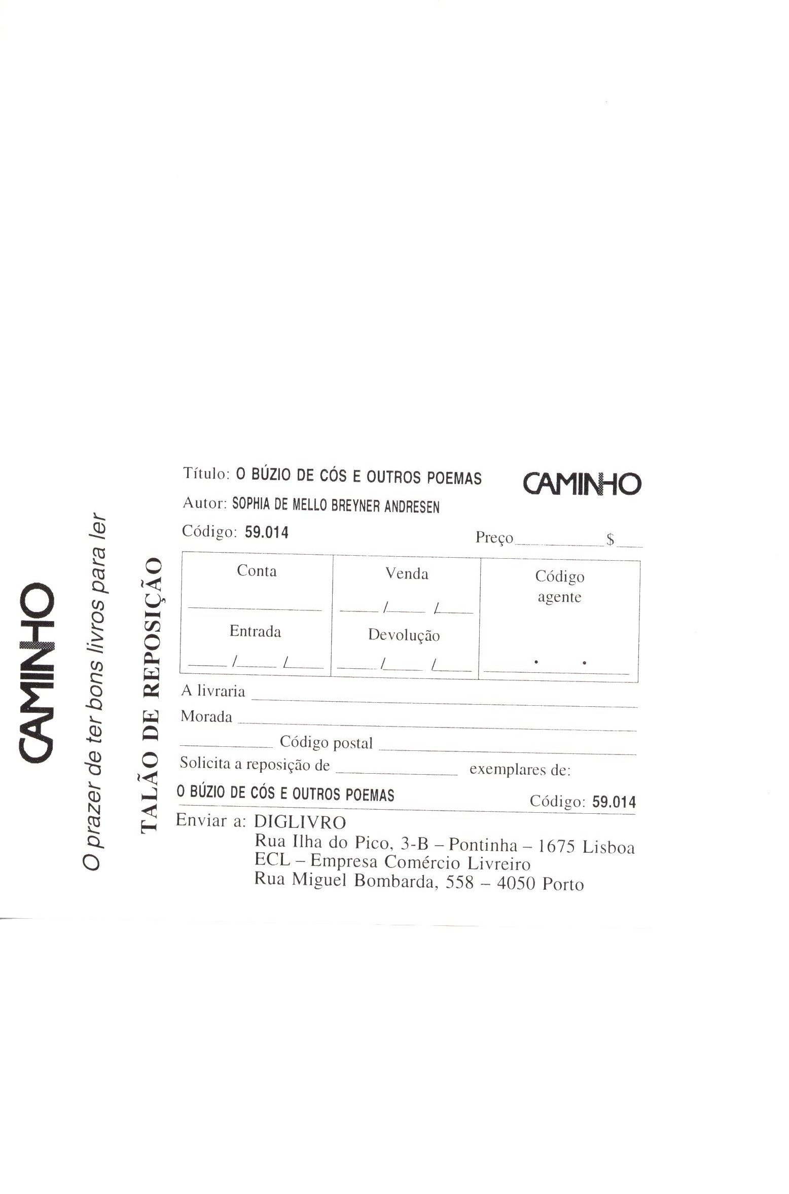 1. Title informationO búzio de cós e outros poemas / Sophia de Mello Breyner Andresen