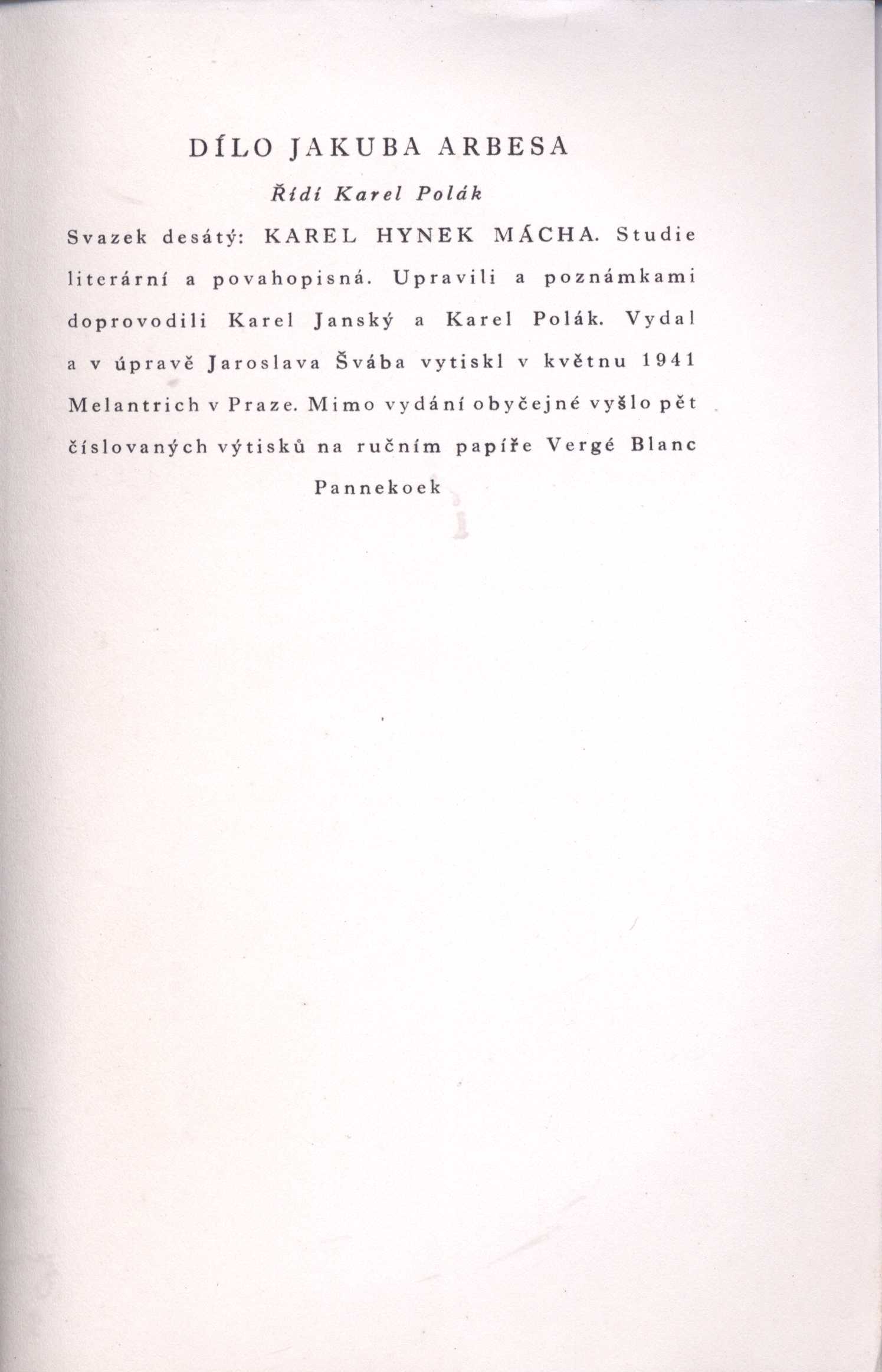 1. Title informationKarel Hynek Mácha : studie literární a povahopisná / J. Arbes ; upravili a poznámkami doprovodili Karel Janský a Karel Polák ; v úpravě Jaroslava Švába