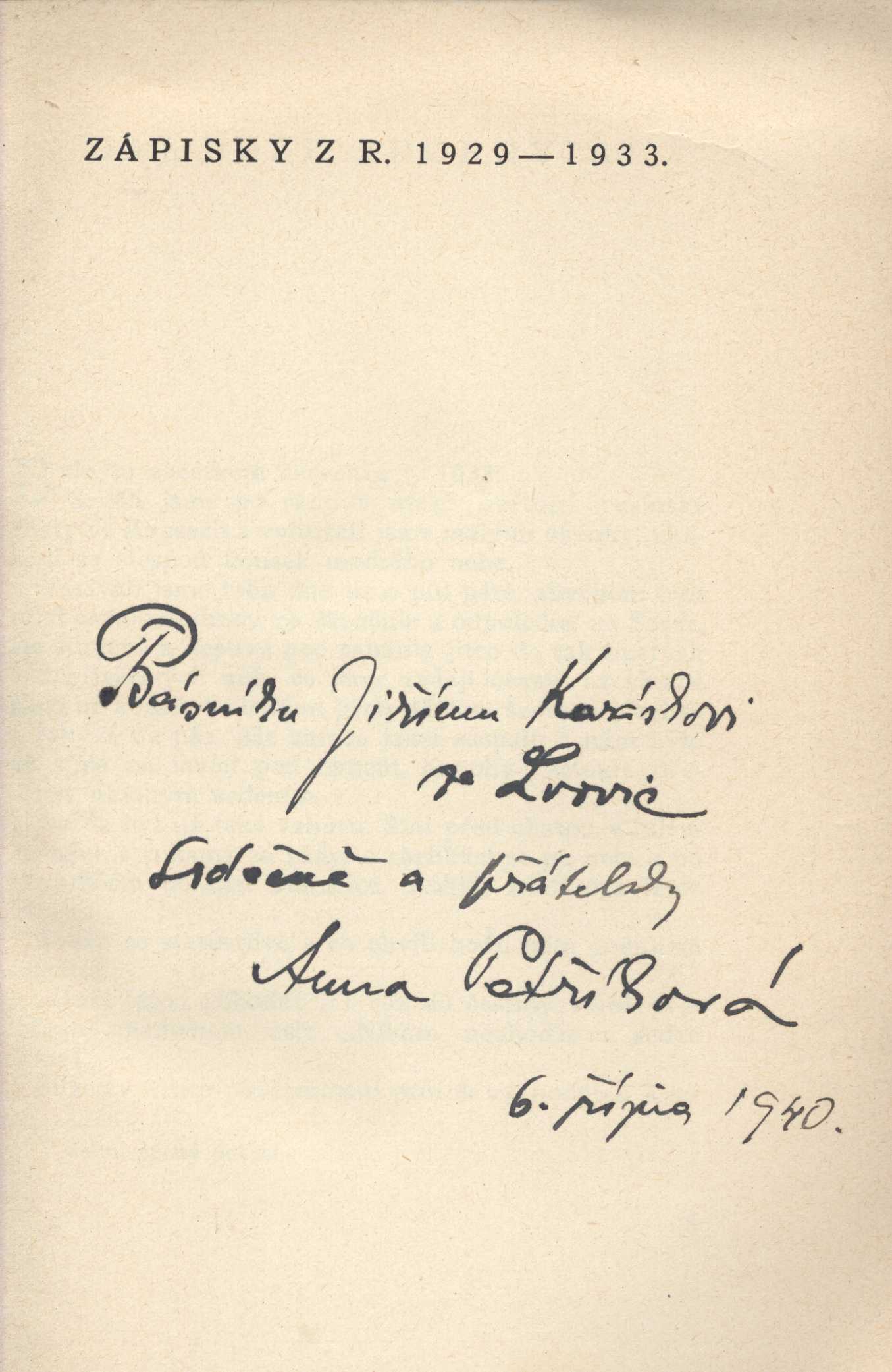 Personal name Brtníková-Petříková, Anna, 1896-1980 (Author) (Photographer) (Dedicator)