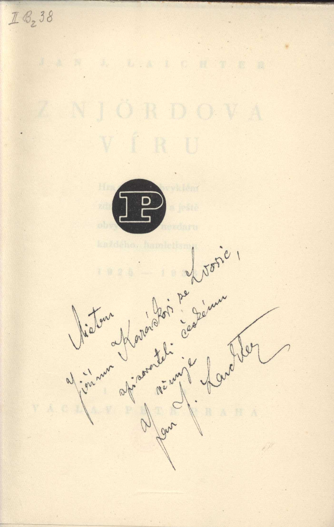 Personal name Laichter, Jan J., 1895-1976 (Author) (Dedicator)
