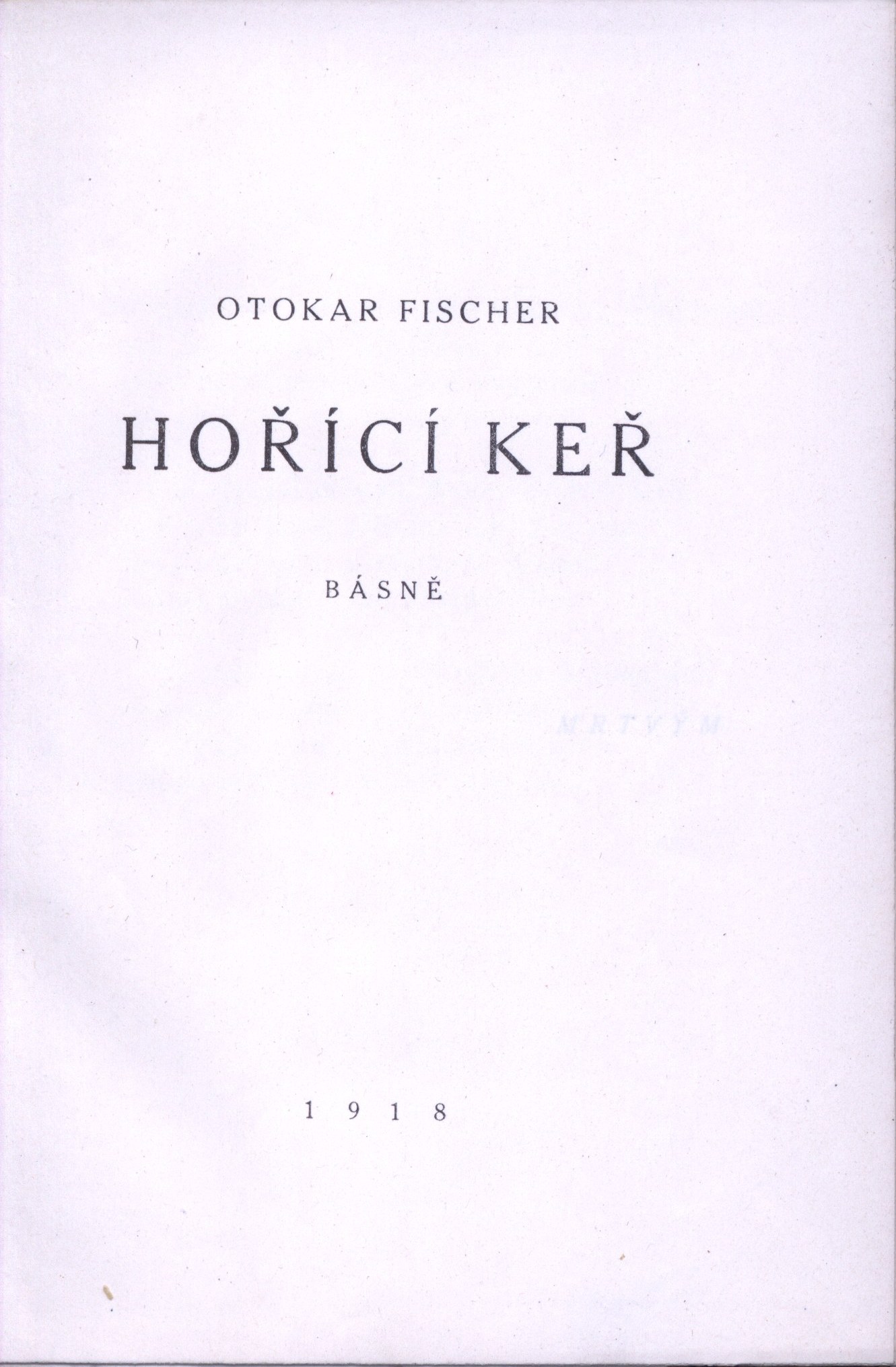 1. Title informationHořící keř : básně / Otokar Fischer ; [obálku navrhl Alois Moravec ; upravila ... Pražská akciová tiskárna]