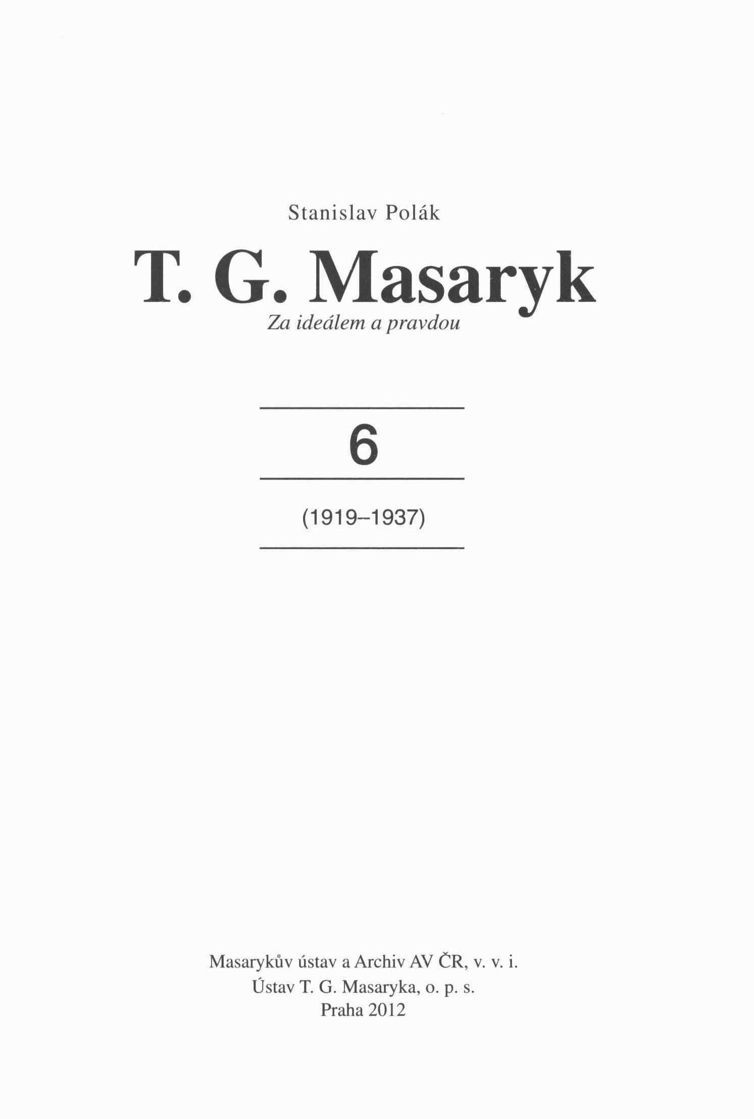 1. Title informationT.G. Masaryk : za ideálem a pravdou. 6, 1919-1937 / Stanislav Polák ; [grafická úprava Vladimír Vyskočil ; obálka Gustav Šeďa]