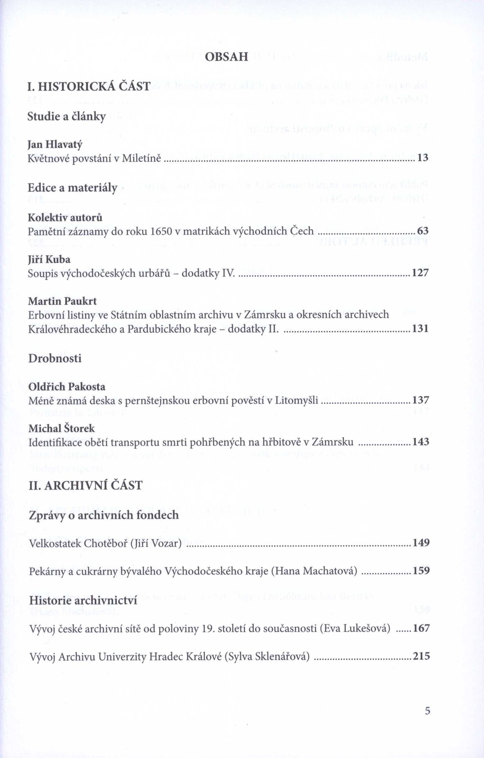 Keywords východní Čechy * východočeské archivy * kulturní dějiny * archivnictví * matriky * erbovní listiny * 2. světová válka * květnové povstání * sborník prací * regionální sborník