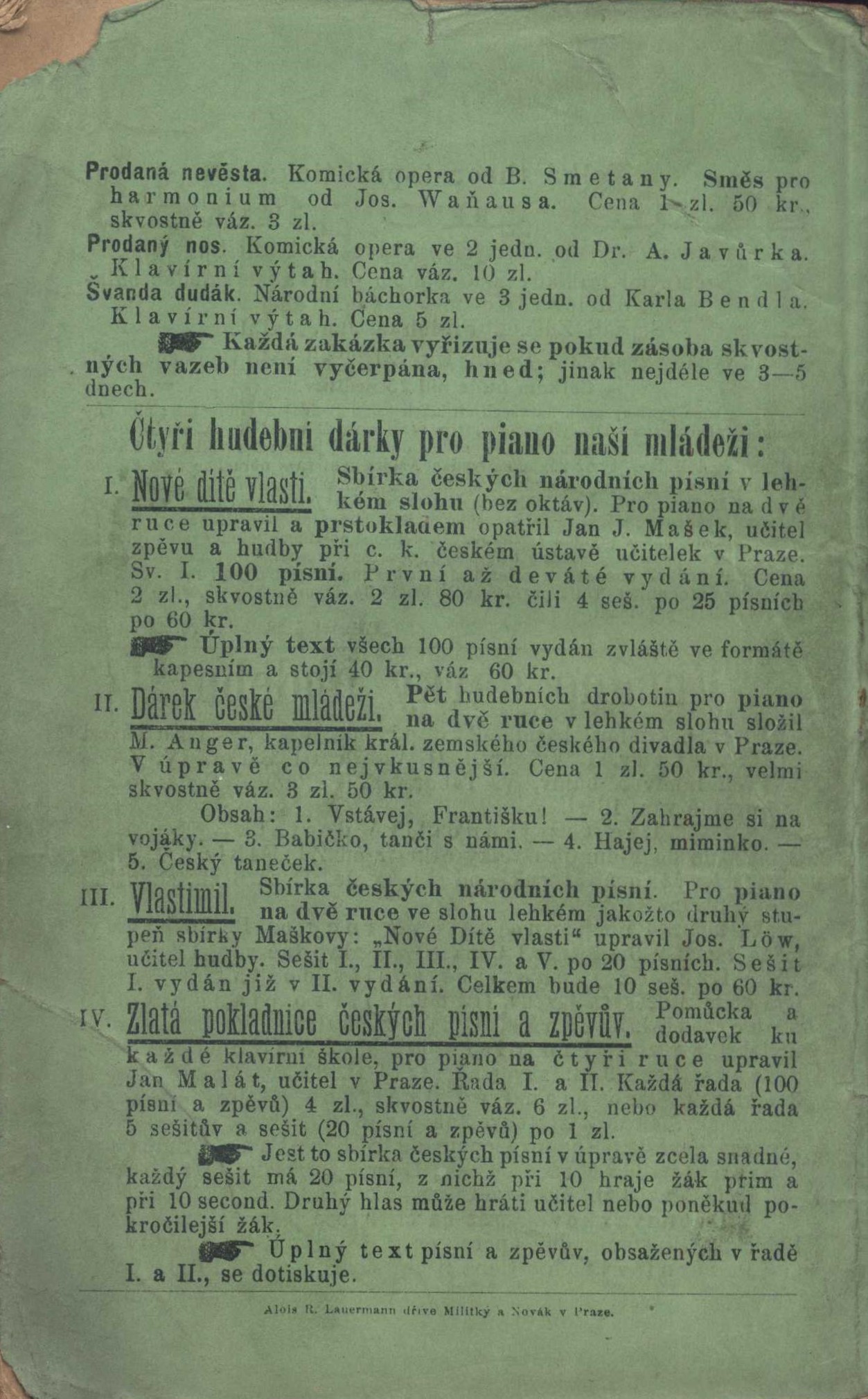 PublicationV Praze : Nakladatel Fr. A. Urbánek, český knihkupec, 1884