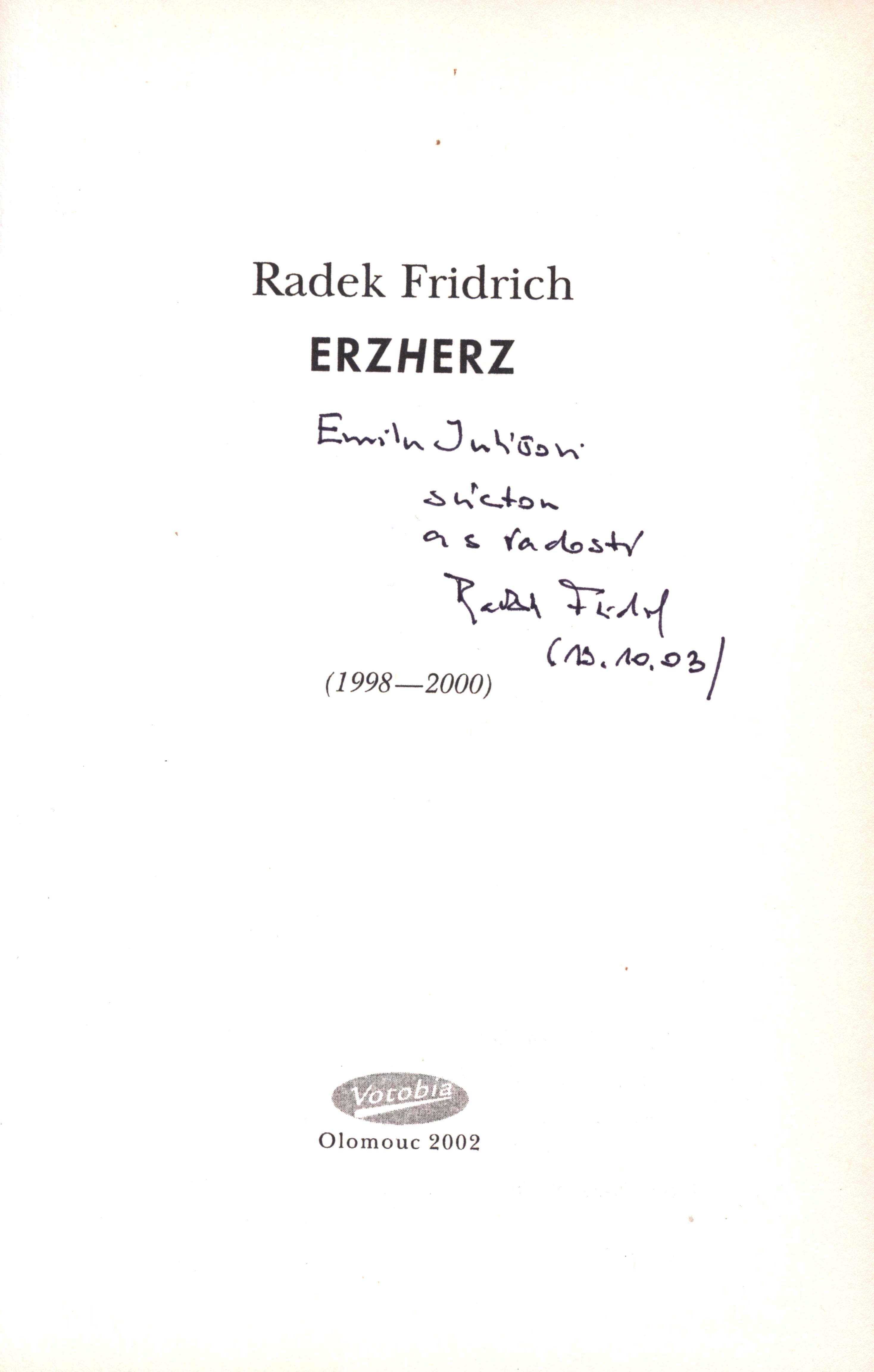 Title informationErzherz : 1998-2000 / Radek Fridrich ; ilustrace Walter Buhe ; obálka a grafická úprava Petr Palarčík ; editor Milan Kozelka
