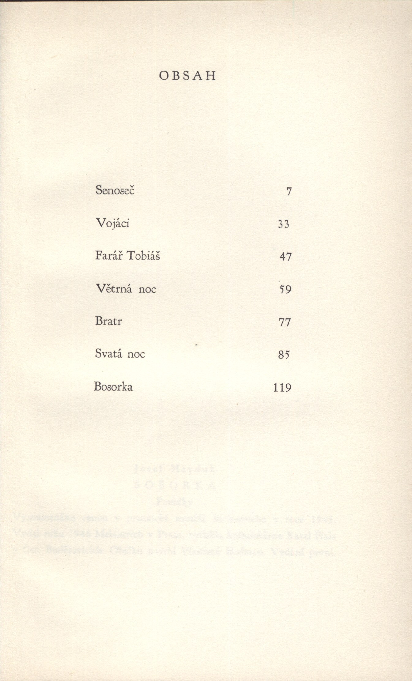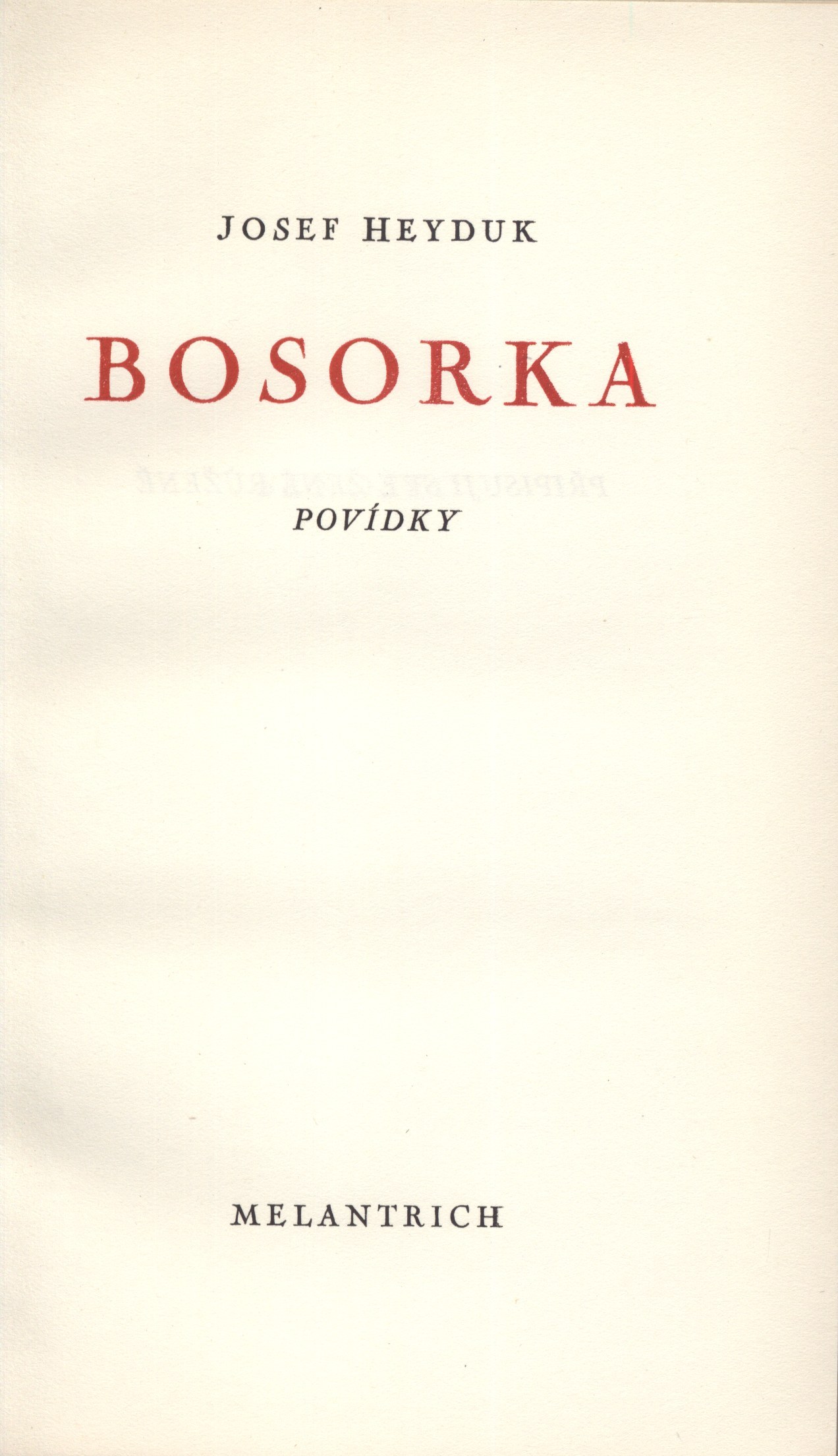 Title informationBosorka : povídky / Josef Heyduk ; [obálku navrhl Vlastimil Hofman]