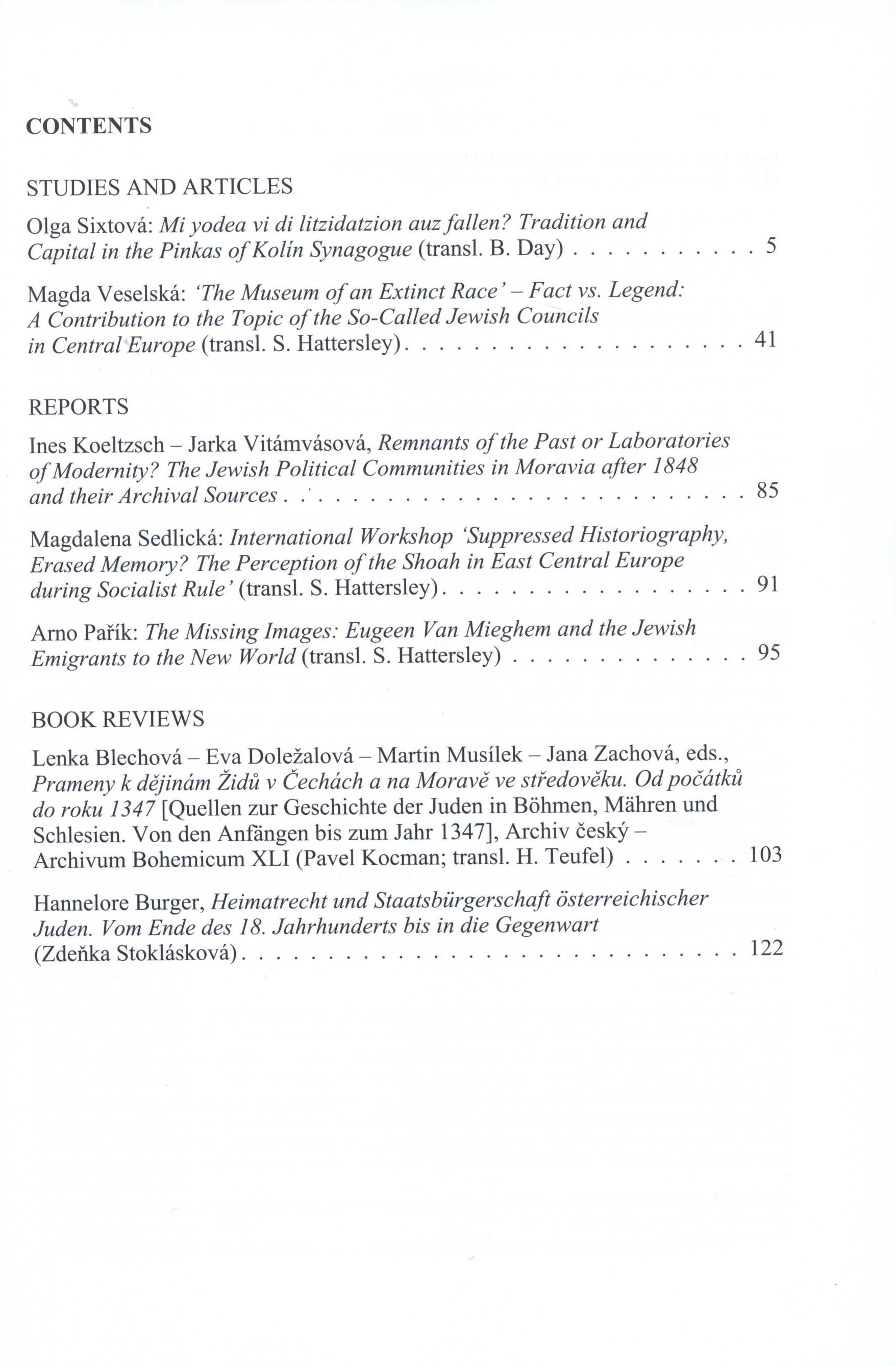 Keywords Židé * židovská historie * židovská kultura * vztahy * studie * články * sborník