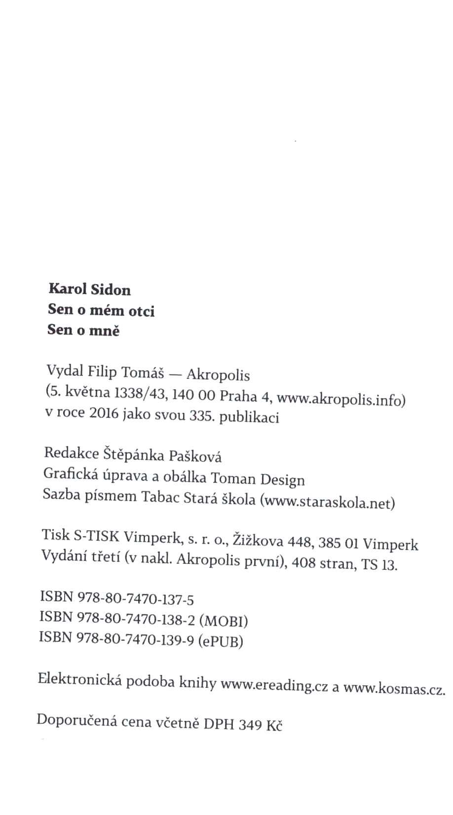 1. Title informationSen o mém otci ; Sen o mně / Karol Sidon ; grafická úprava a obálka Toman Design