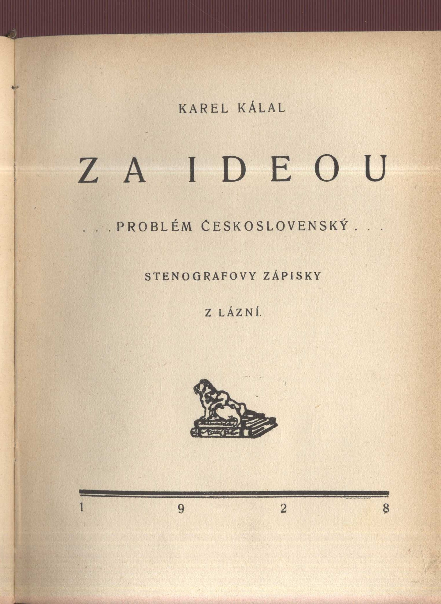 Title informationZa ideou : problém československý : stenografovy zápisky z lázní / Karel Kálal ; obálku kreslil Václav Čutta