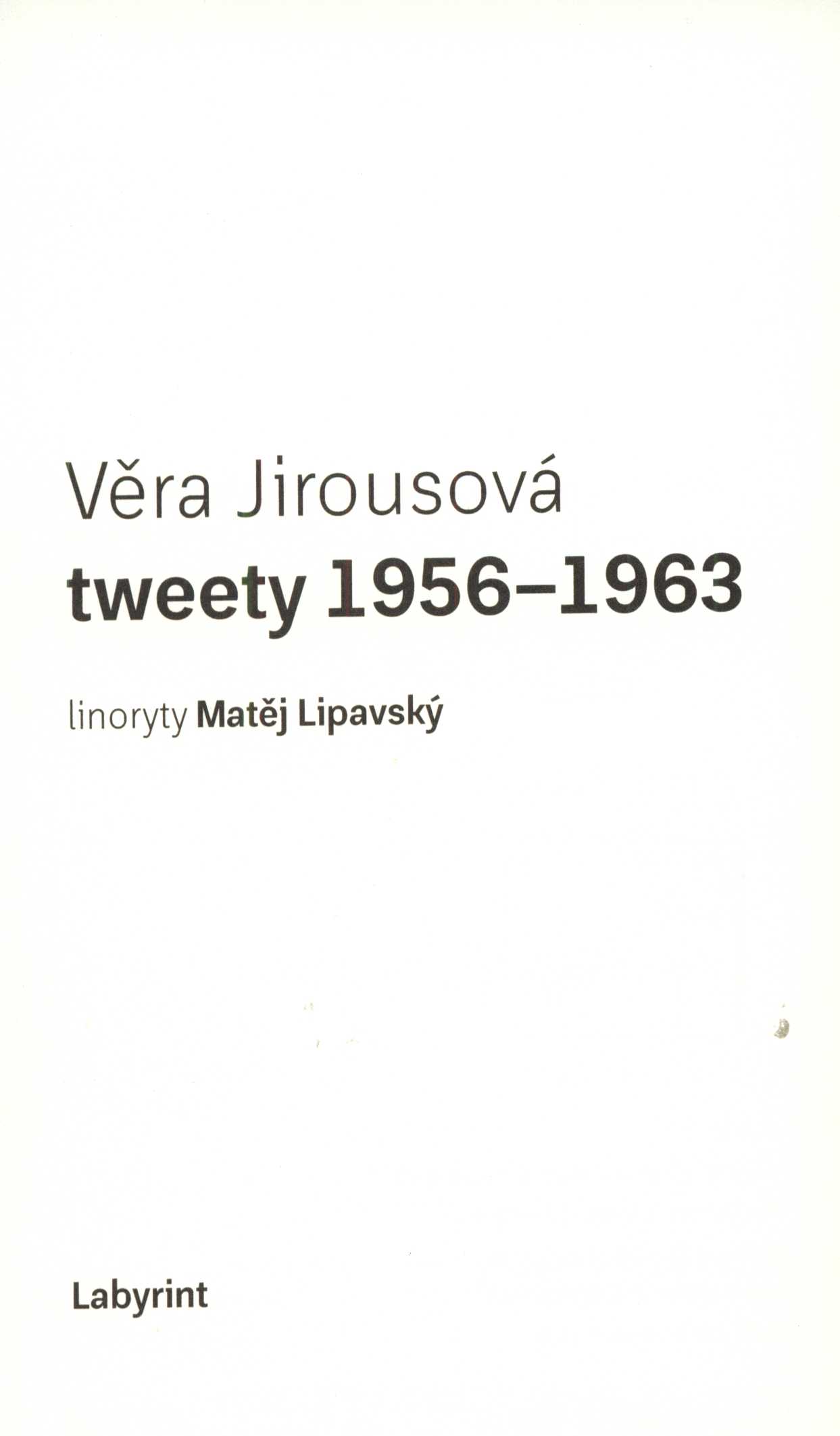1. Title informationTweety 1956-1963 / Věra Jirousová ; linoryty Matěj Lipavský ; k vydání připravil Tobiáš Jirous ; grafická úprava a sazba ... Martin Hůla