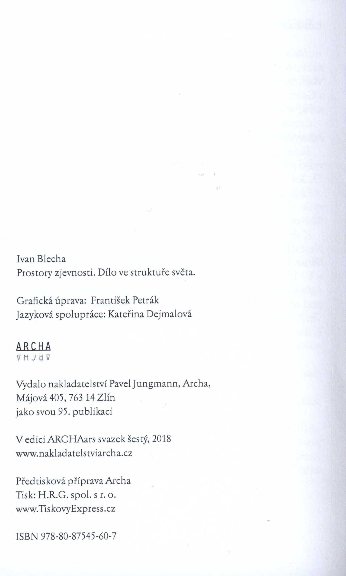 1. Title informationProstory zjevnosti. Dílo ve struktuře světa / Ivan Blecha ; grafická úprava František Petrák