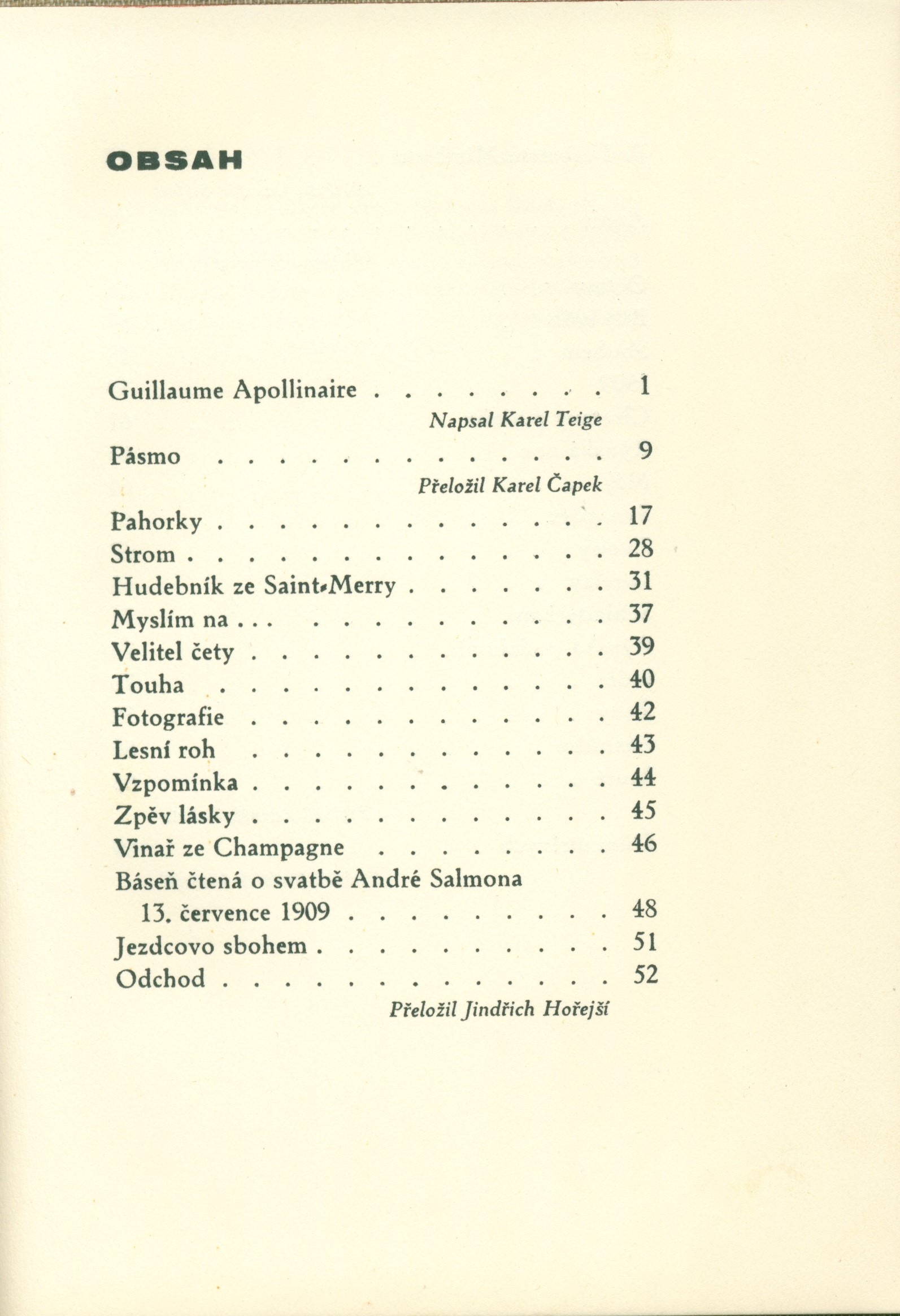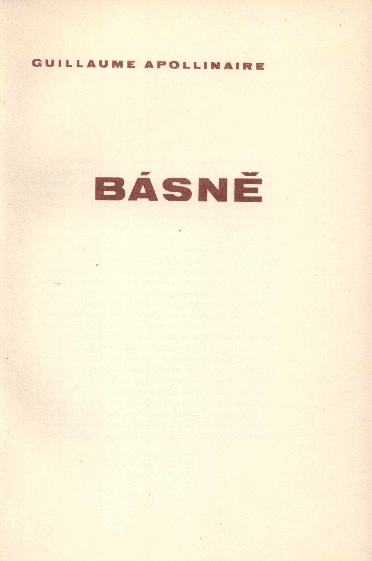 Title informationBásně / Guillaume Apollinaire ; souborné vydání českých překladů Karla Čapka, Jindřicha Hořejšího, Zdeňka Kalisty a Jaroslava Seiferta