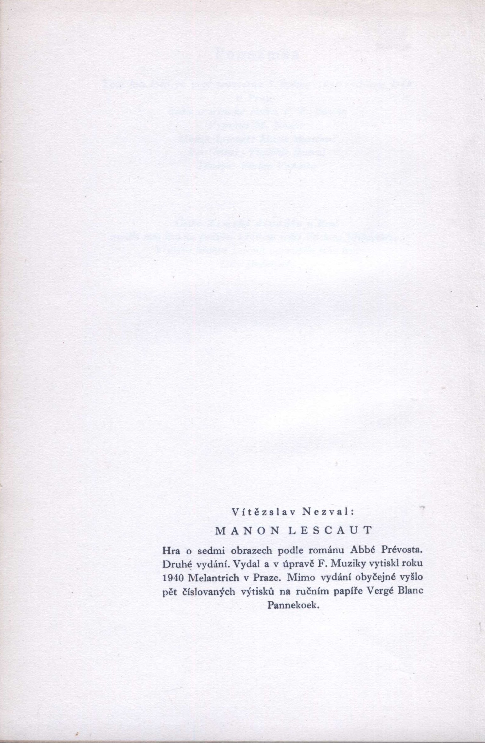 1. Title informationManon Lescaut : hra o sedmi obrazech podle románu Abbé Prévosta / Vítězslav Nezval