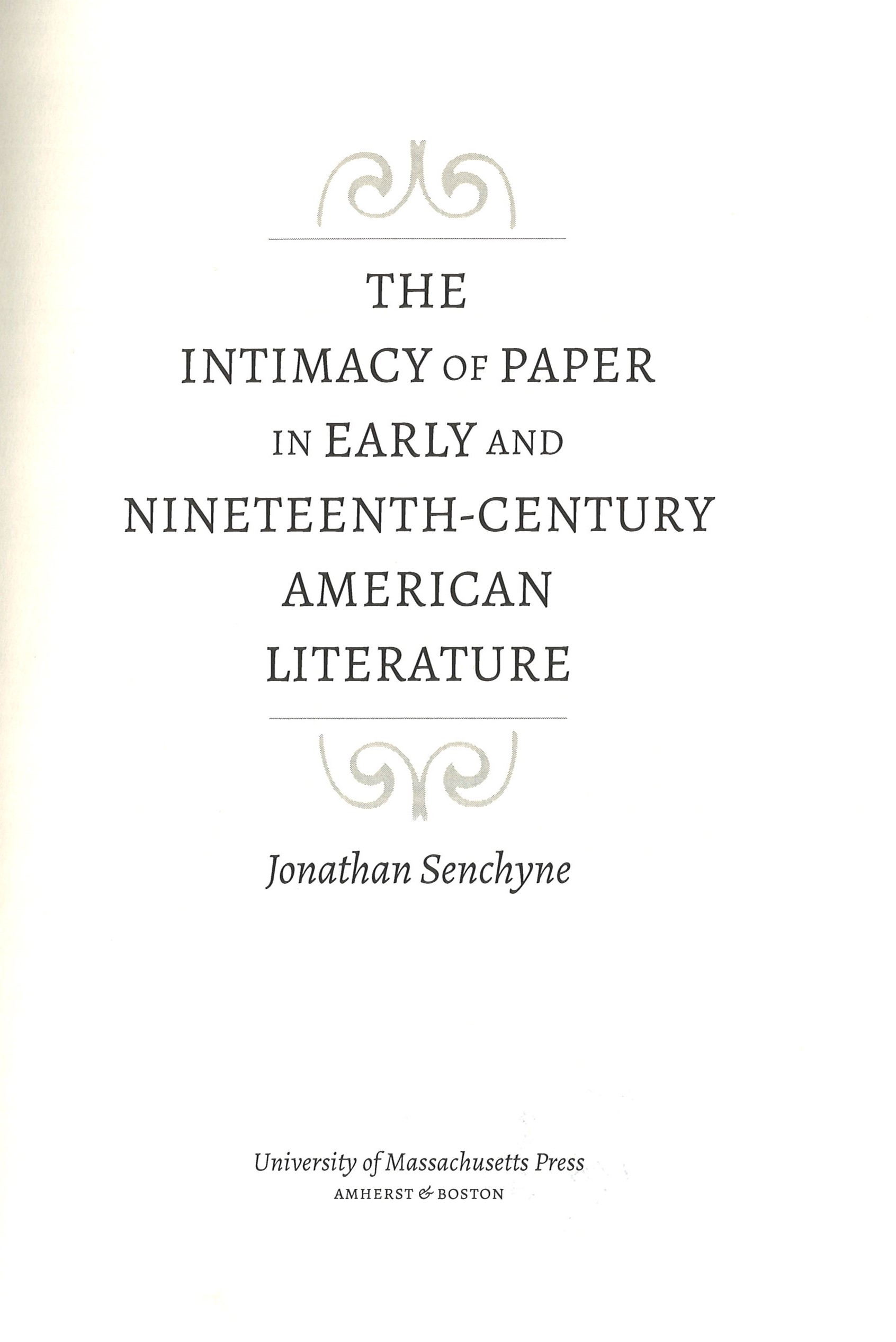 The intimacy of paper in early and nineteenth-century american literature
