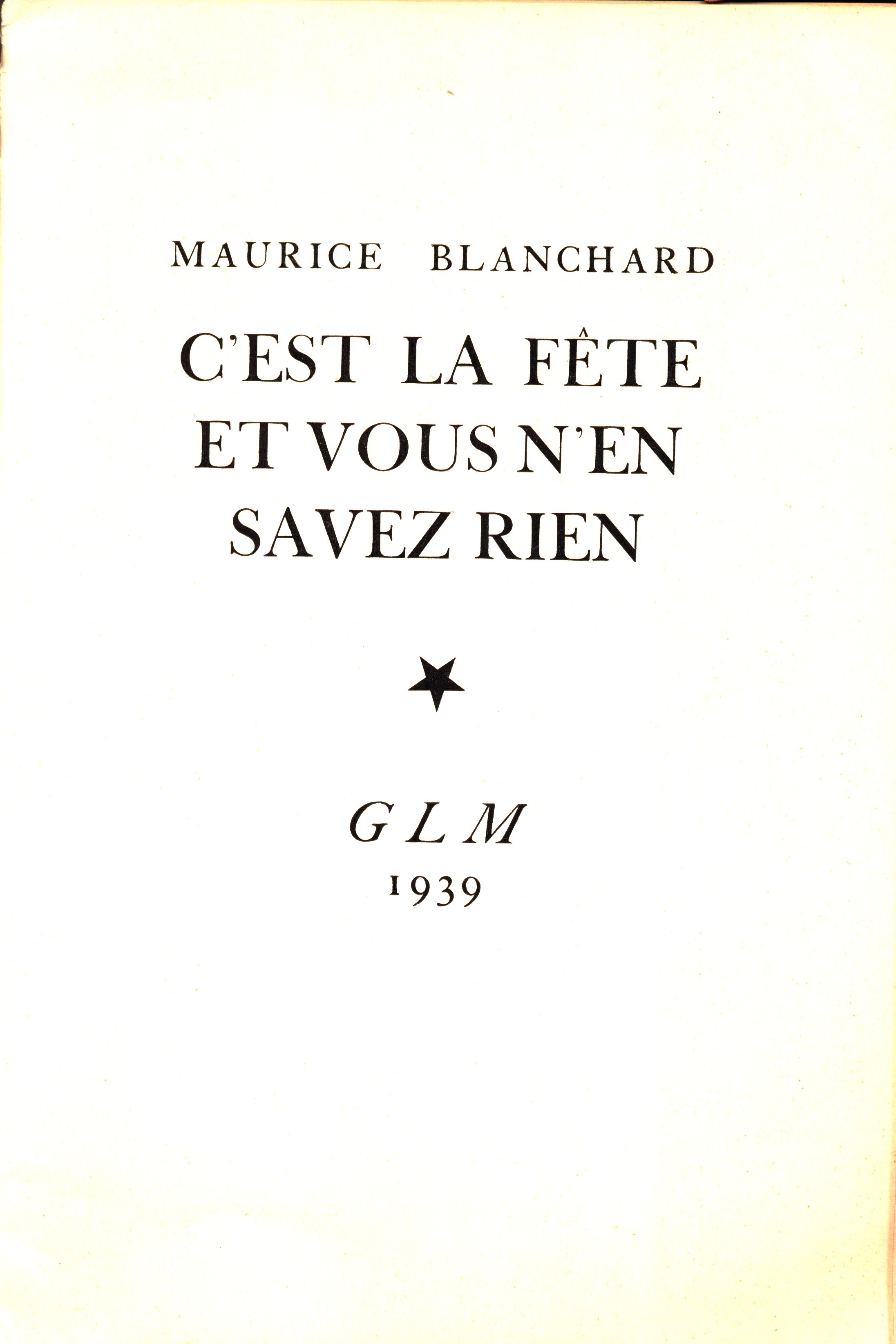 1. Title informationC'est la fête et vous n'en savez rien / Maurice Blanchard