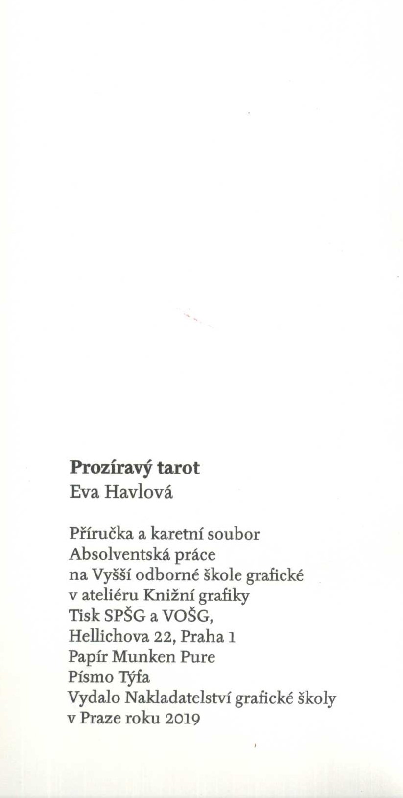 Keywords česká literatura * studentské práce * autorská kniha * příručka * tarot * karty * kreslené karty * vykládání * věštění * Nejkrásnější české knihy * r. 2019